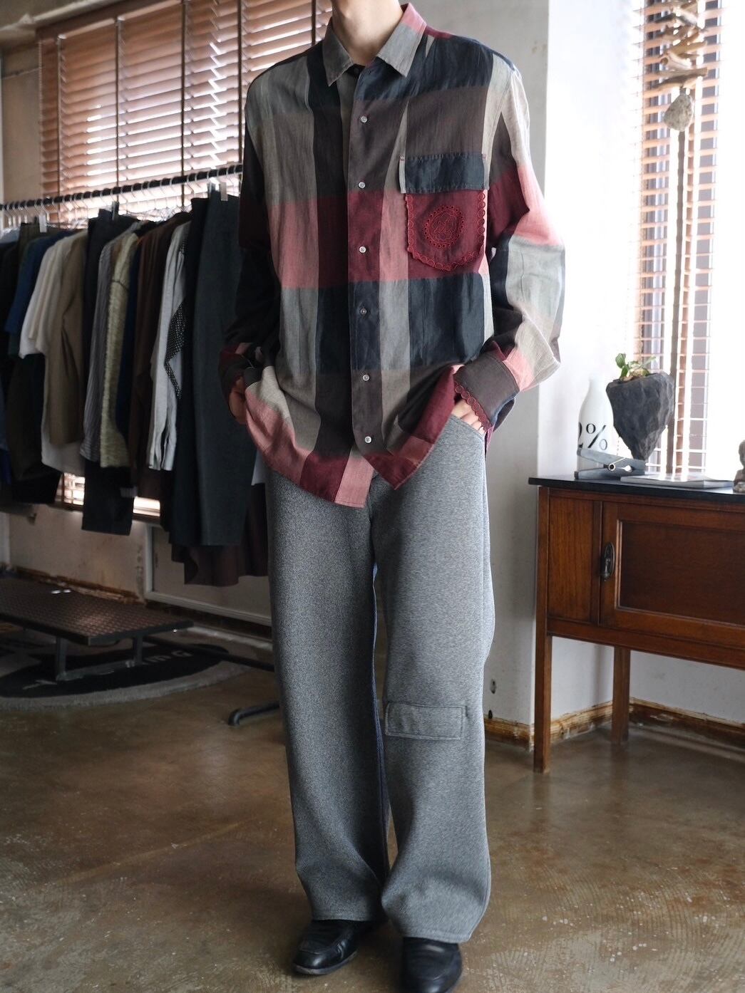 ゆったりとしたサイズ感と大判なチェック柄が緩めな雰囲気で着て頂ける1枚。