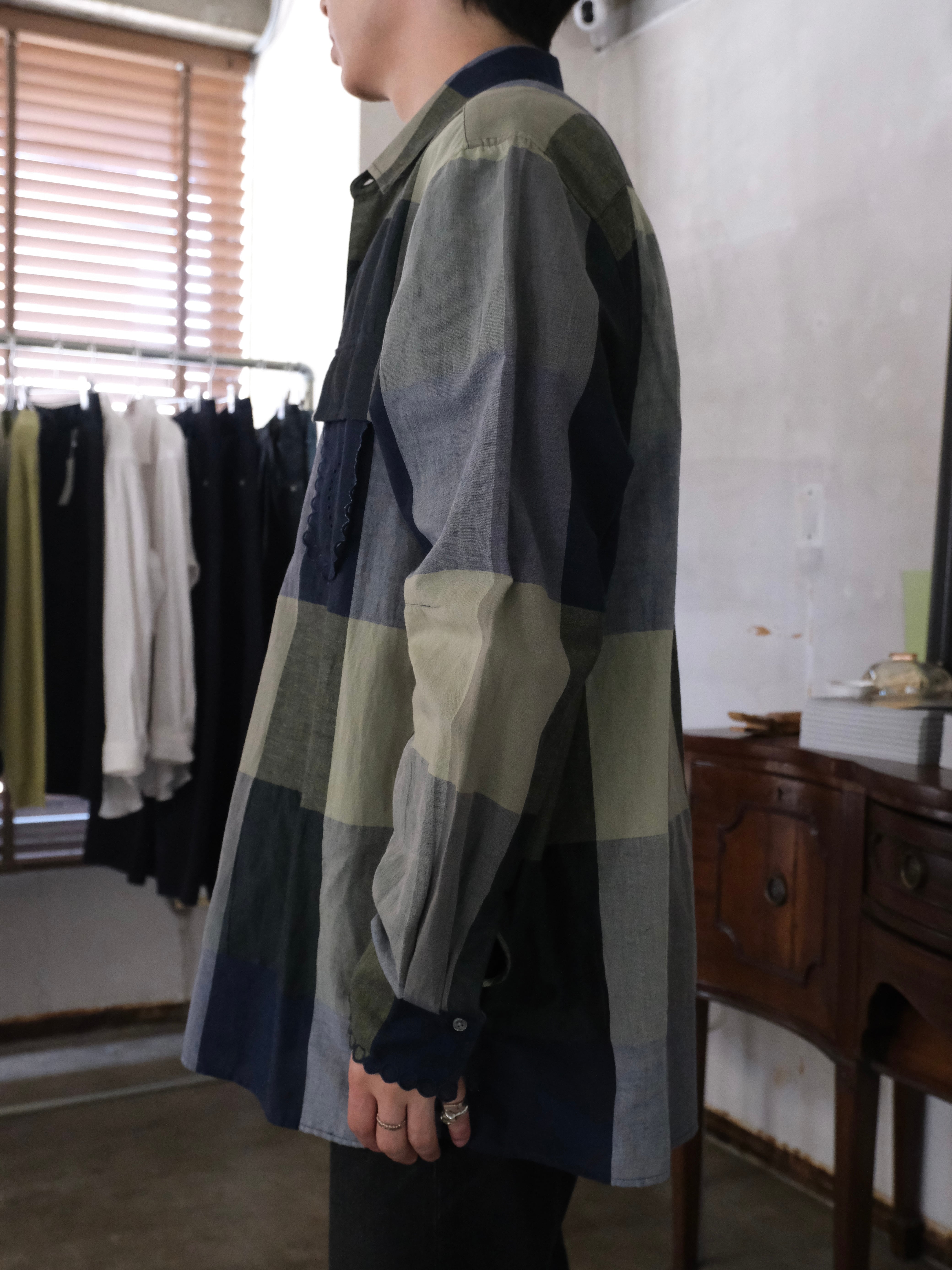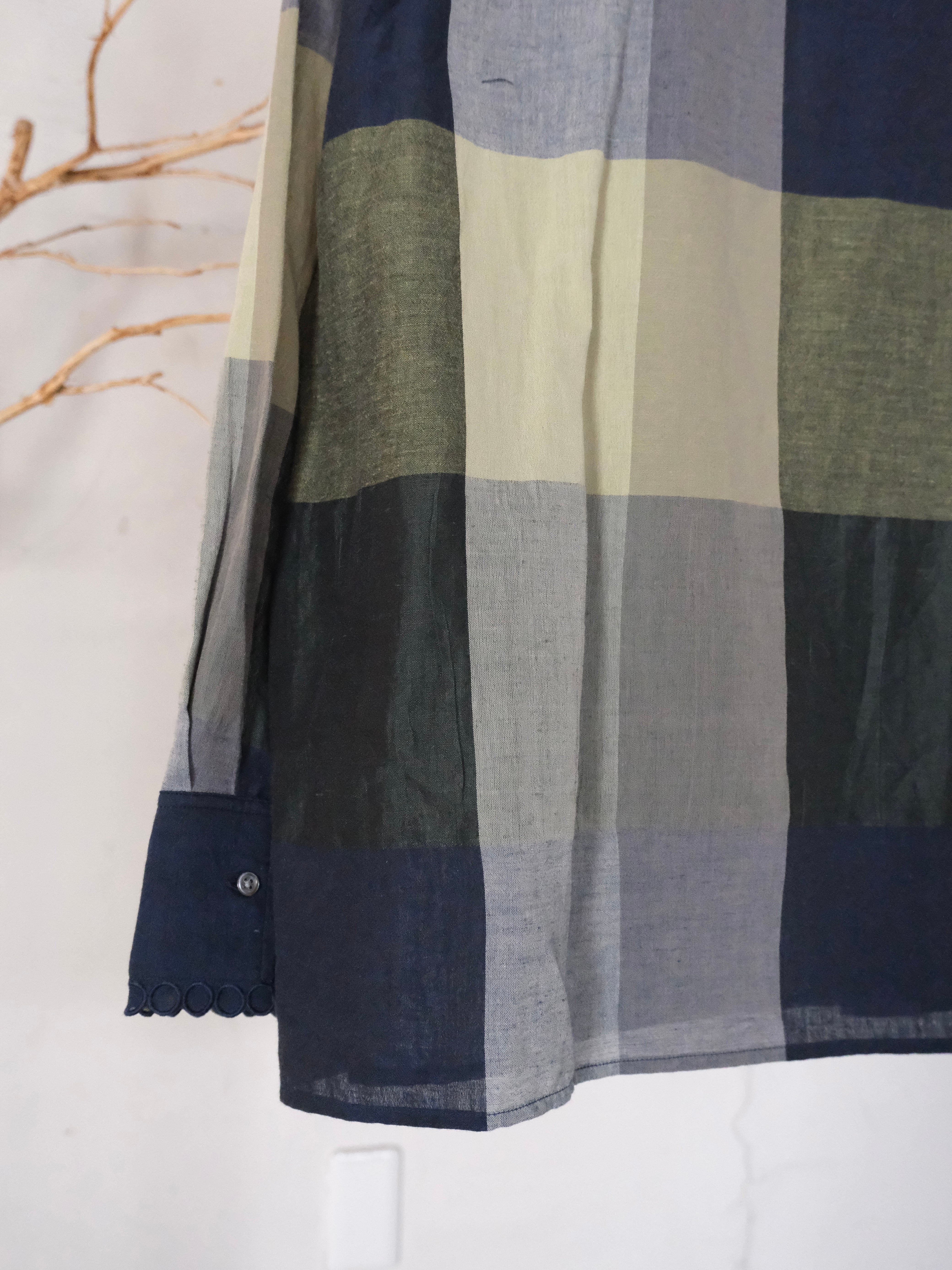 コットンリネンの滑らかな生地で作られたチェックシャツです。
