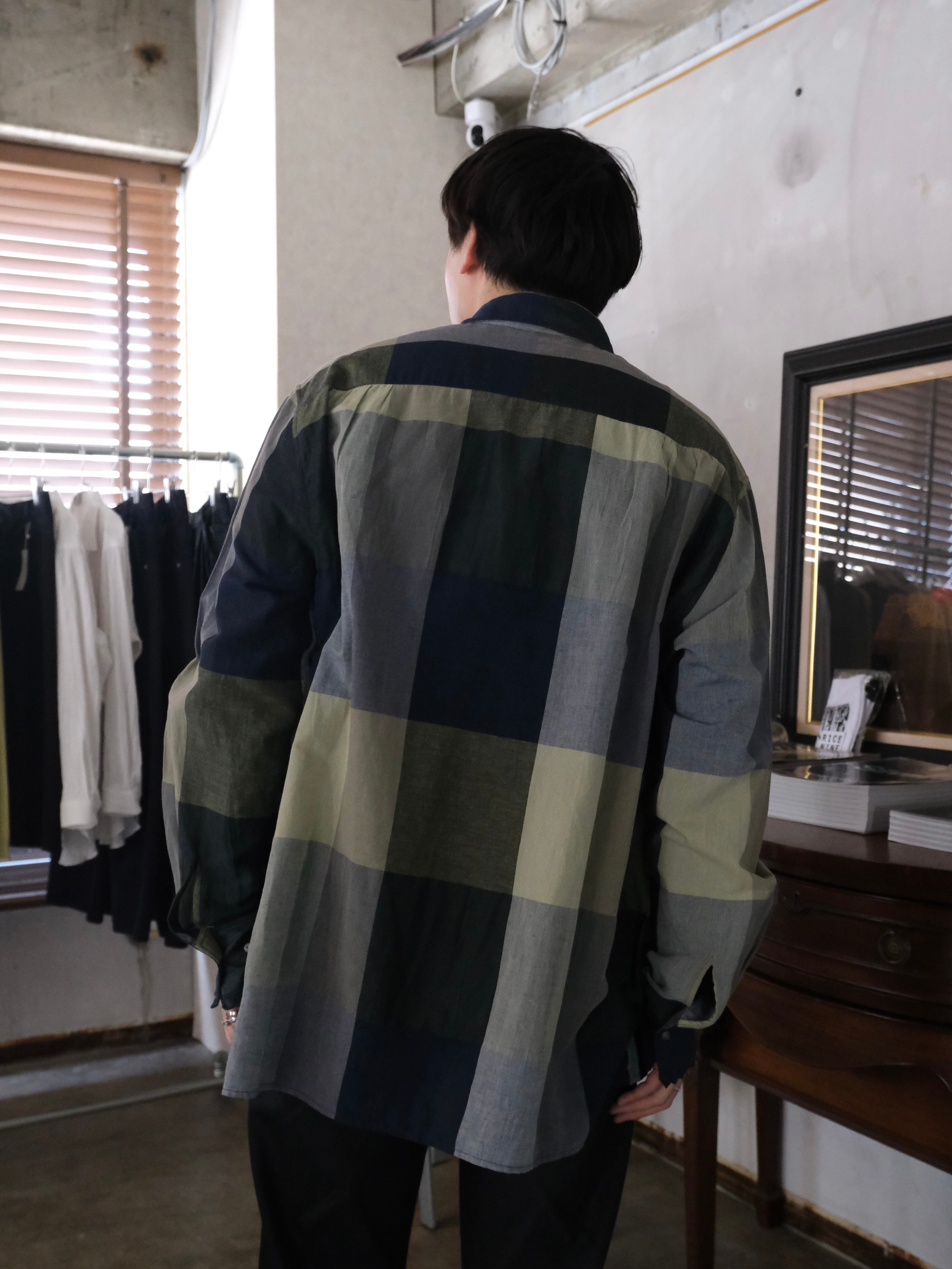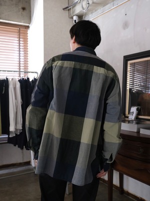 ゆったりとしたサイズ感と大判なチェック柄が緩めな雰囲気で着て頂ける1枚。