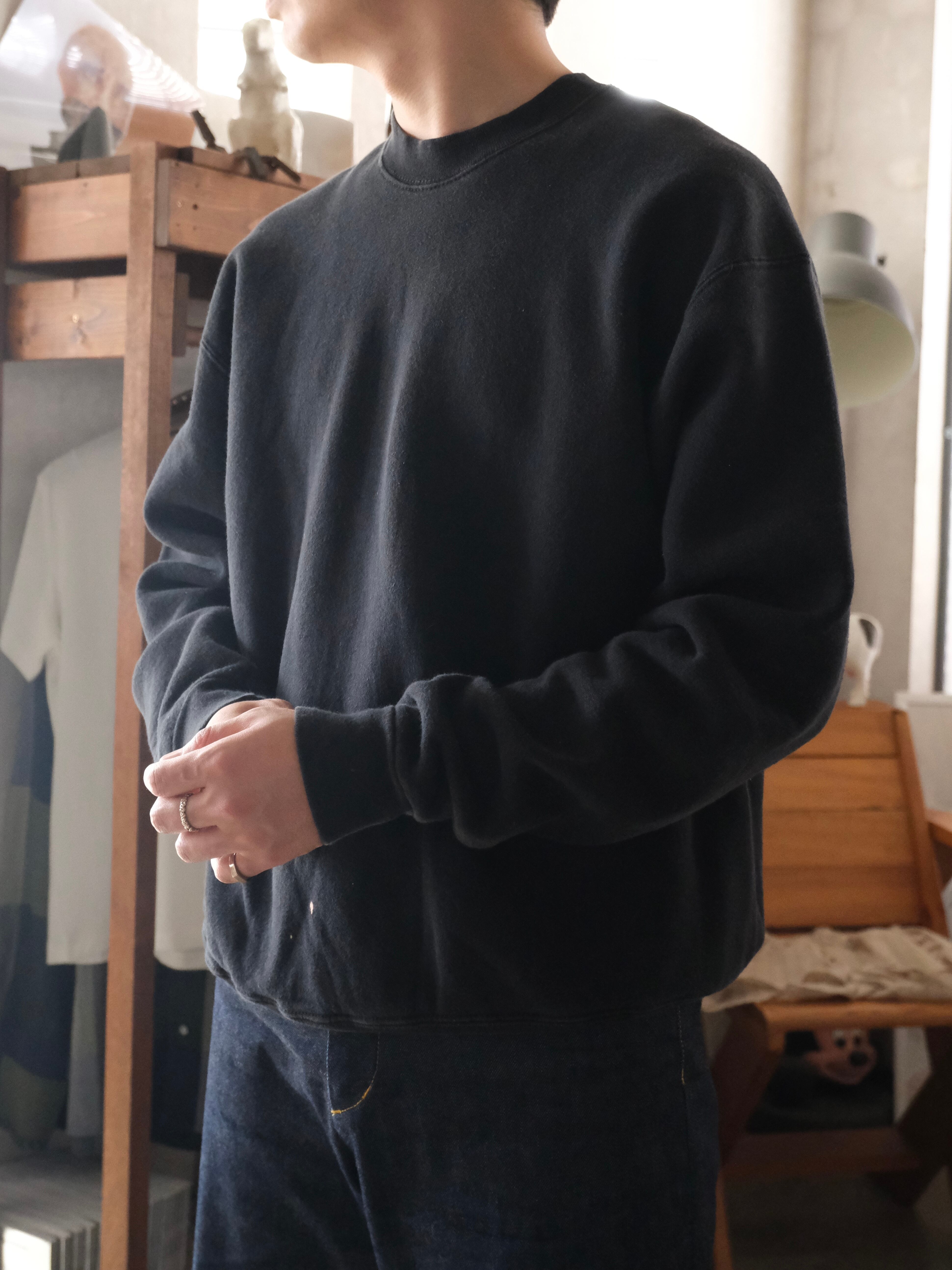 洗いがかったブラックカラーが雰囲気のあるスウェットです。