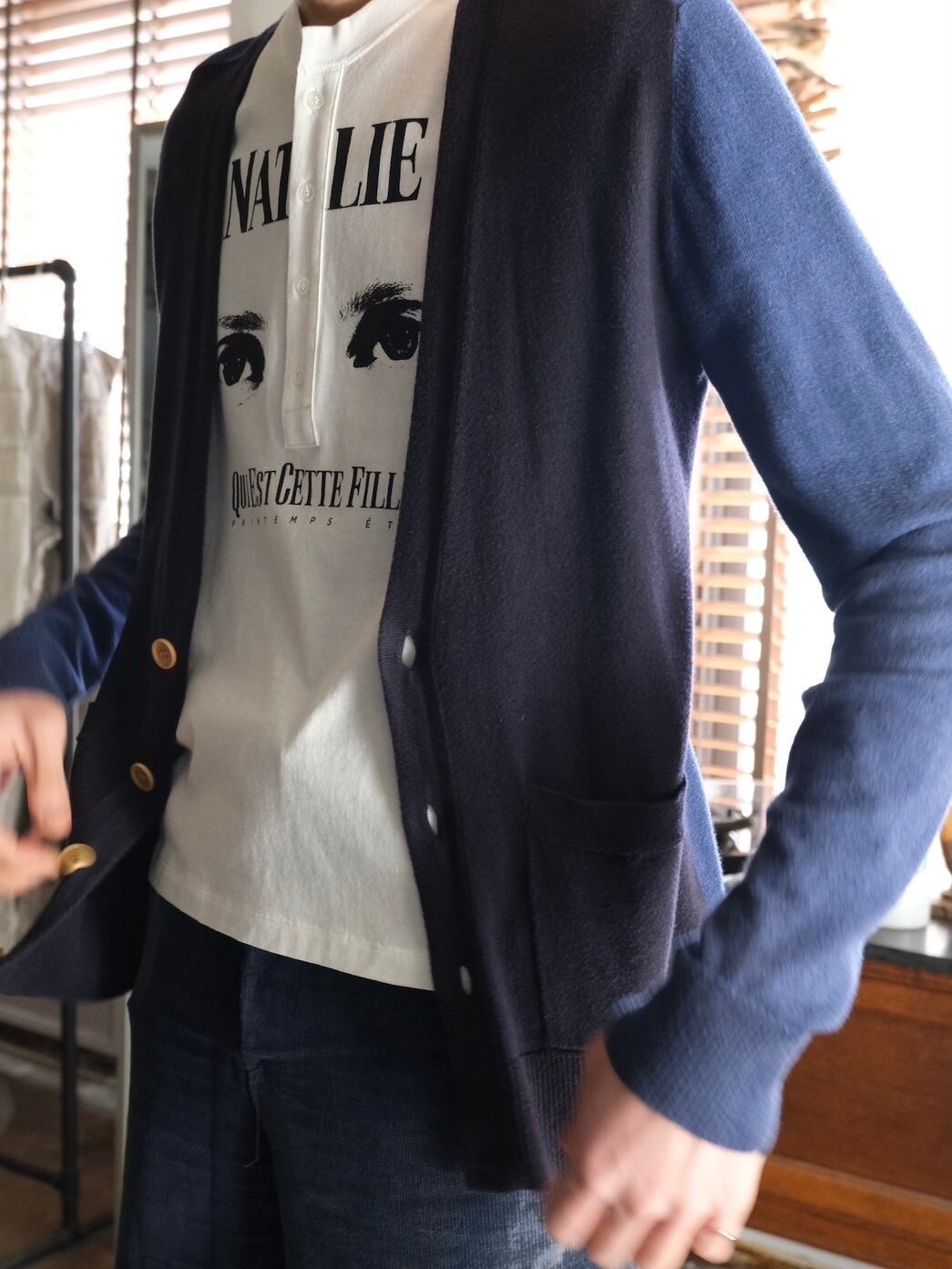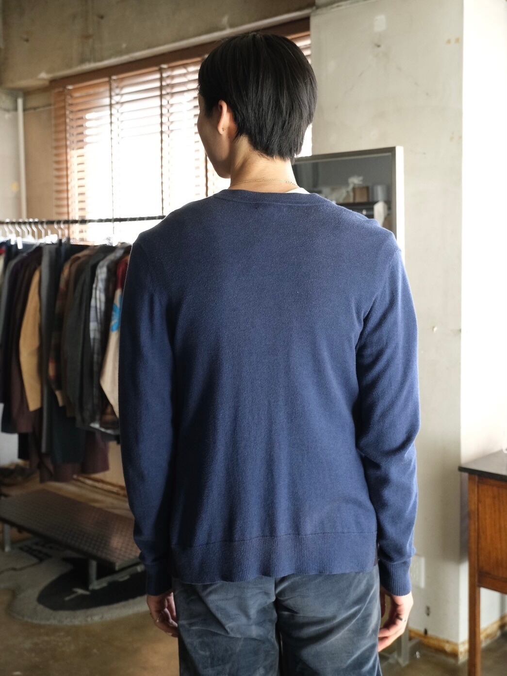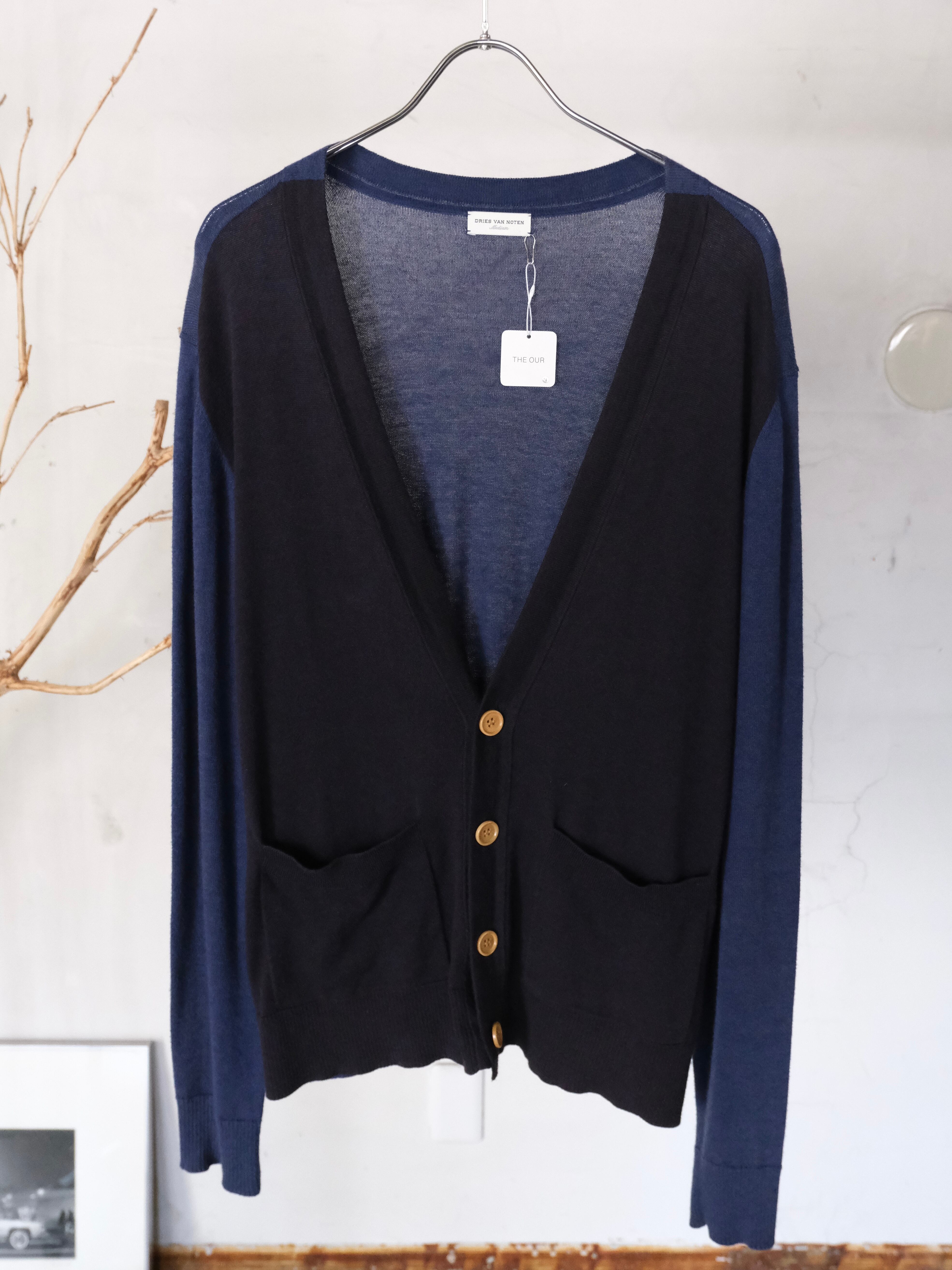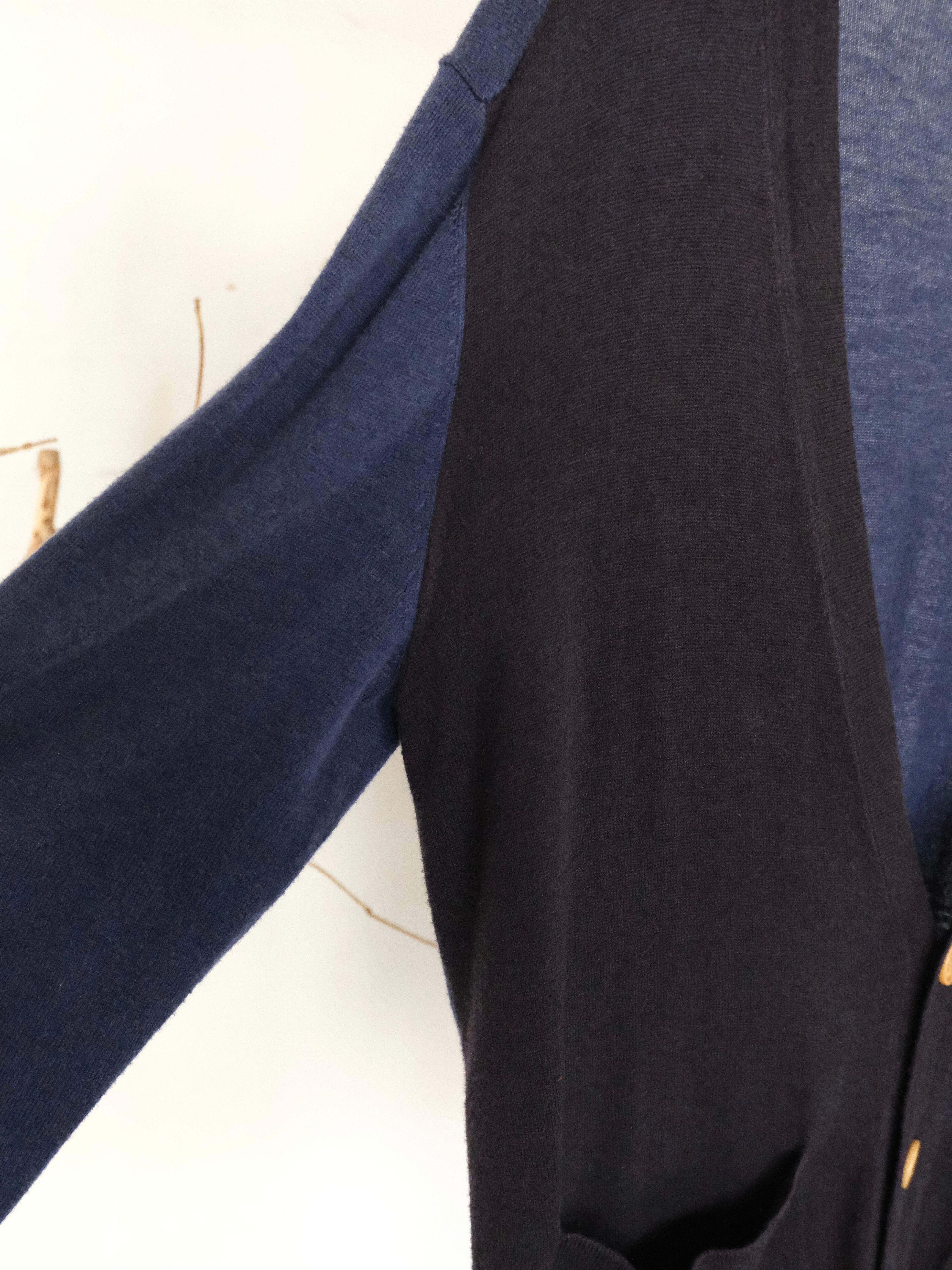 ブルー×ネイビーのバイカラーカーディガン