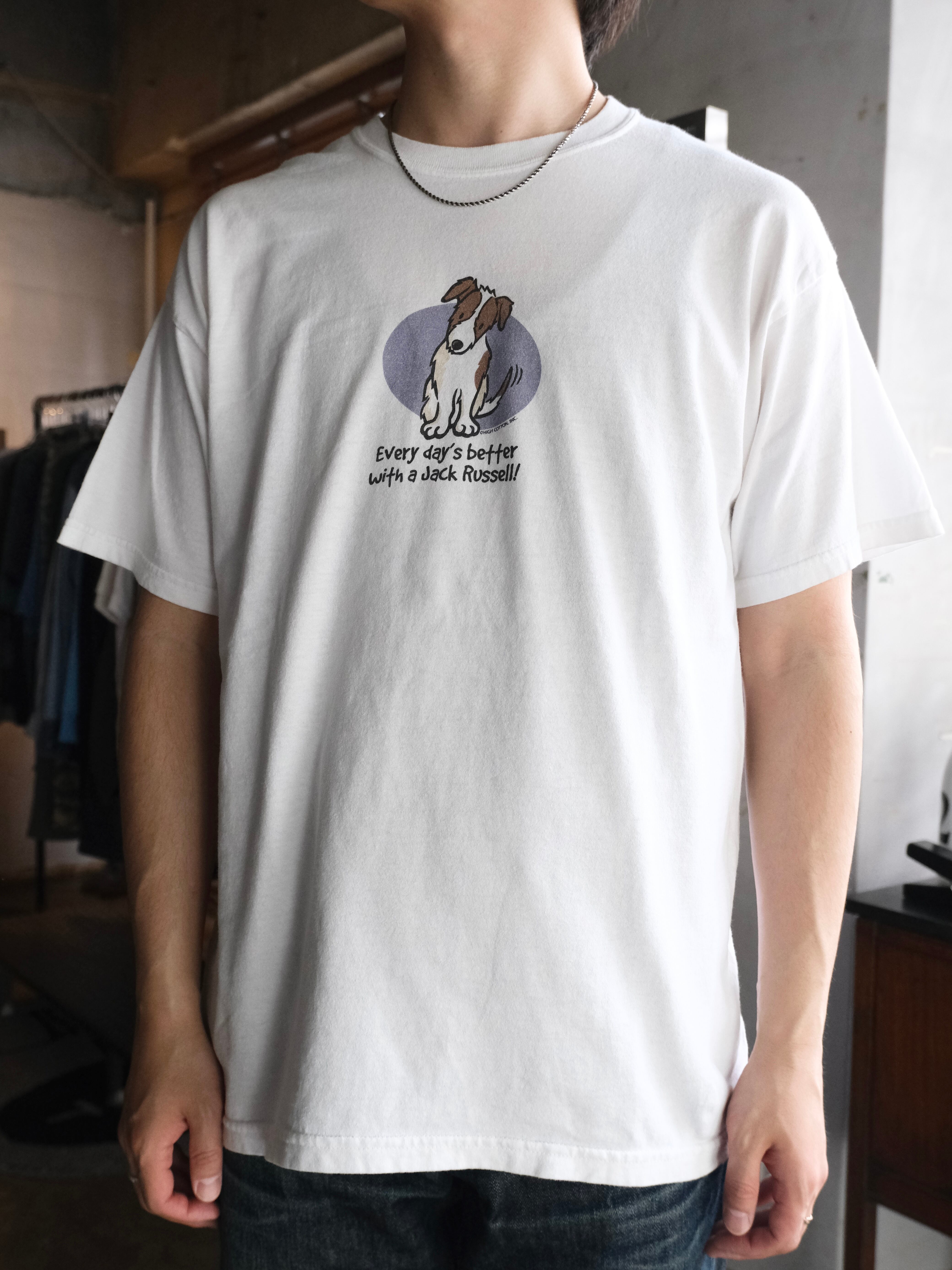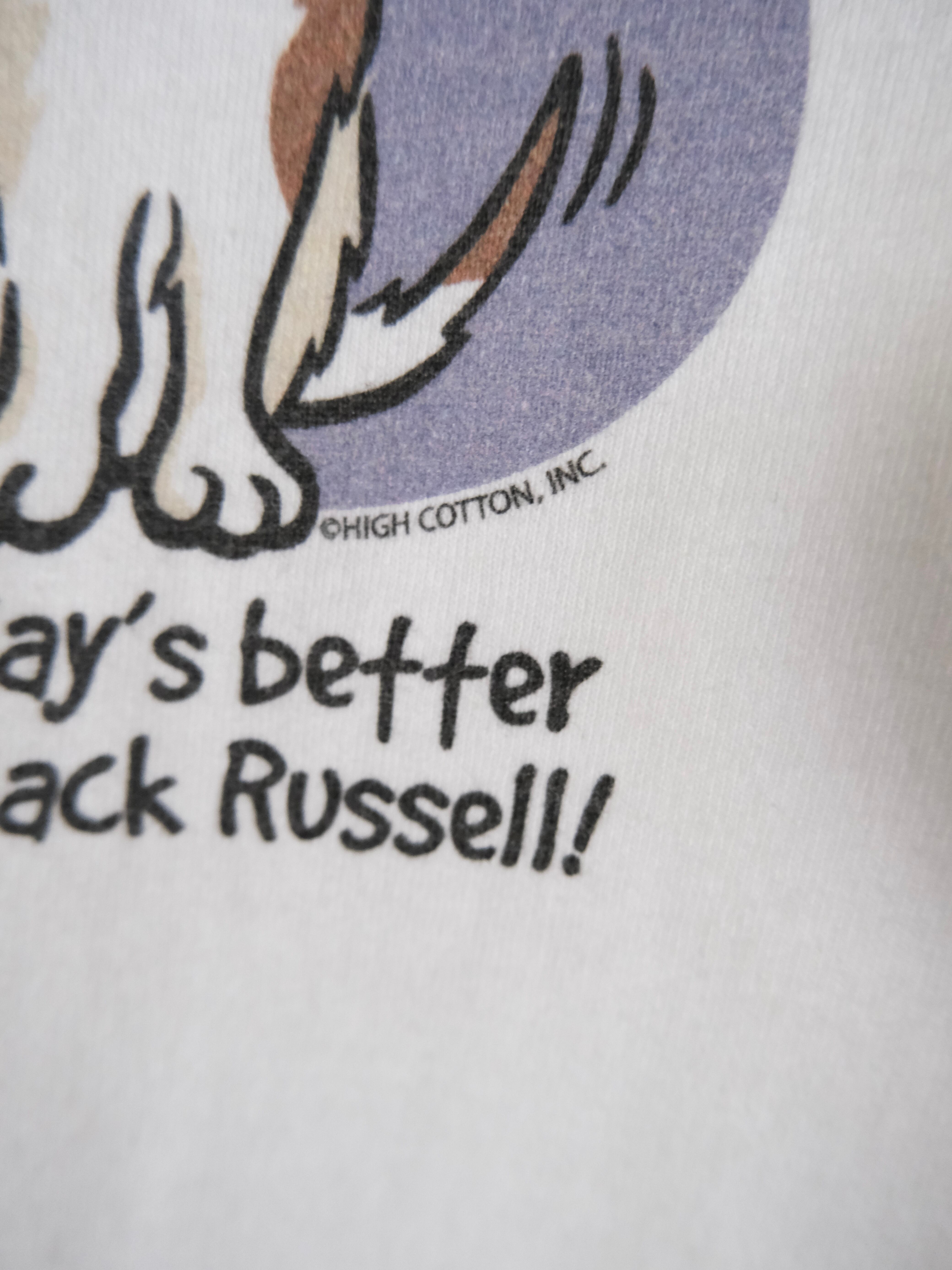 『Every day's better witk a Jack Russell!』と書かれたTシャツ。
