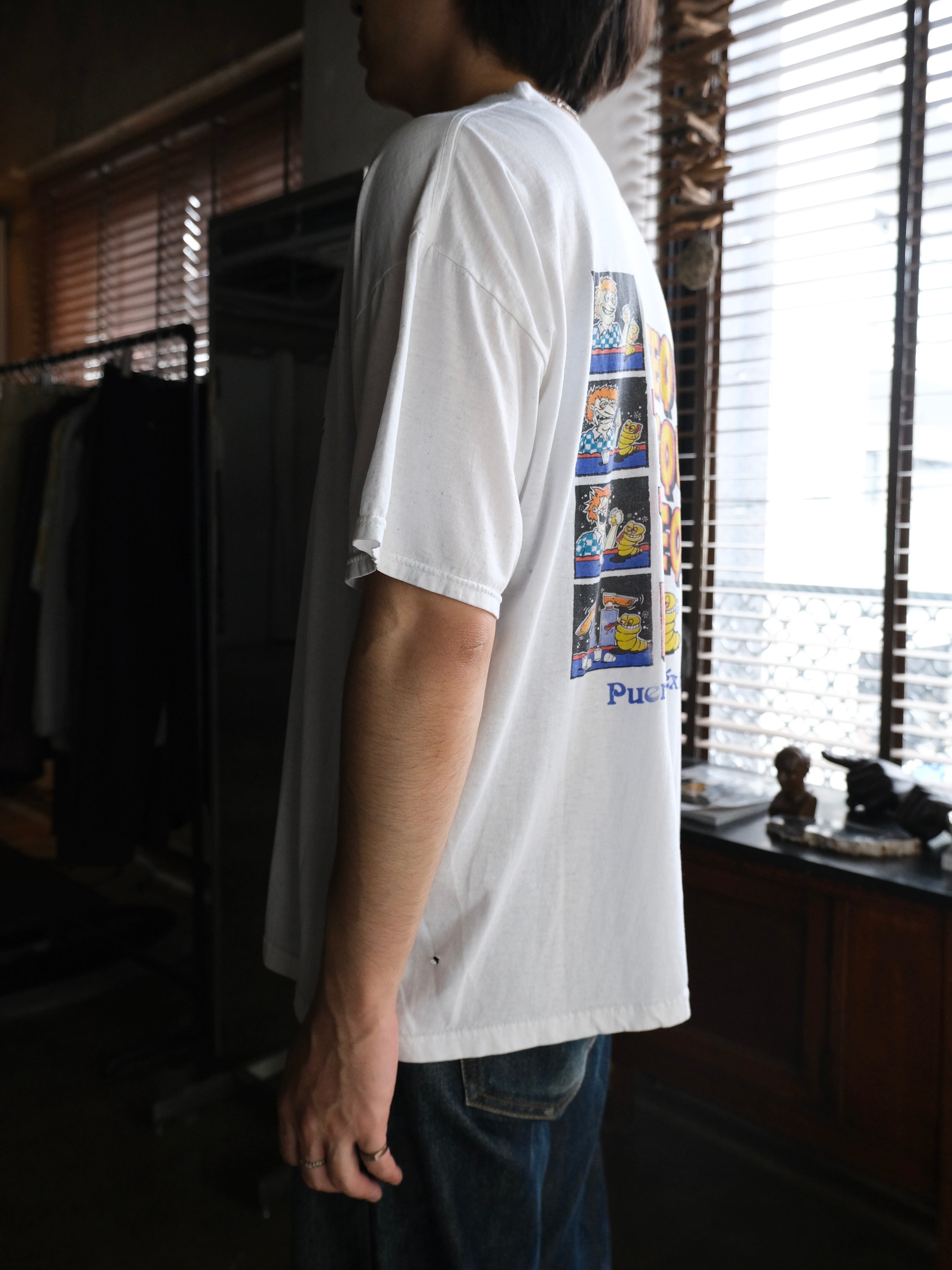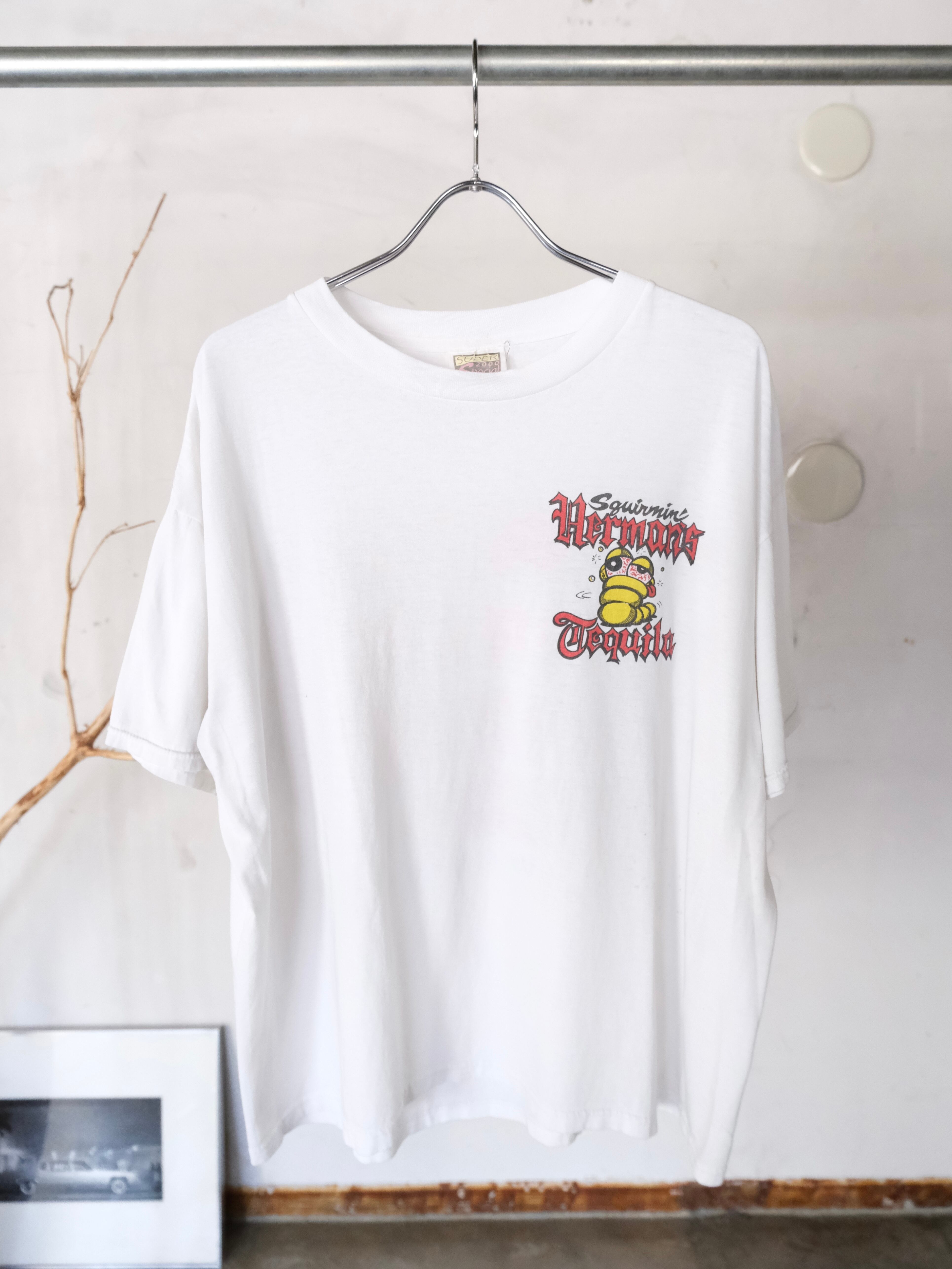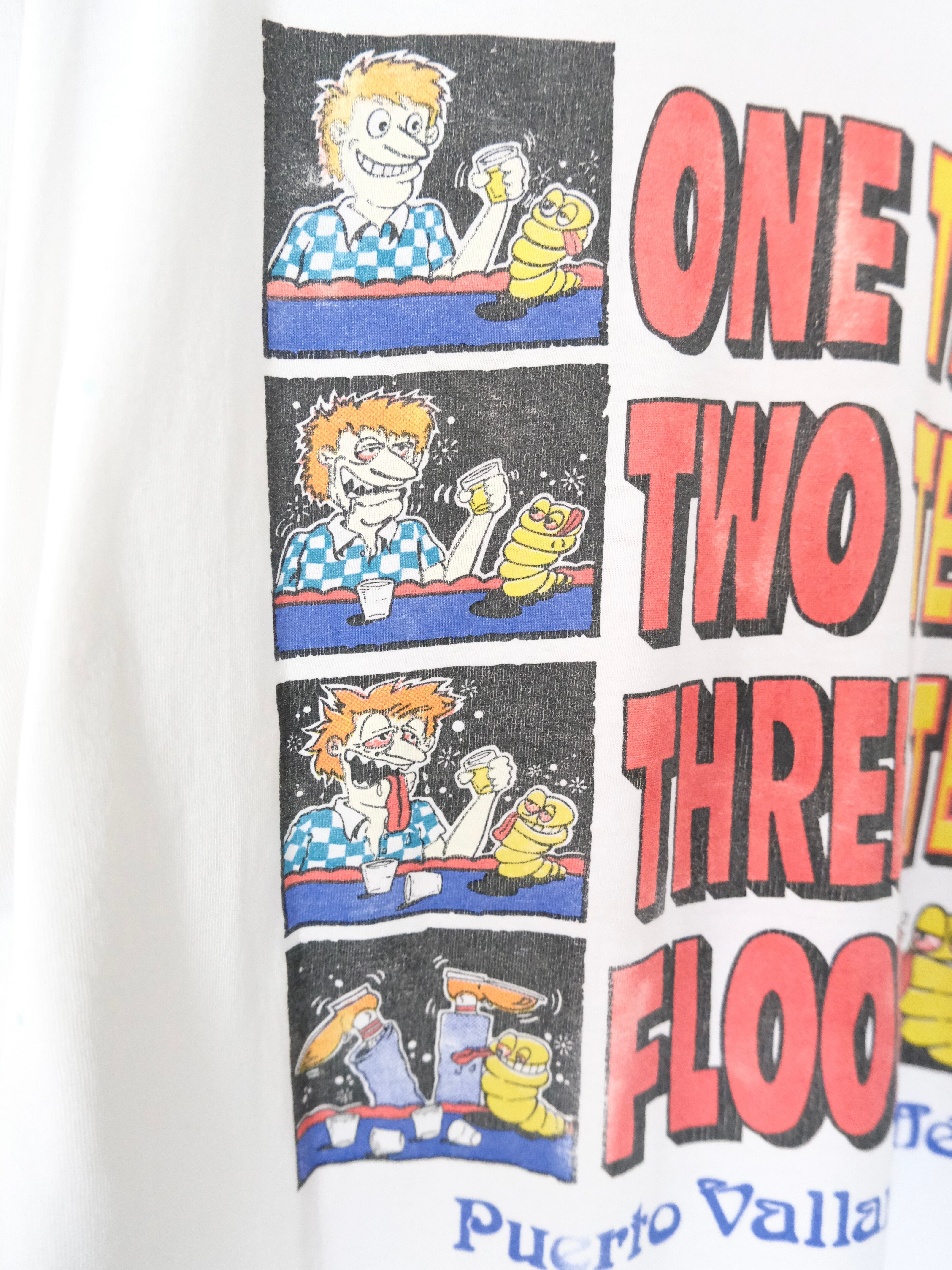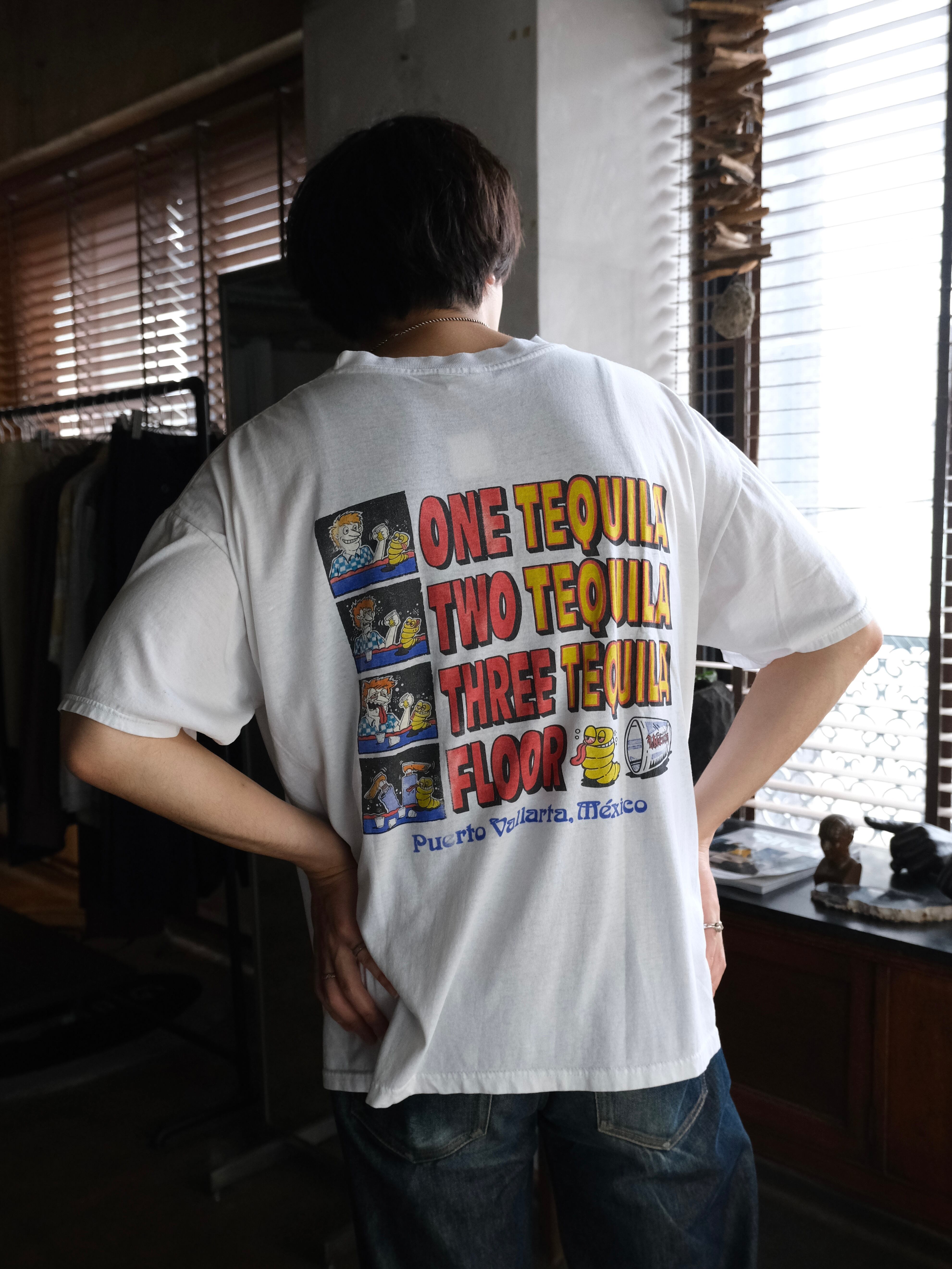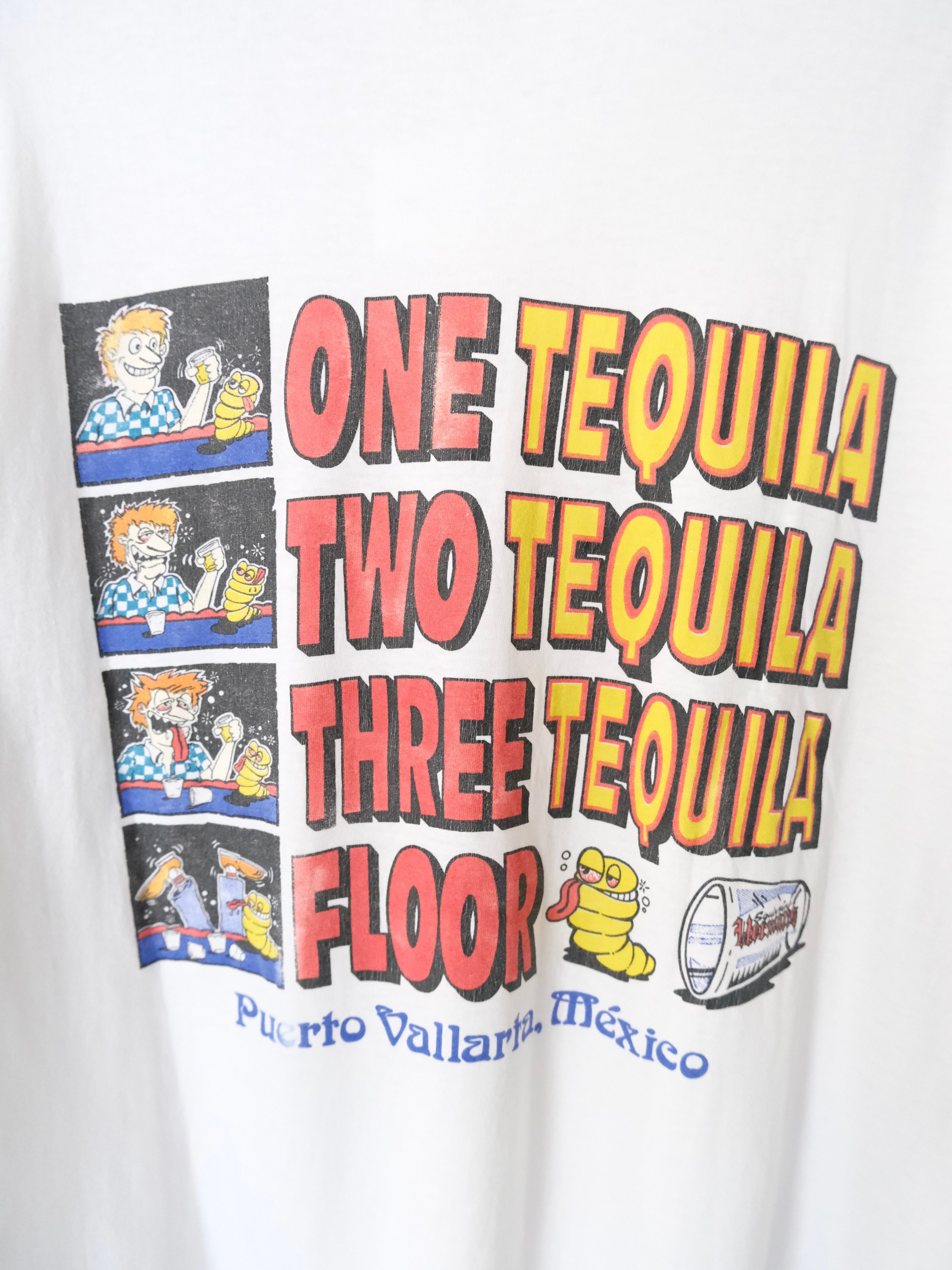 テキーラを飲むにつれて酔いが回る男性が描かれたTシャツ。