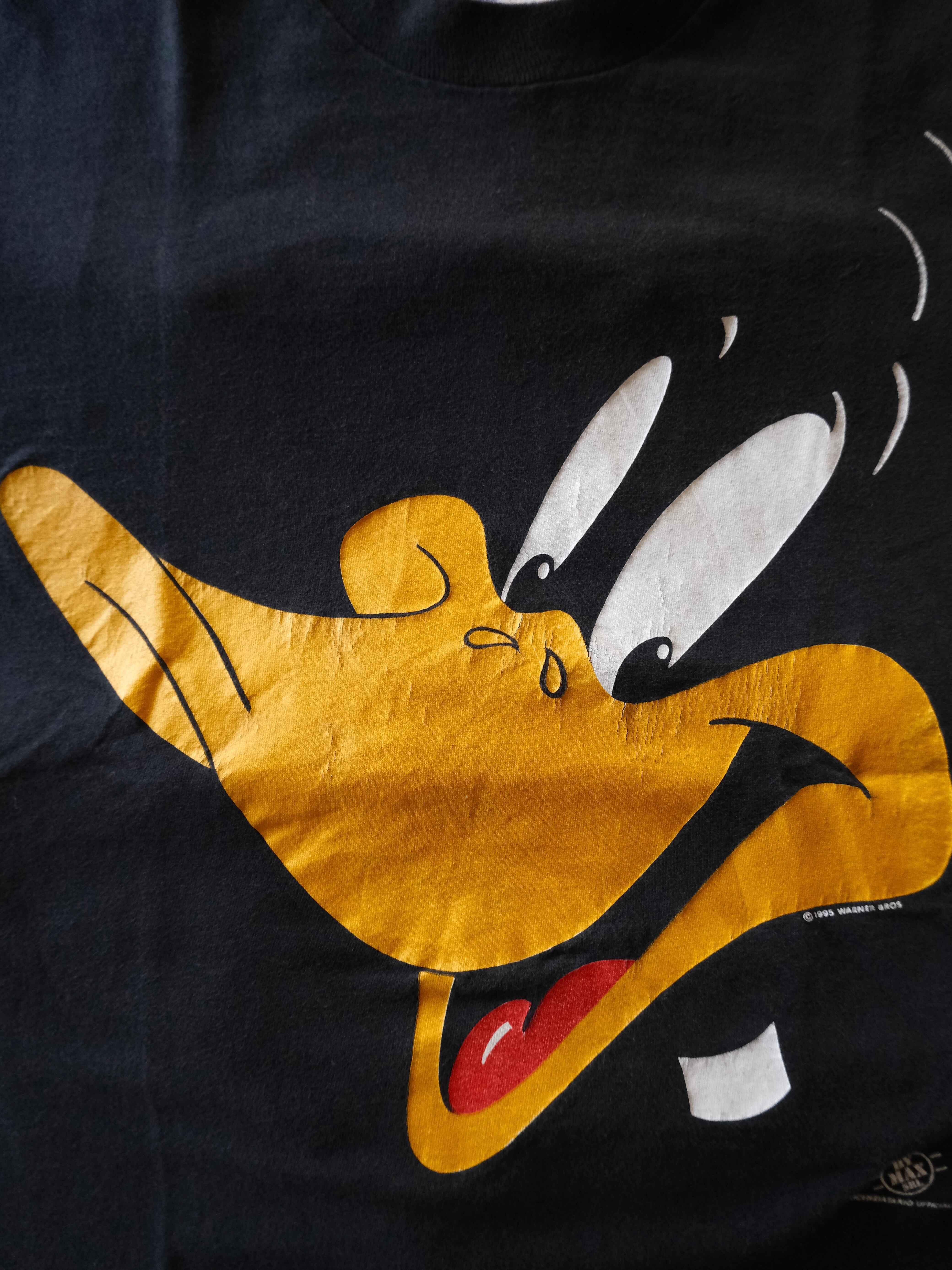 ワーナー・ブラザースのキャラクター『ダフィーダック』の顔がプリントされた1枚。