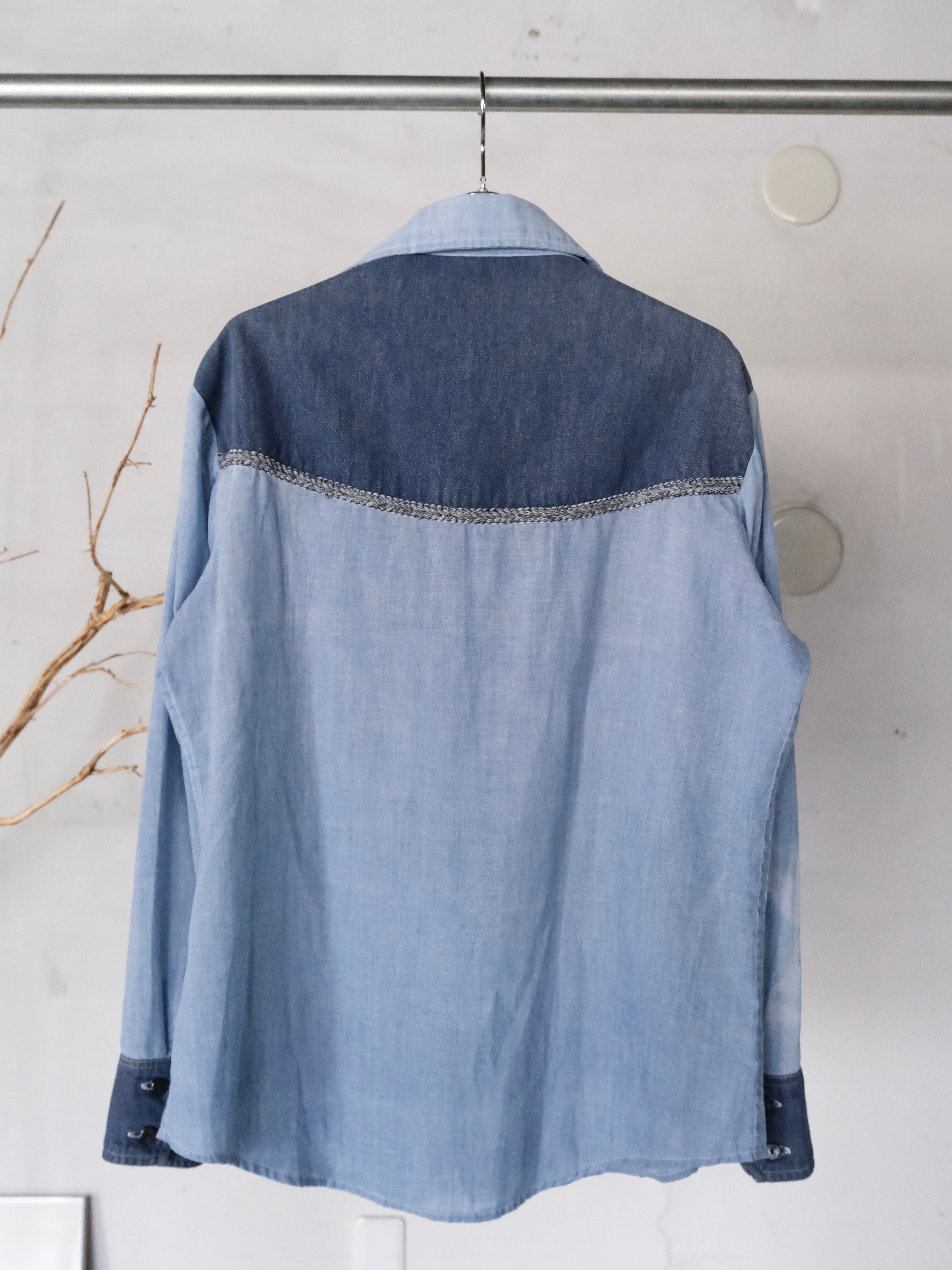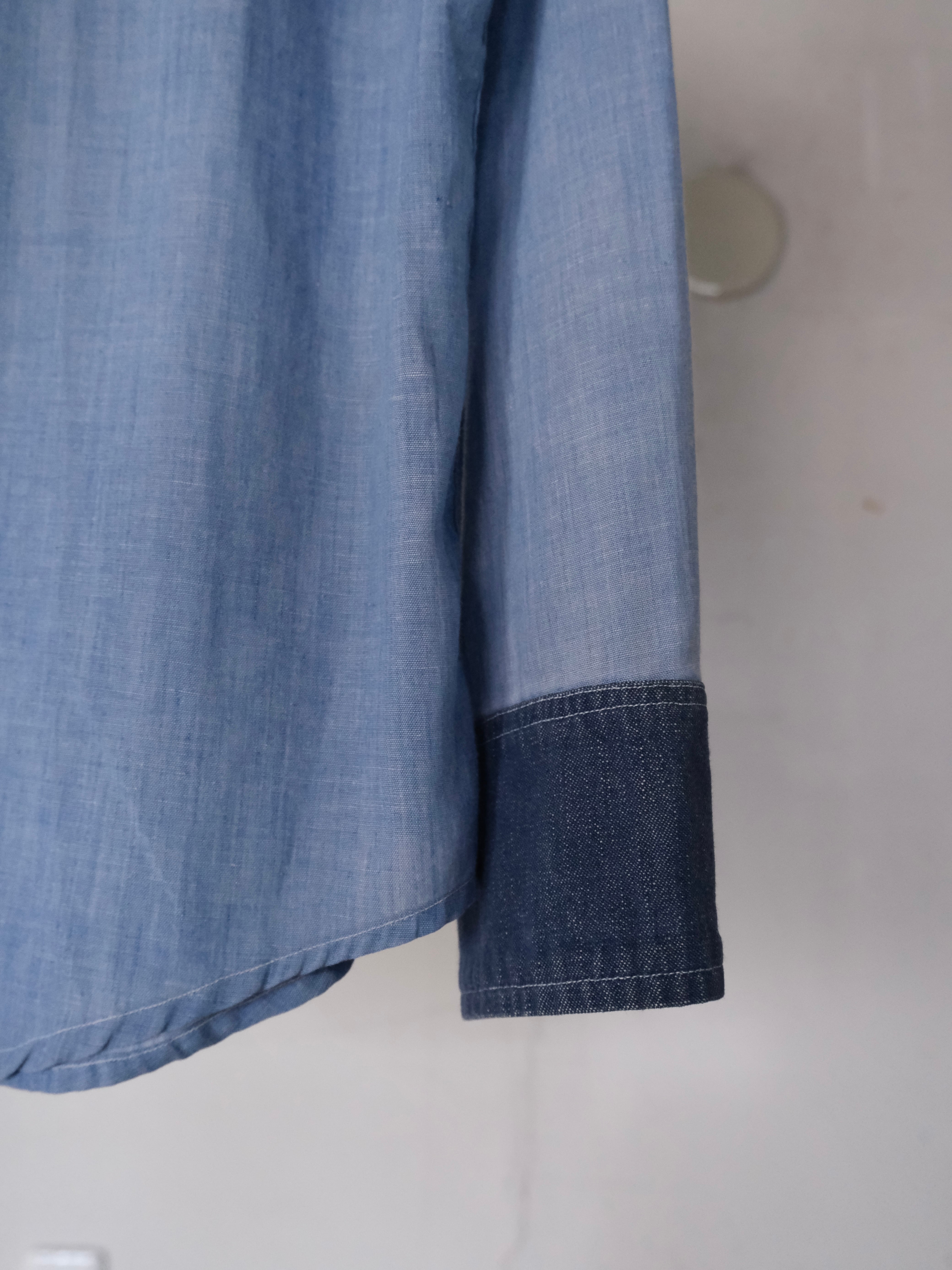 シャンブレー生地らしい柔らかなタッチのシャツ
