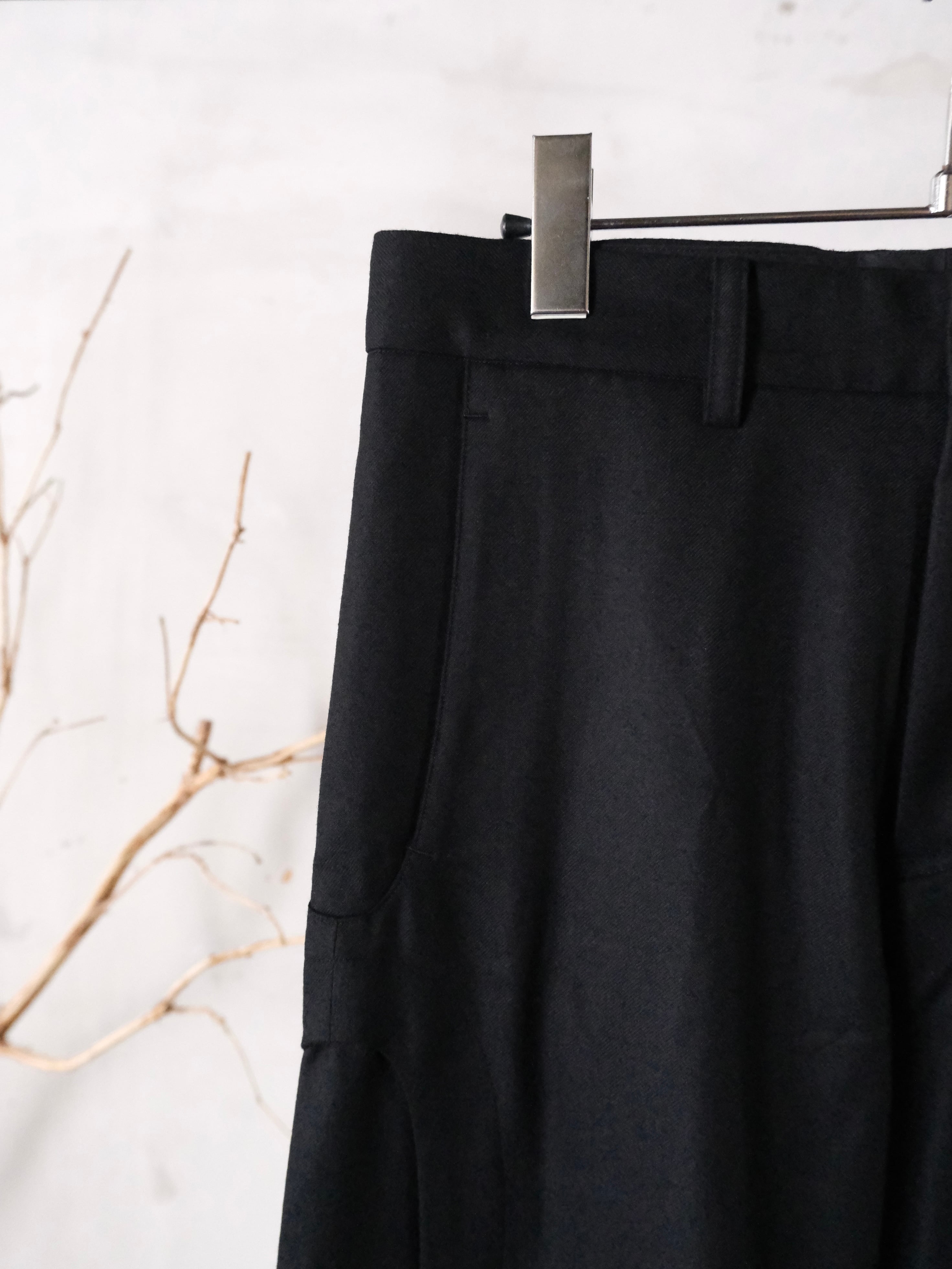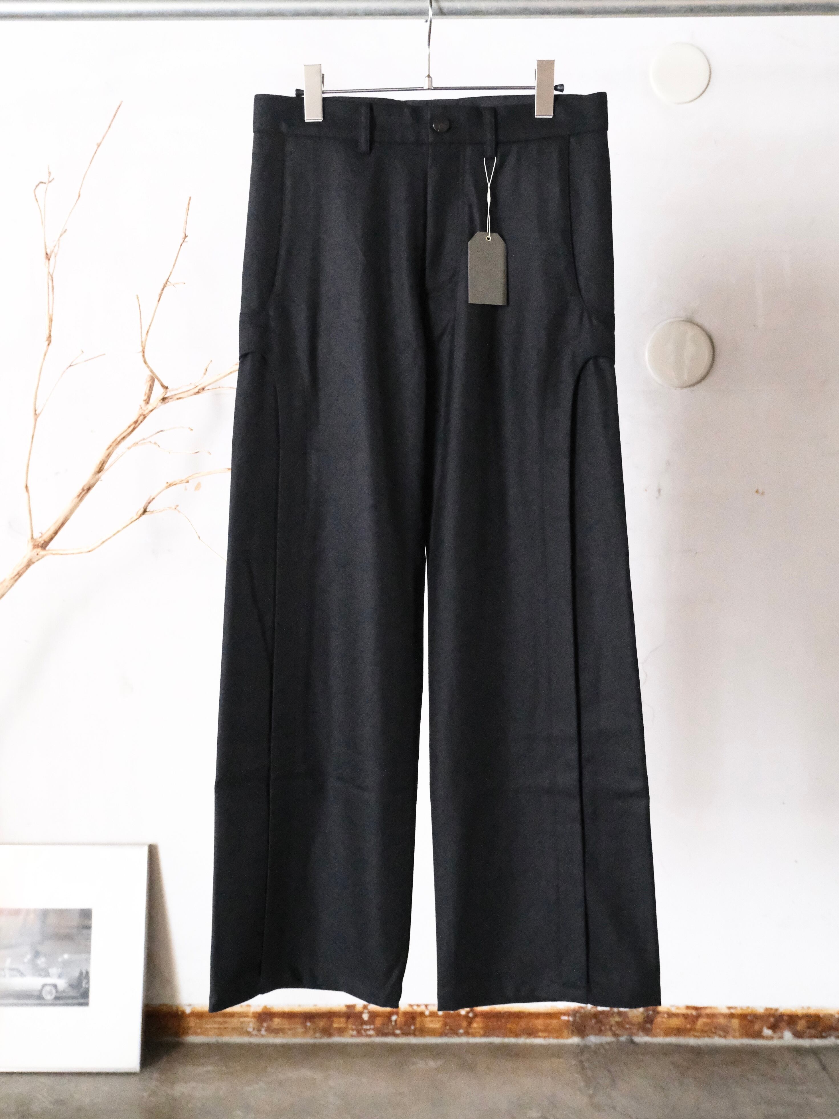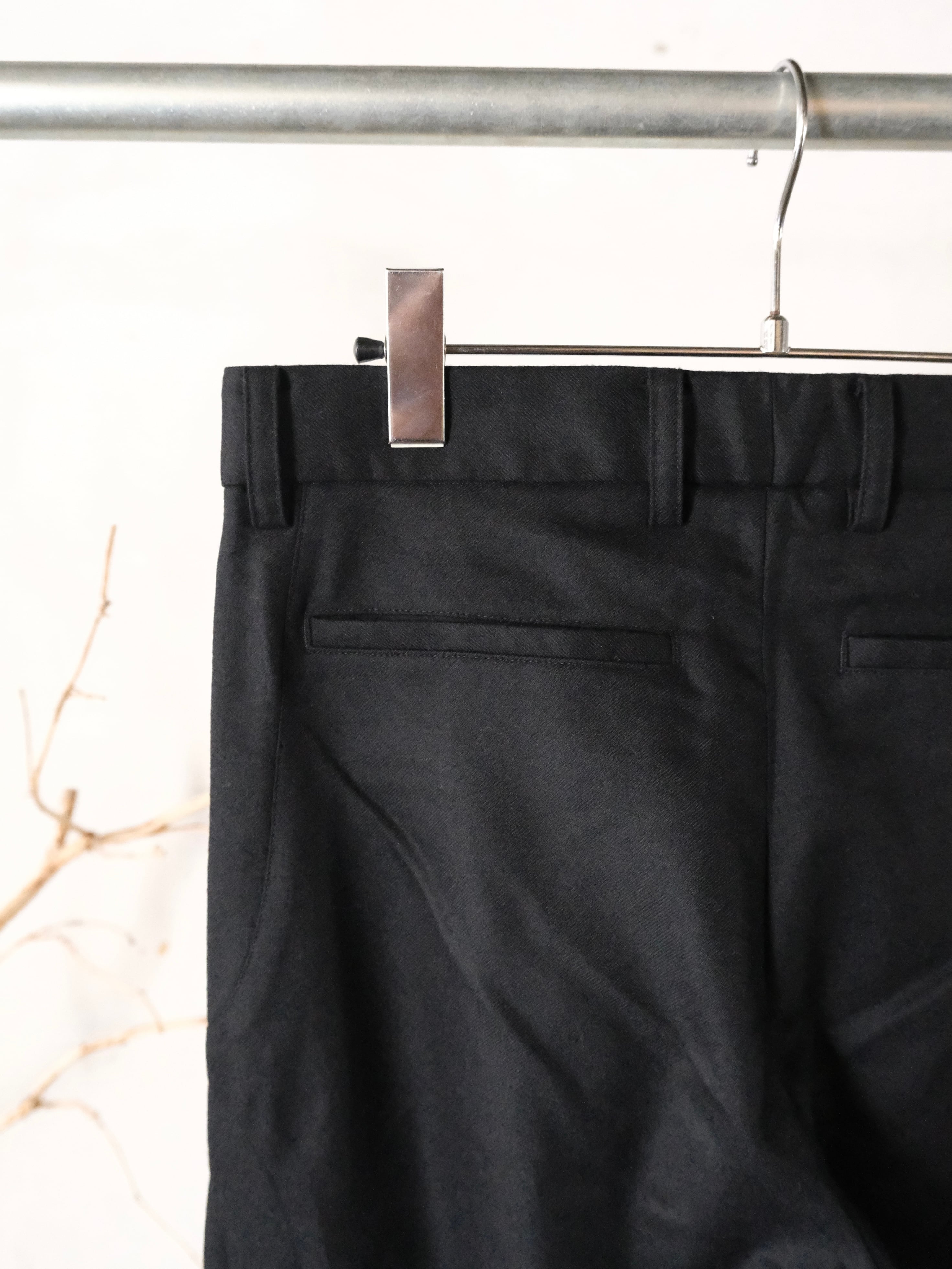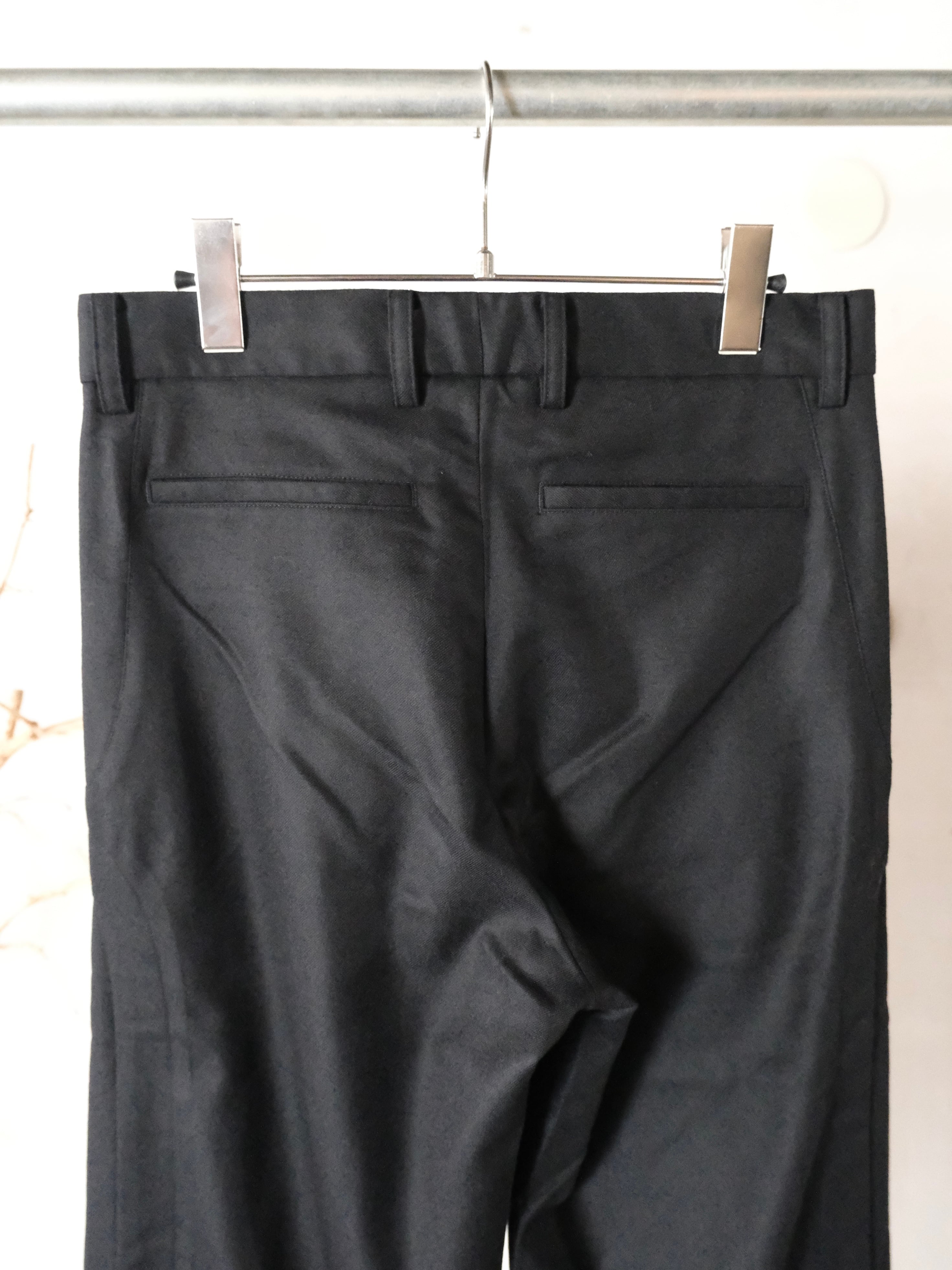 2/60のSuper100's原料を使用し上品でしなやかな風合いののストレッチフラノで仕立てたウールパンツ。
