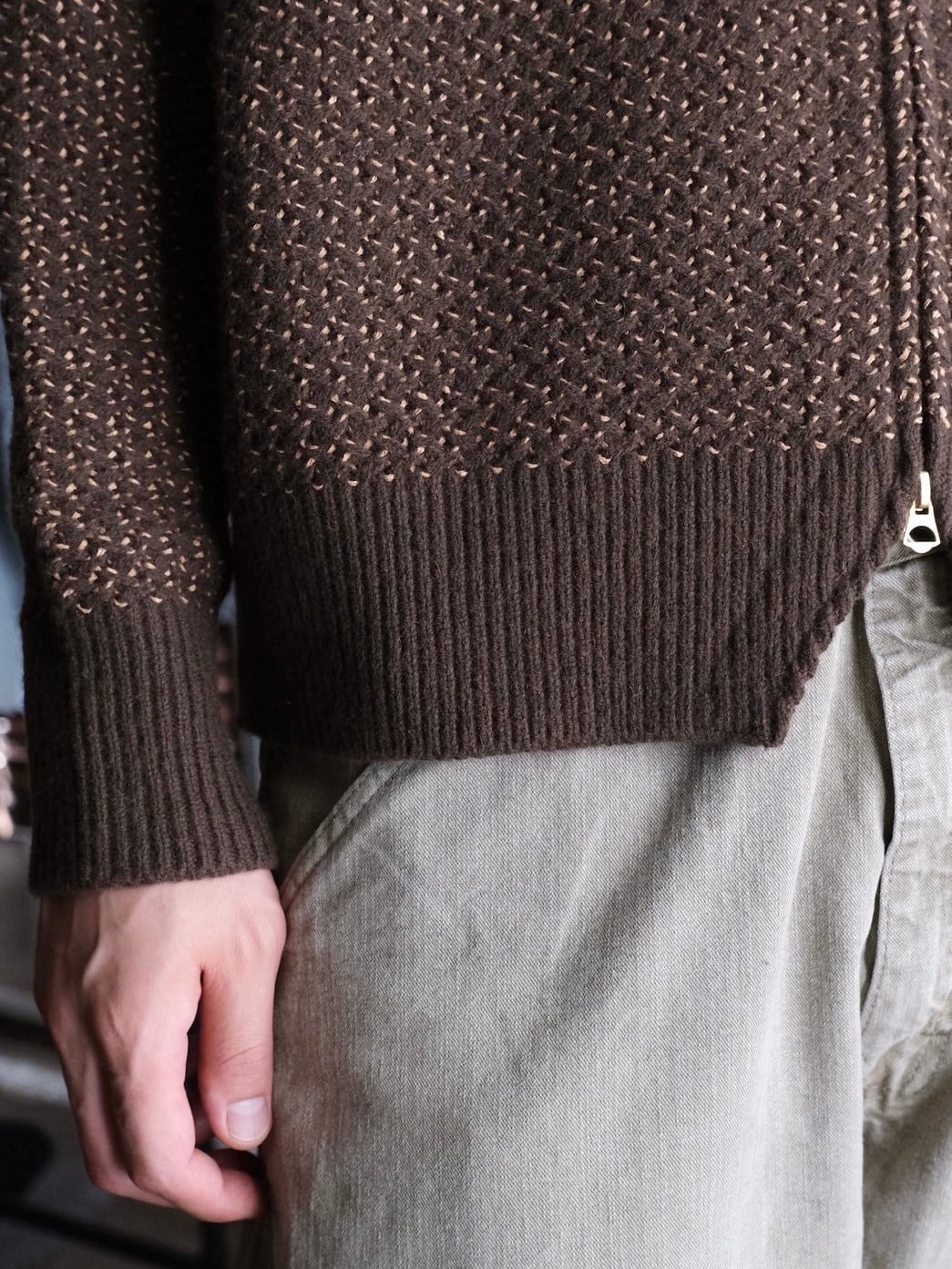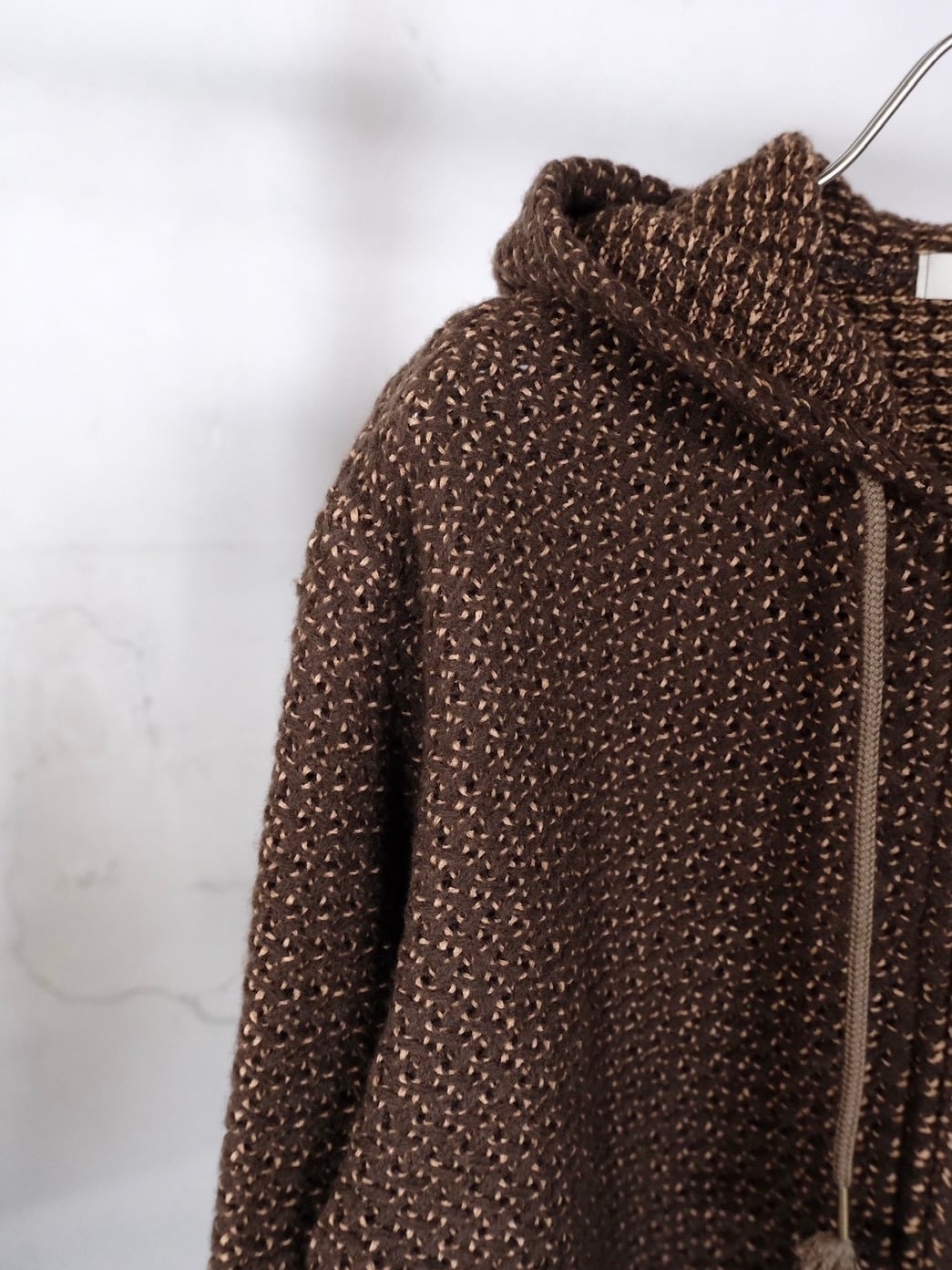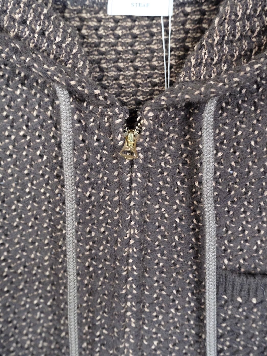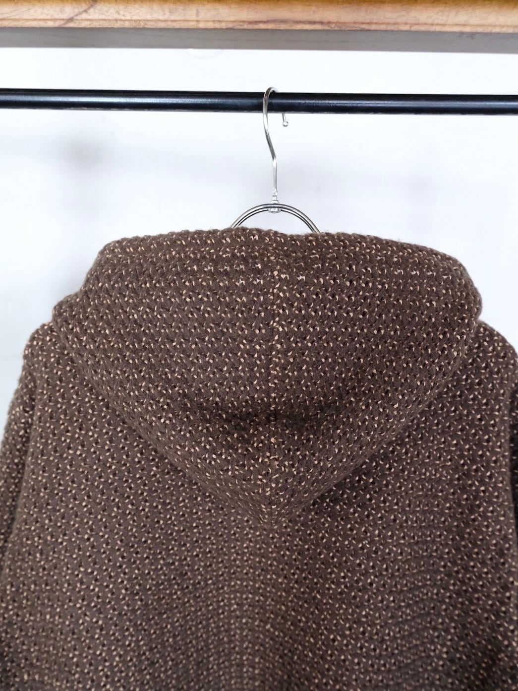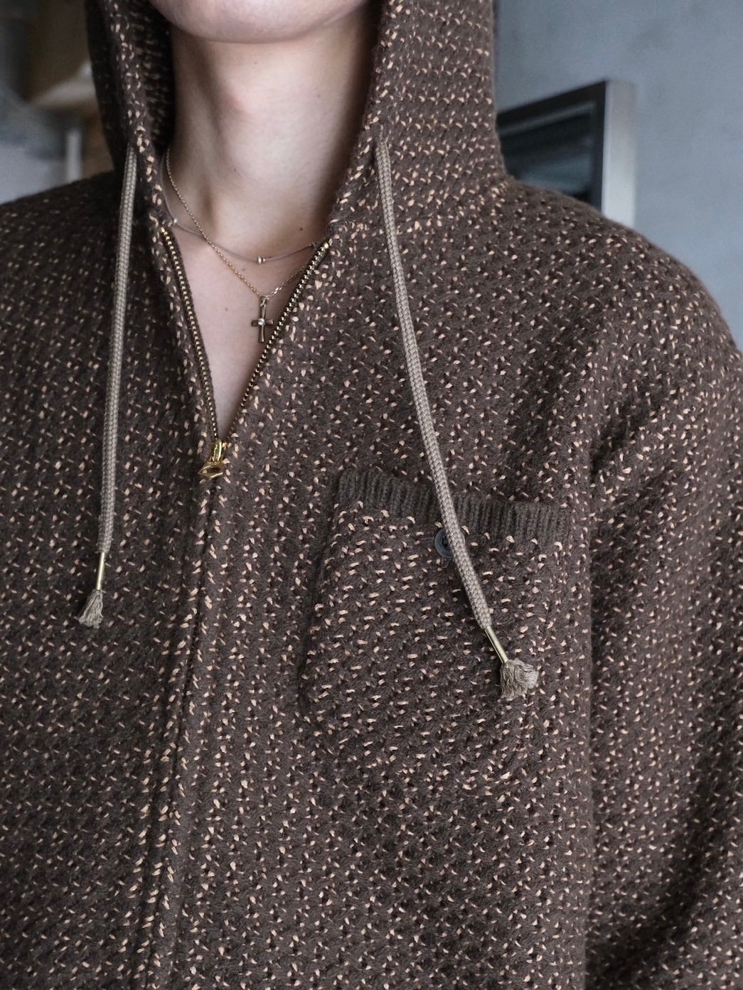 今期をイメージさせる5Gの2色のジャガード柄の交差編みのニットパーカー。