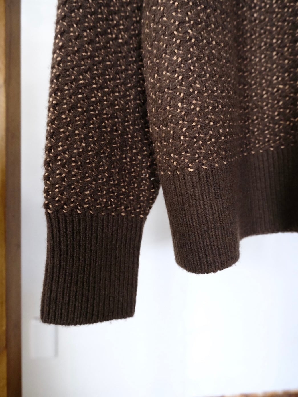 糸は軽くて膨らみのある紡毛素材に、和紙混のかべ糸調の異素材を組み合わせております。