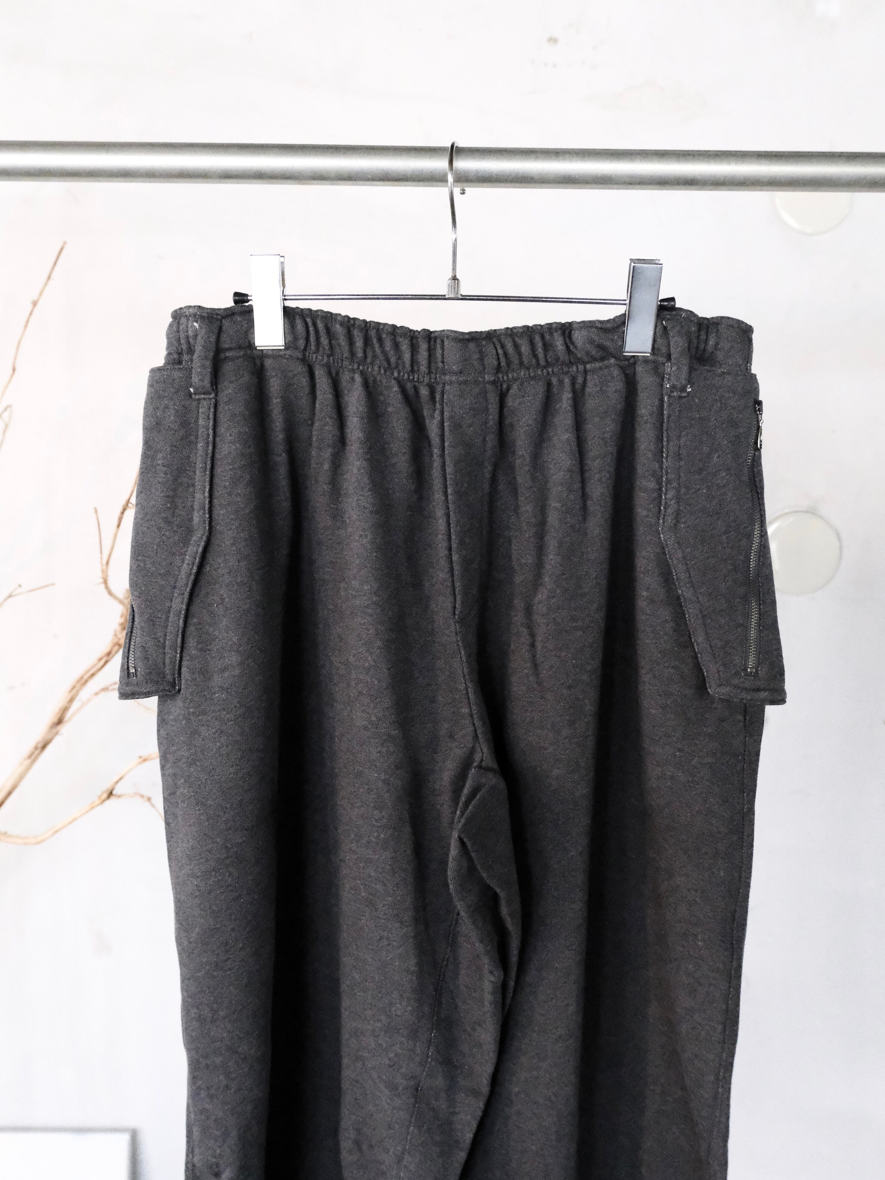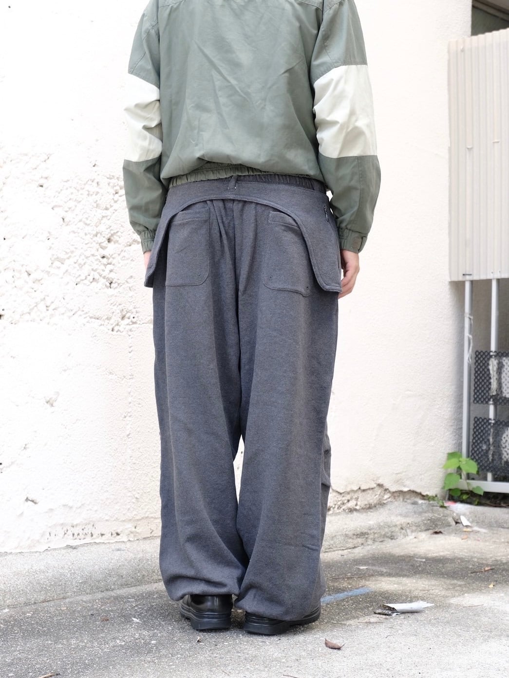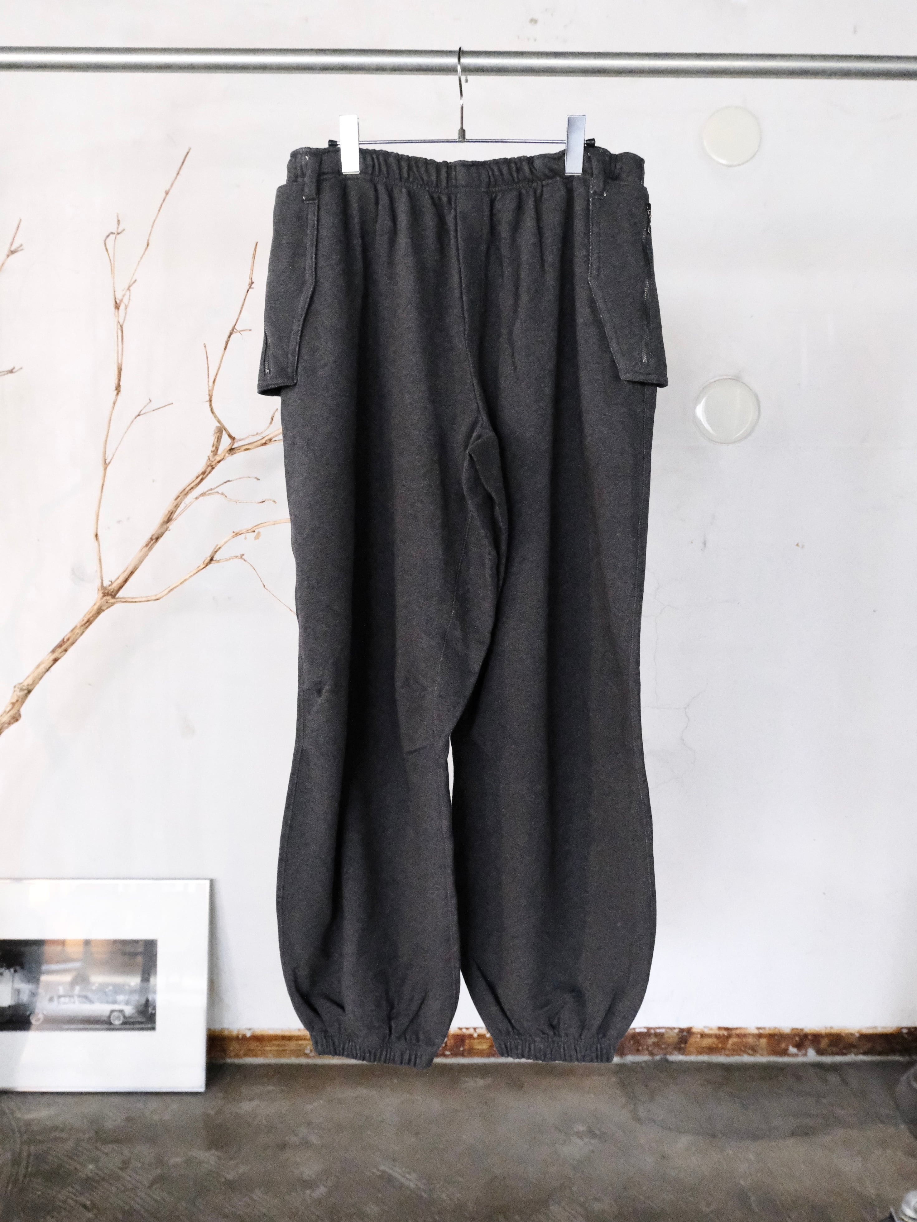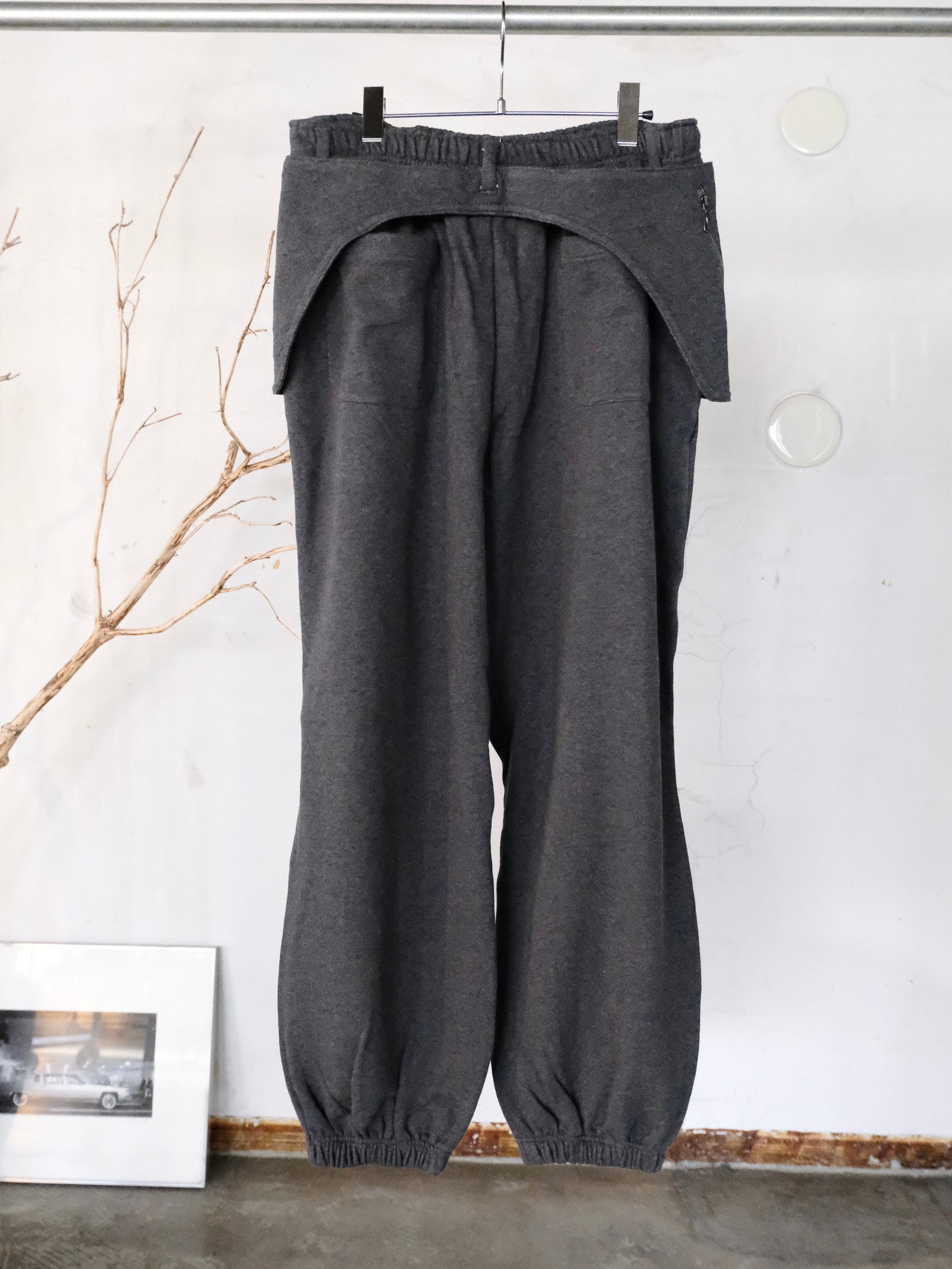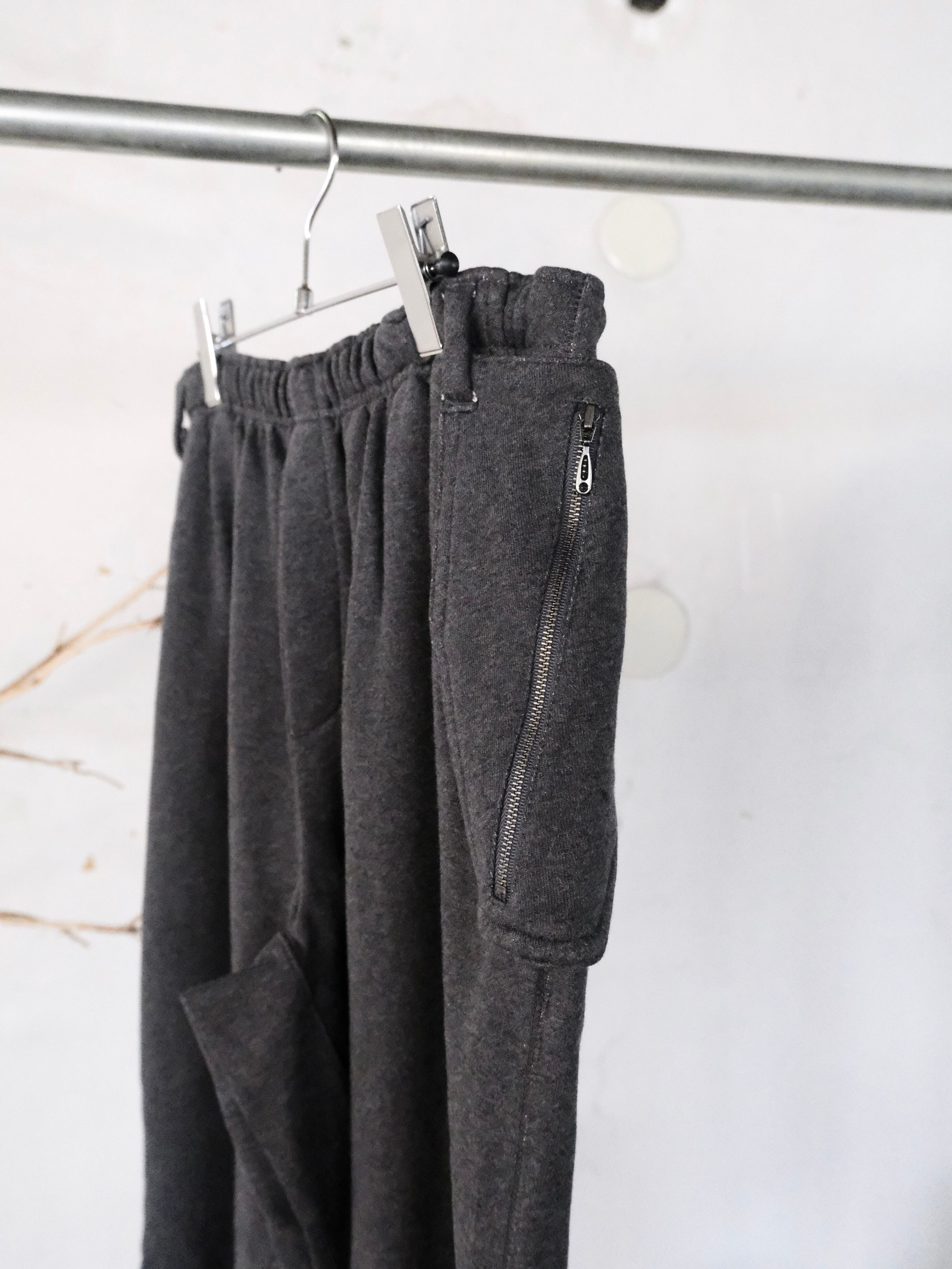膝下にマチがあり、膝にタックが入ったバルーンシルエットのパラシュートスウェットパンツです。