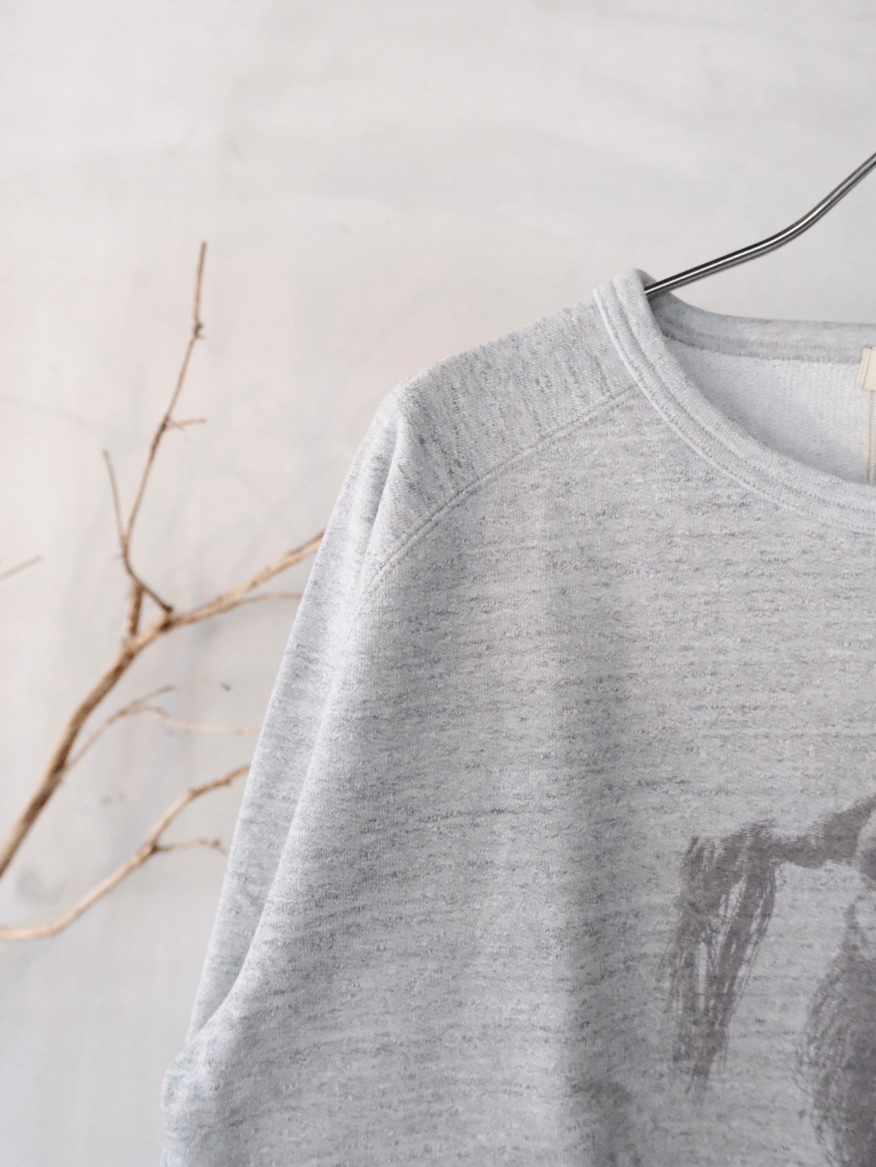 ヴィンテージ感のある面構えと独自のドライなタッチなヘビースウェット生地を使用したボートネックスウェットです。