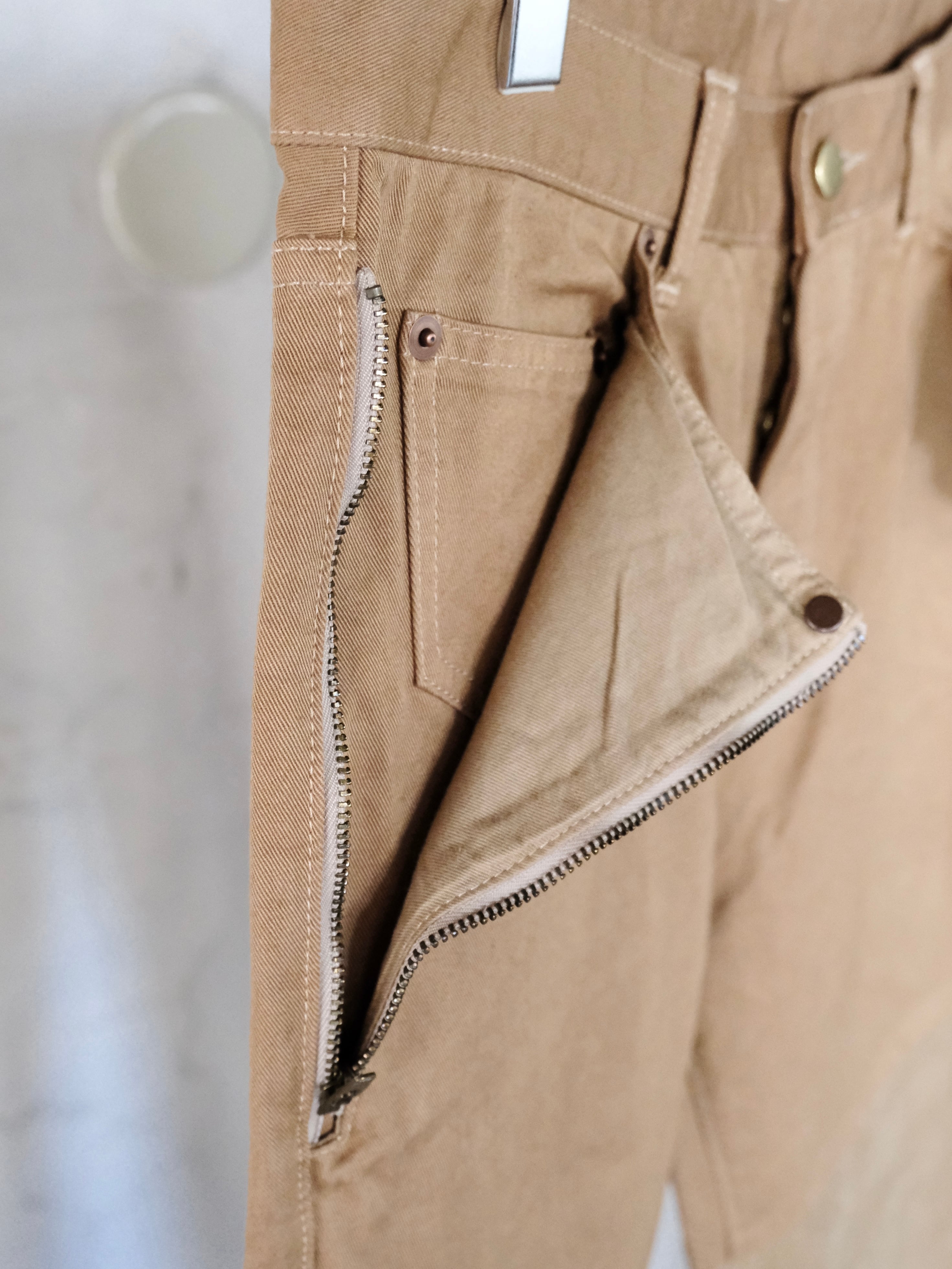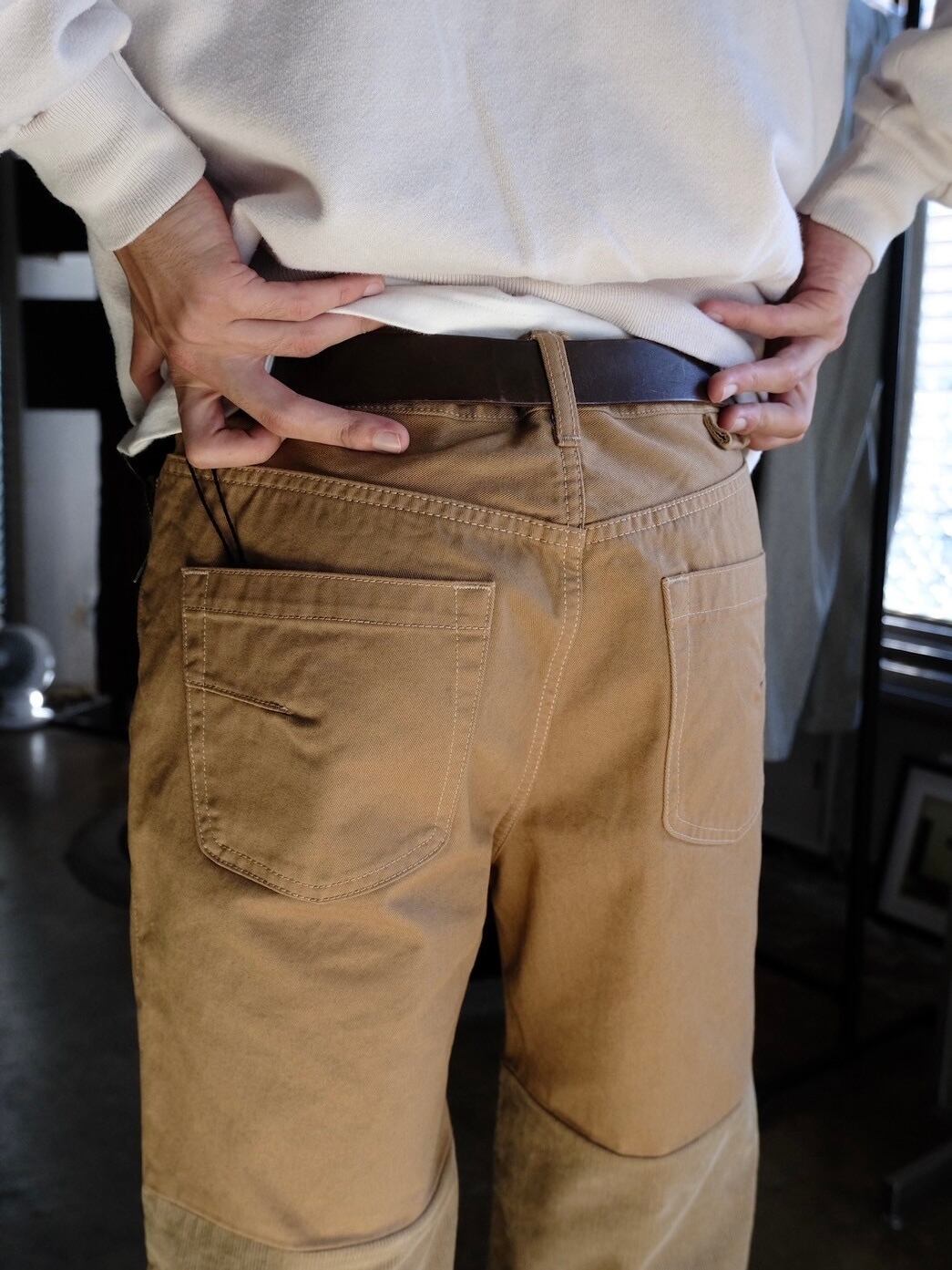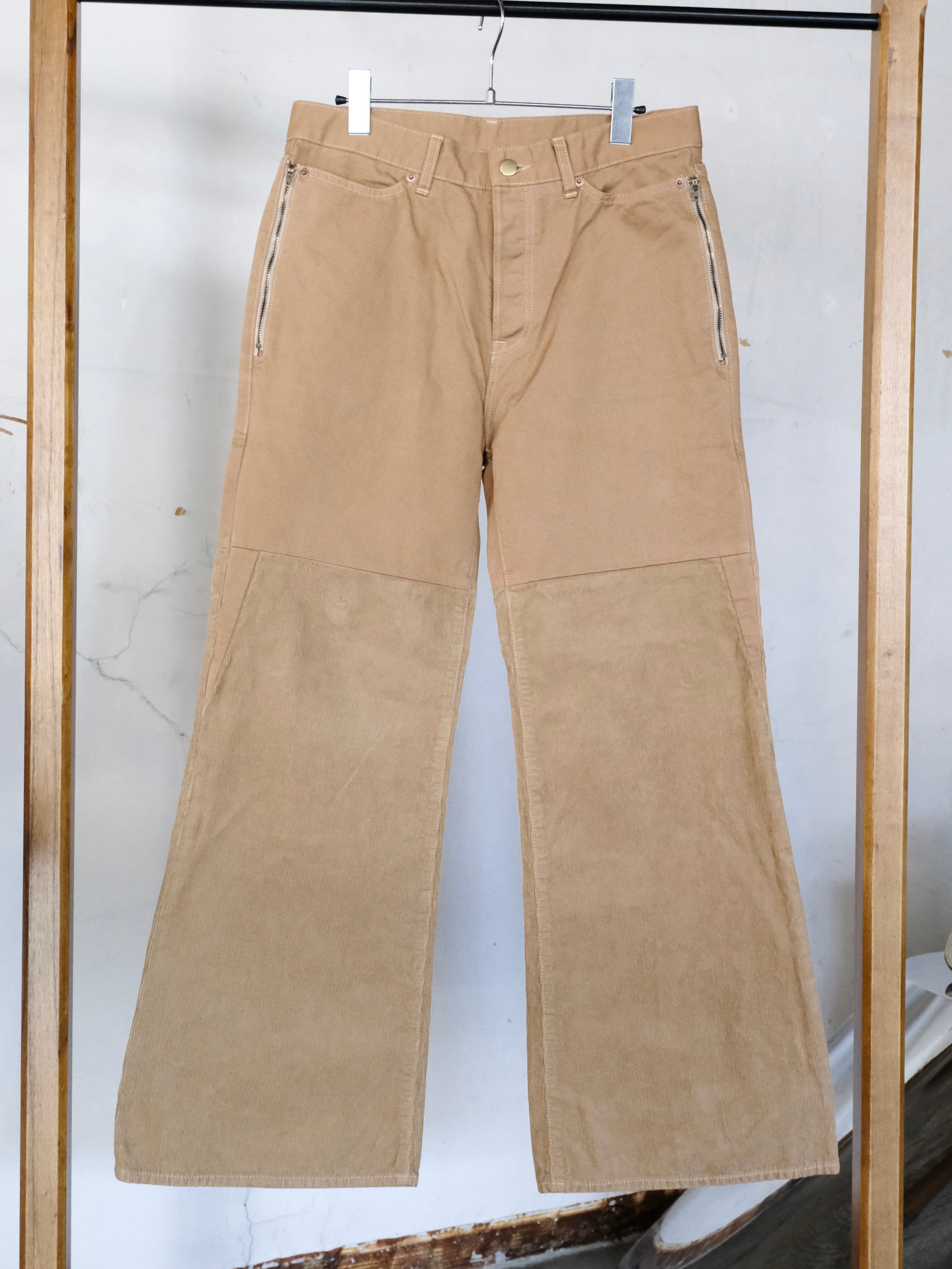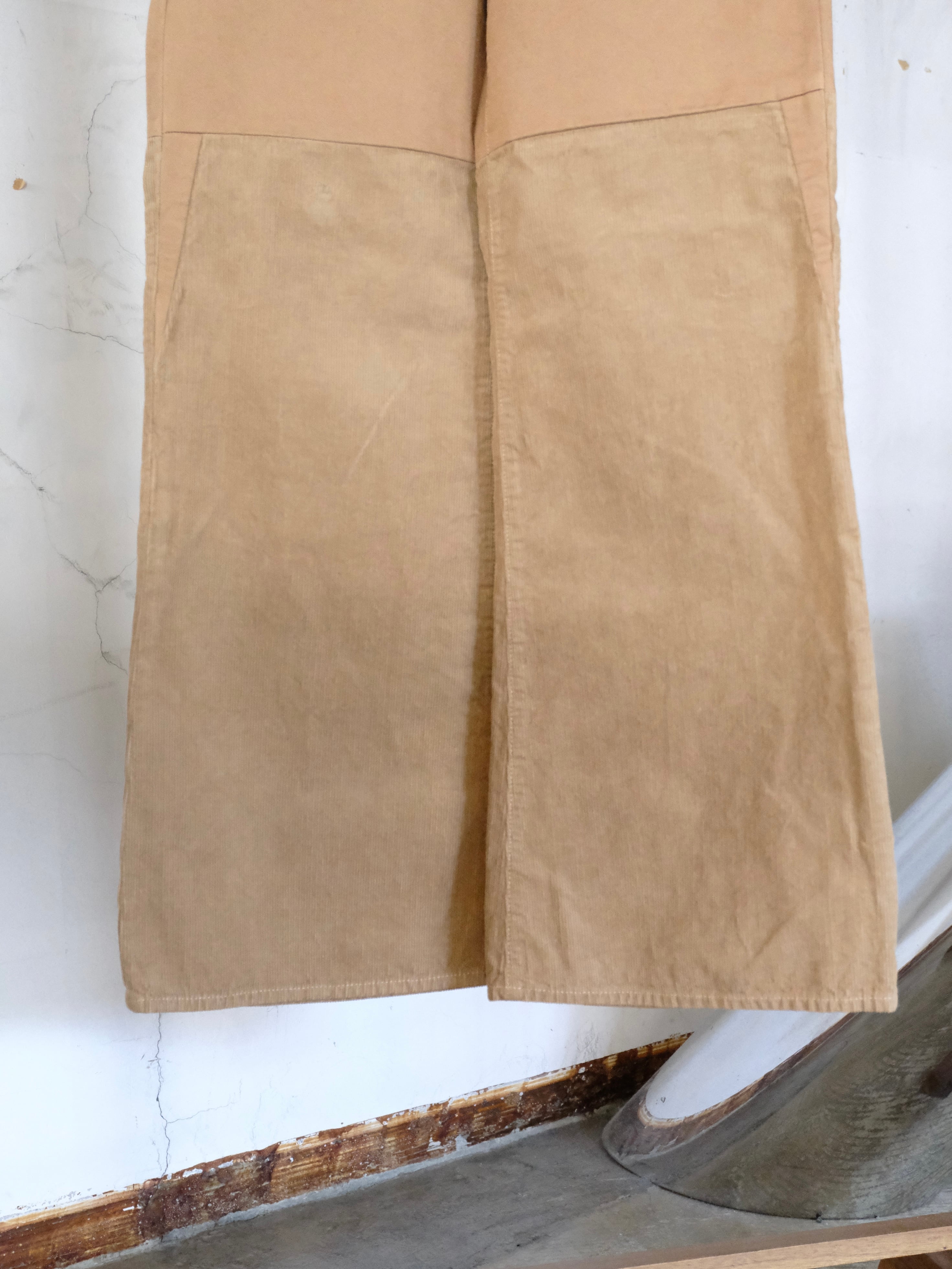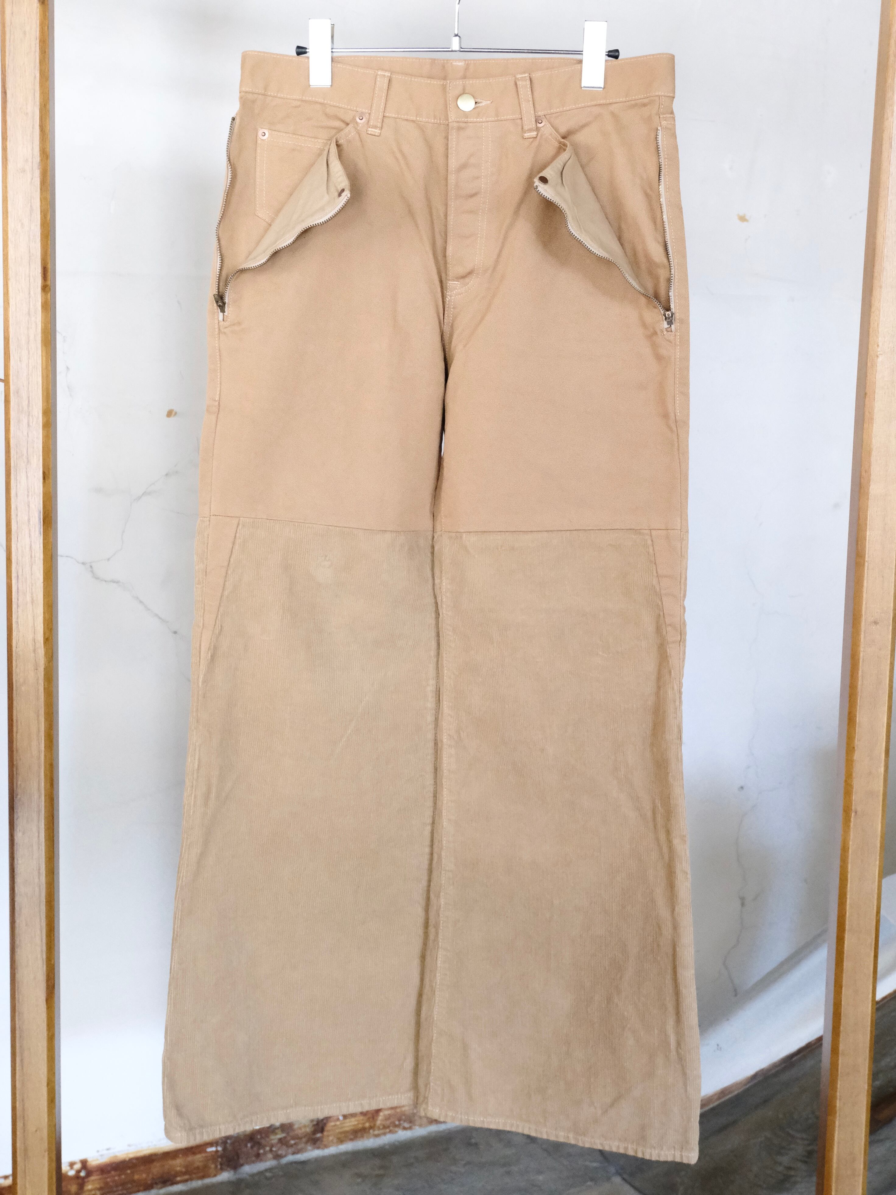 チノとコーデュロイを組み合わせて最後に製品染をすることで日常に溶け込む絶妙な色味に仕上げました。