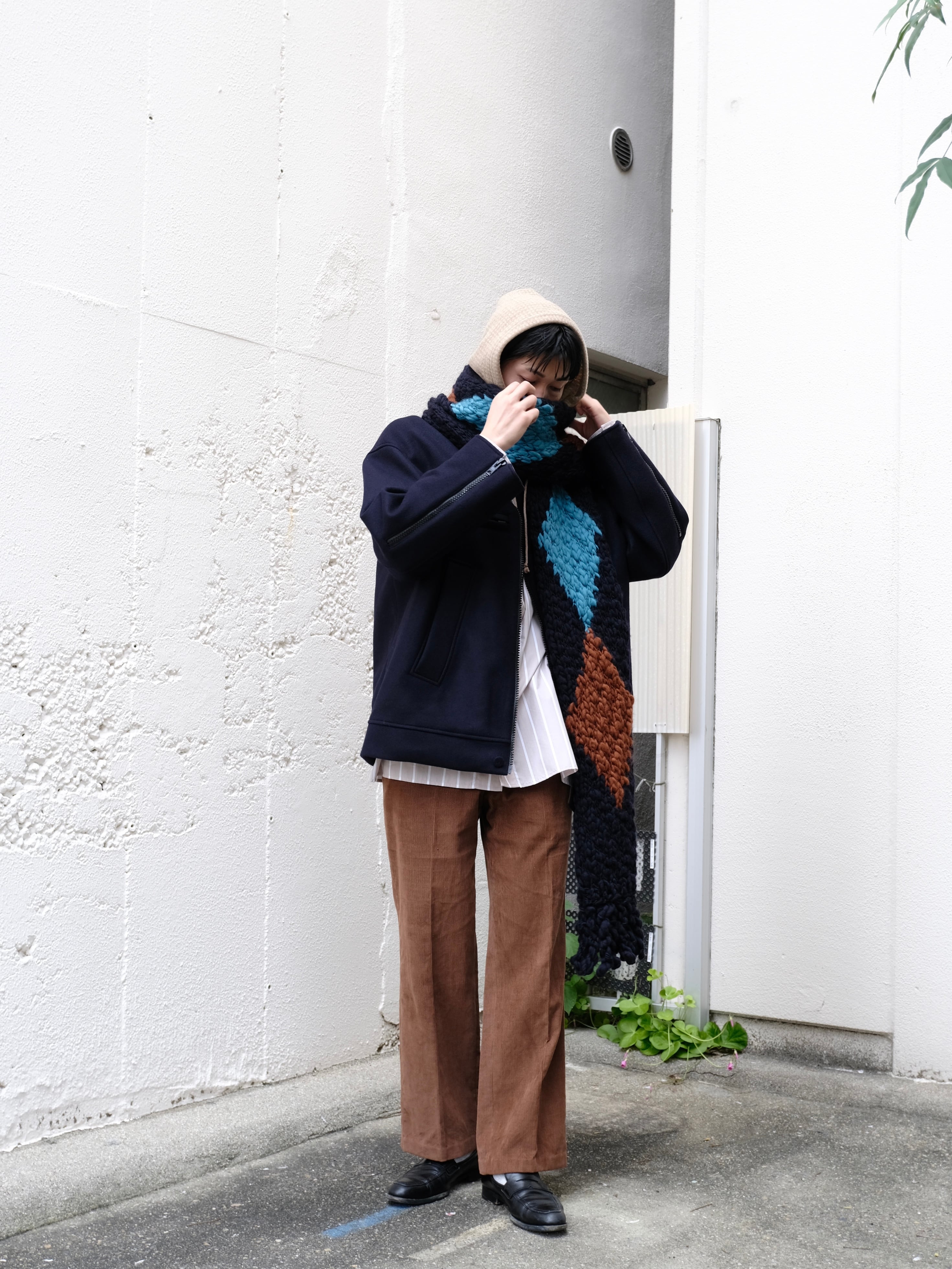 クラシカルなアーガイル柄を現代的に解釈し、丁寧に手編みで仕上げました。
