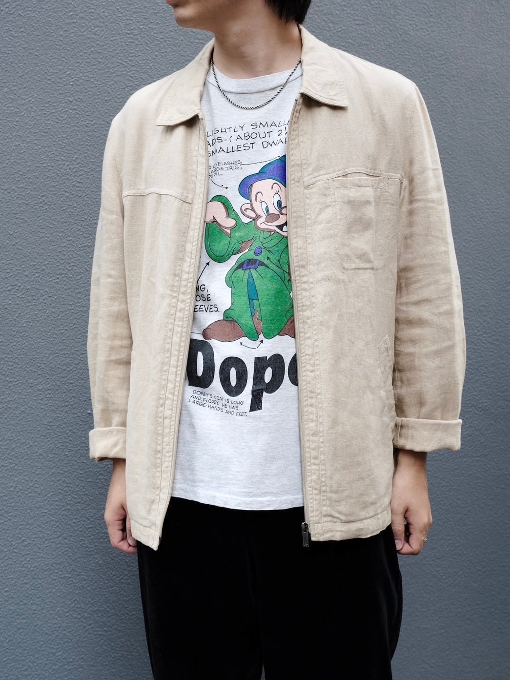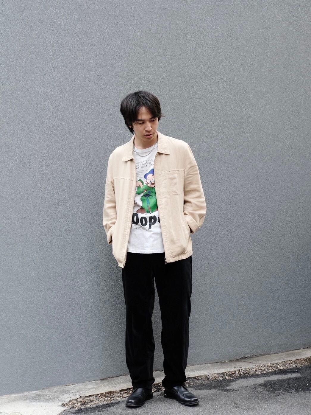 少しゆったりとしたサイズ感でTシャツ以外にもスウェットやニットなどの上からざっくりと羽織っていただけます。