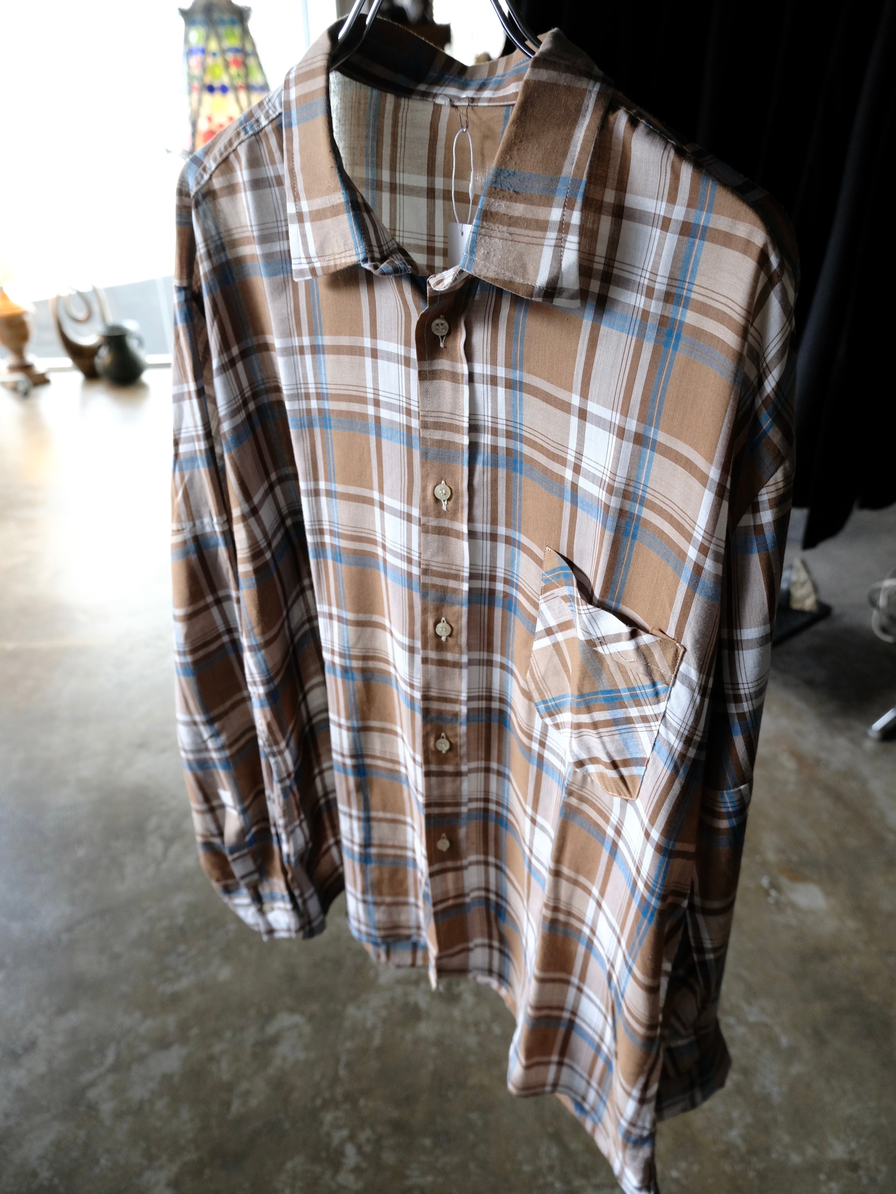 ブラウンベースの柔らかな色味なのでTシャツなどの上からザックリと羽織ってご着用いただくのもおすすめです。