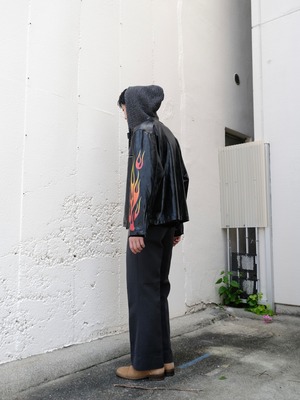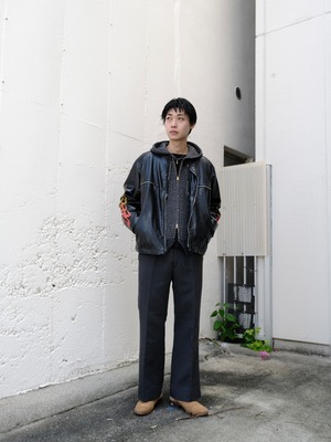 ゆったりとしたサイズ感の為、スウェットやニットなど少し厚手のアイテムの上からでもざっくりと羽織って着用していただけます。