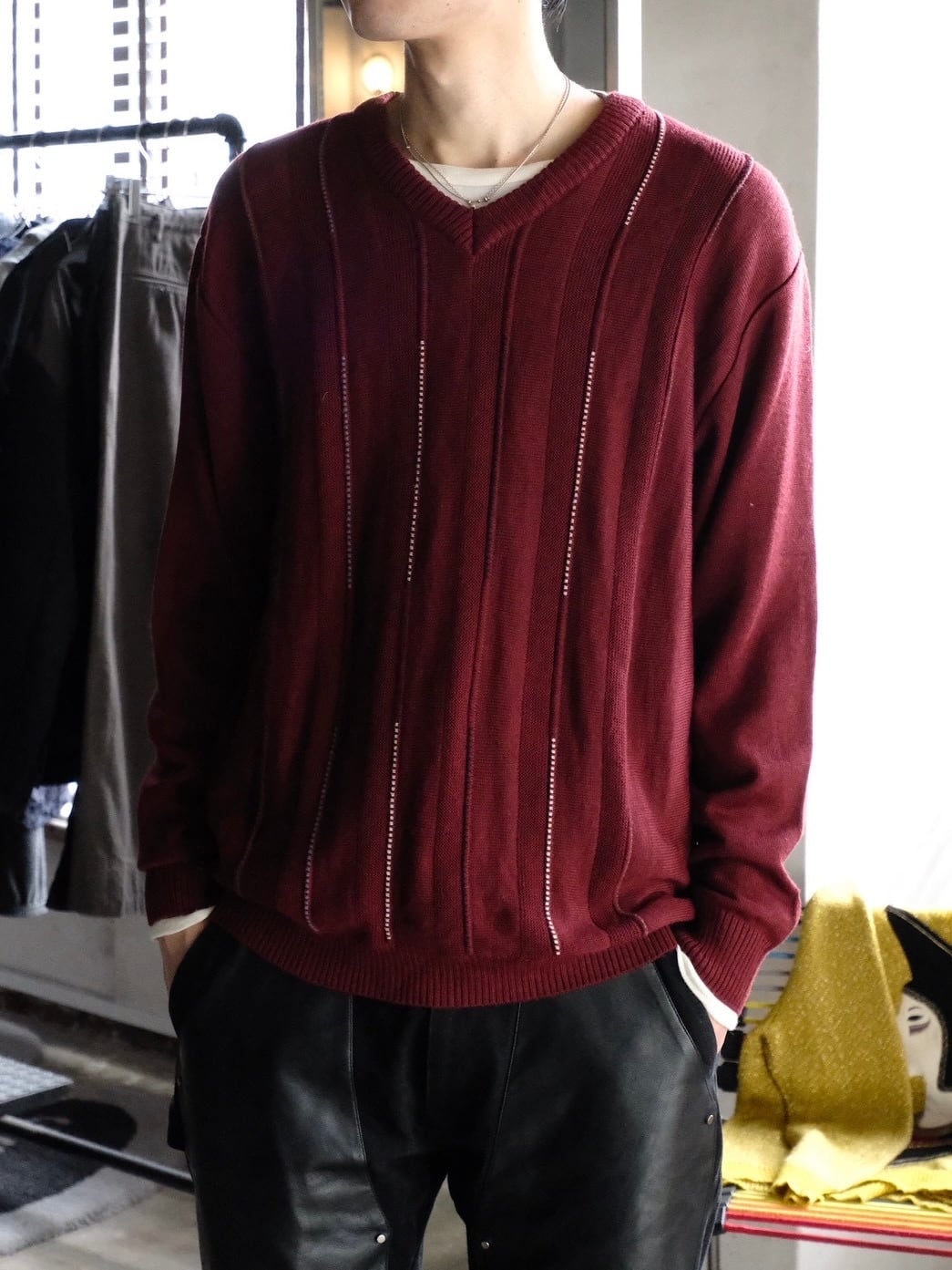 浅めVネックのニットです。