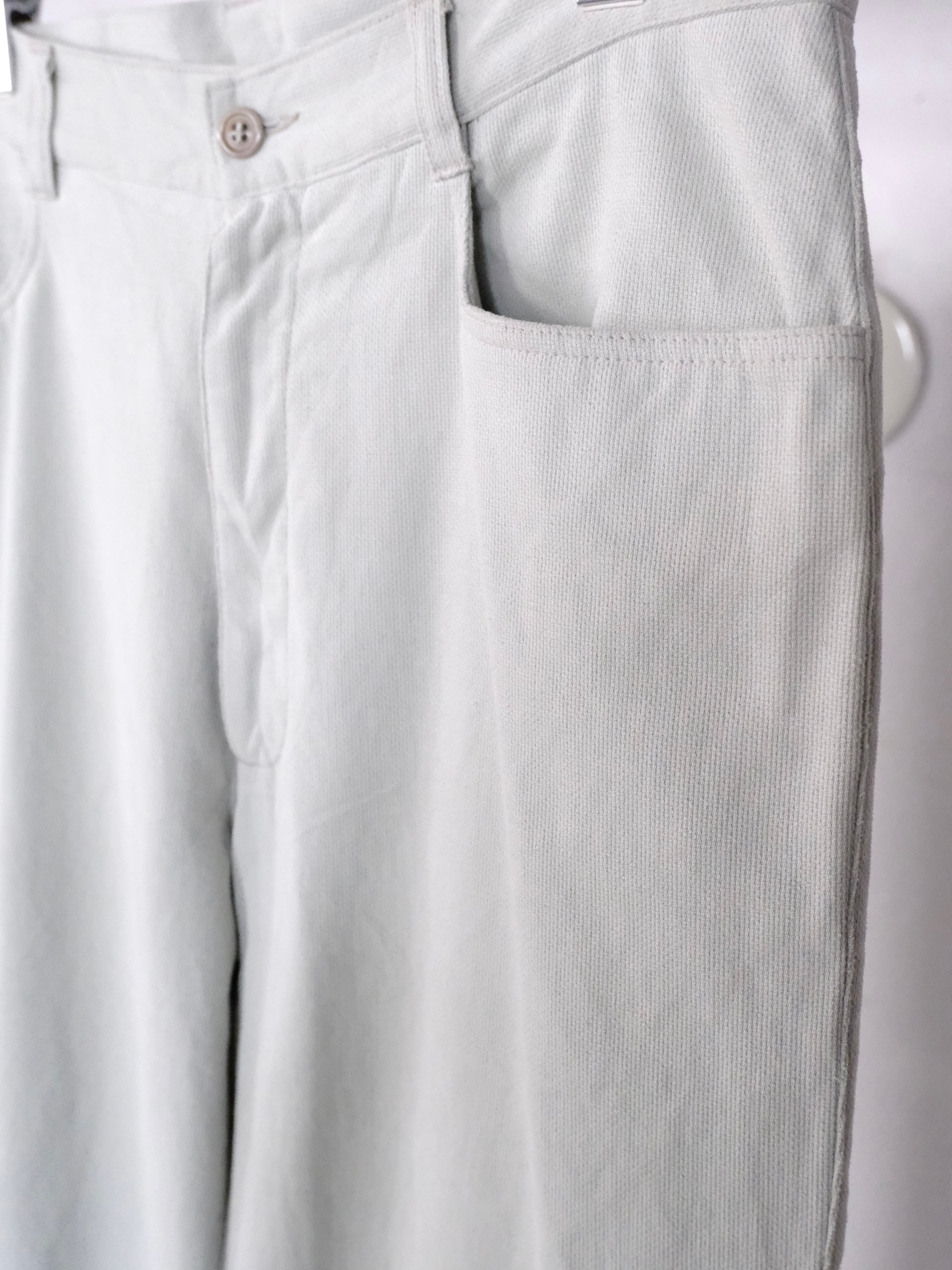 一見するとチノパンツのようですが、若干毛足感のあるこちら。
