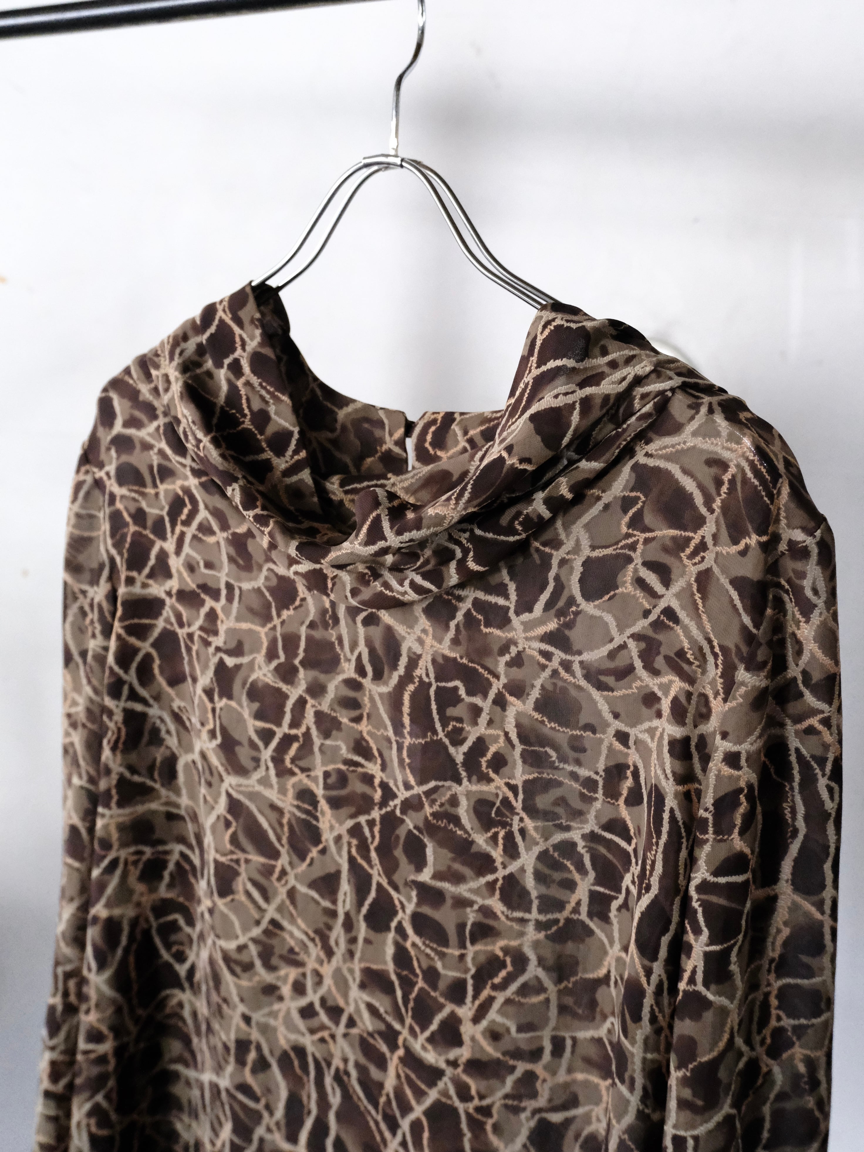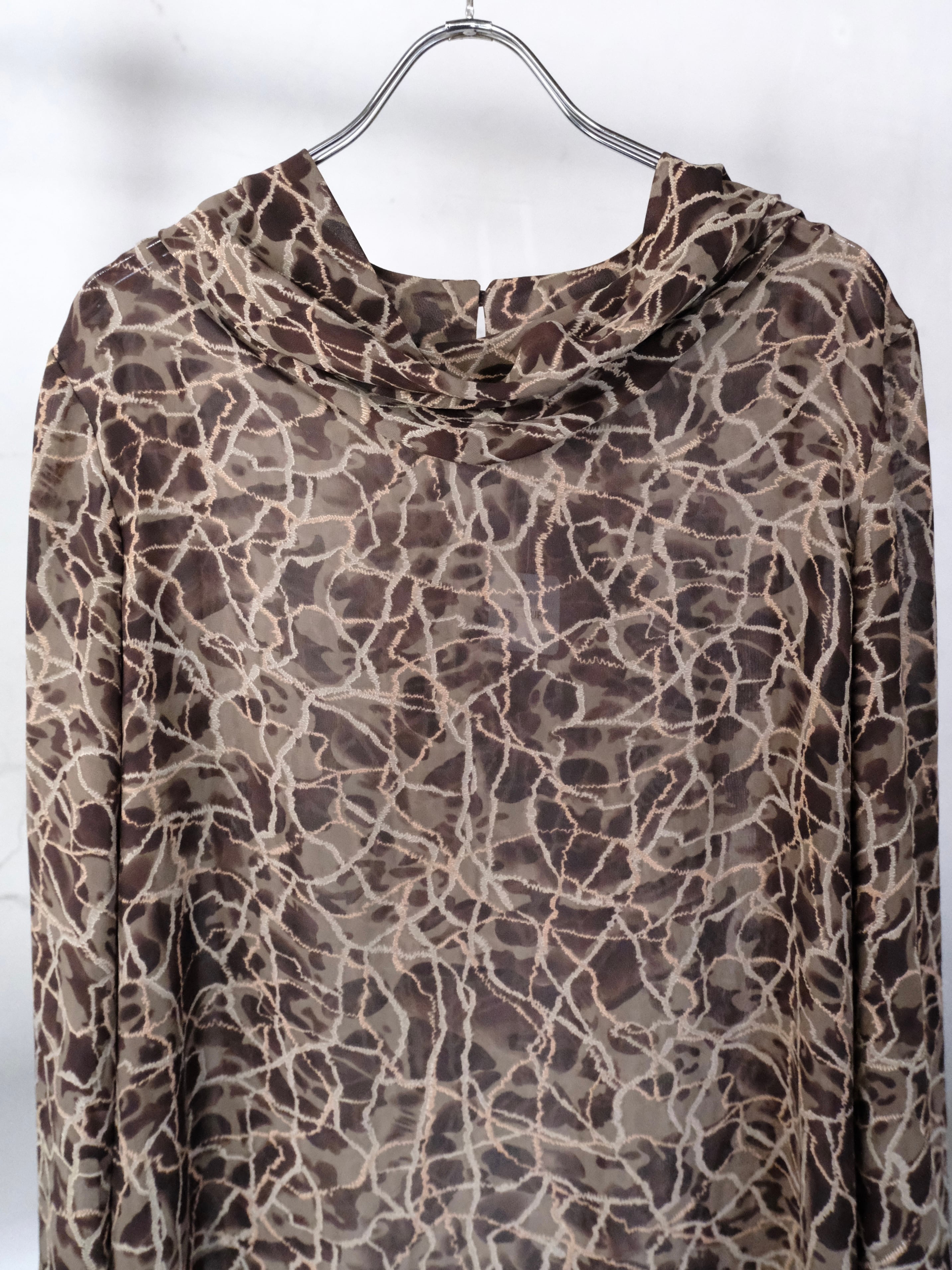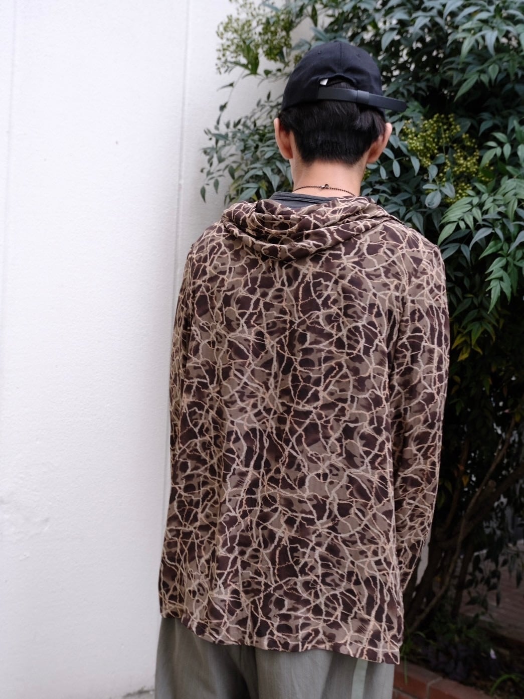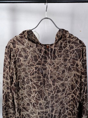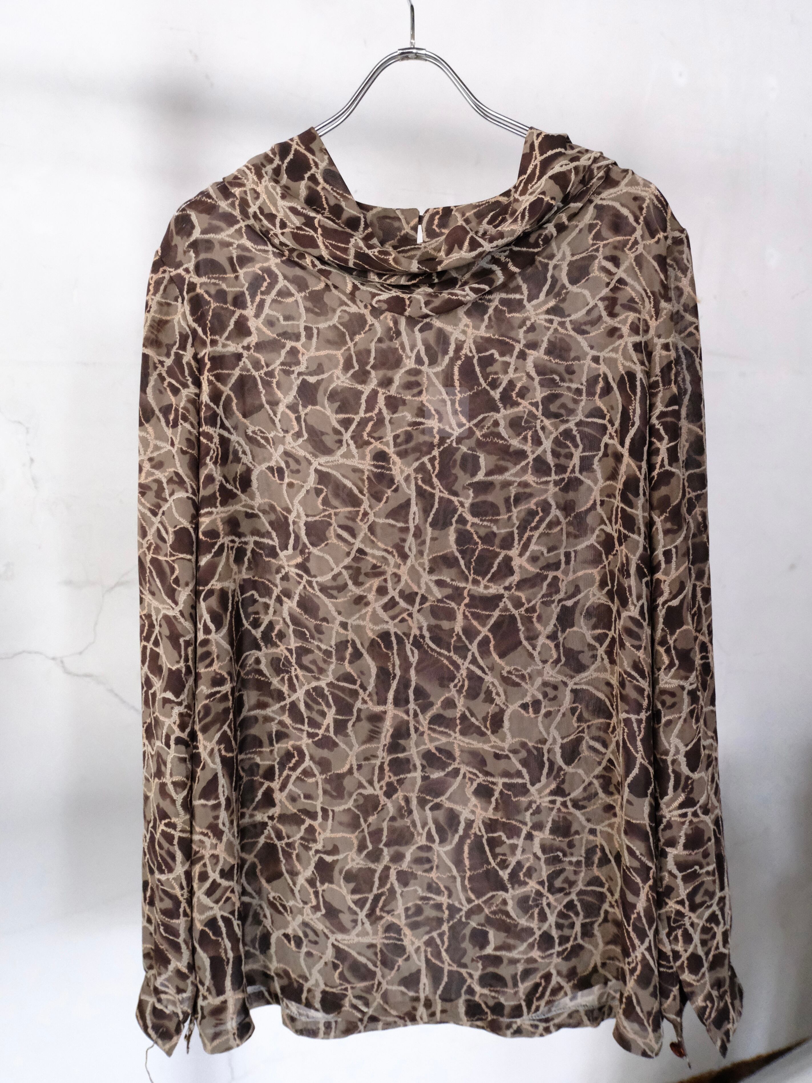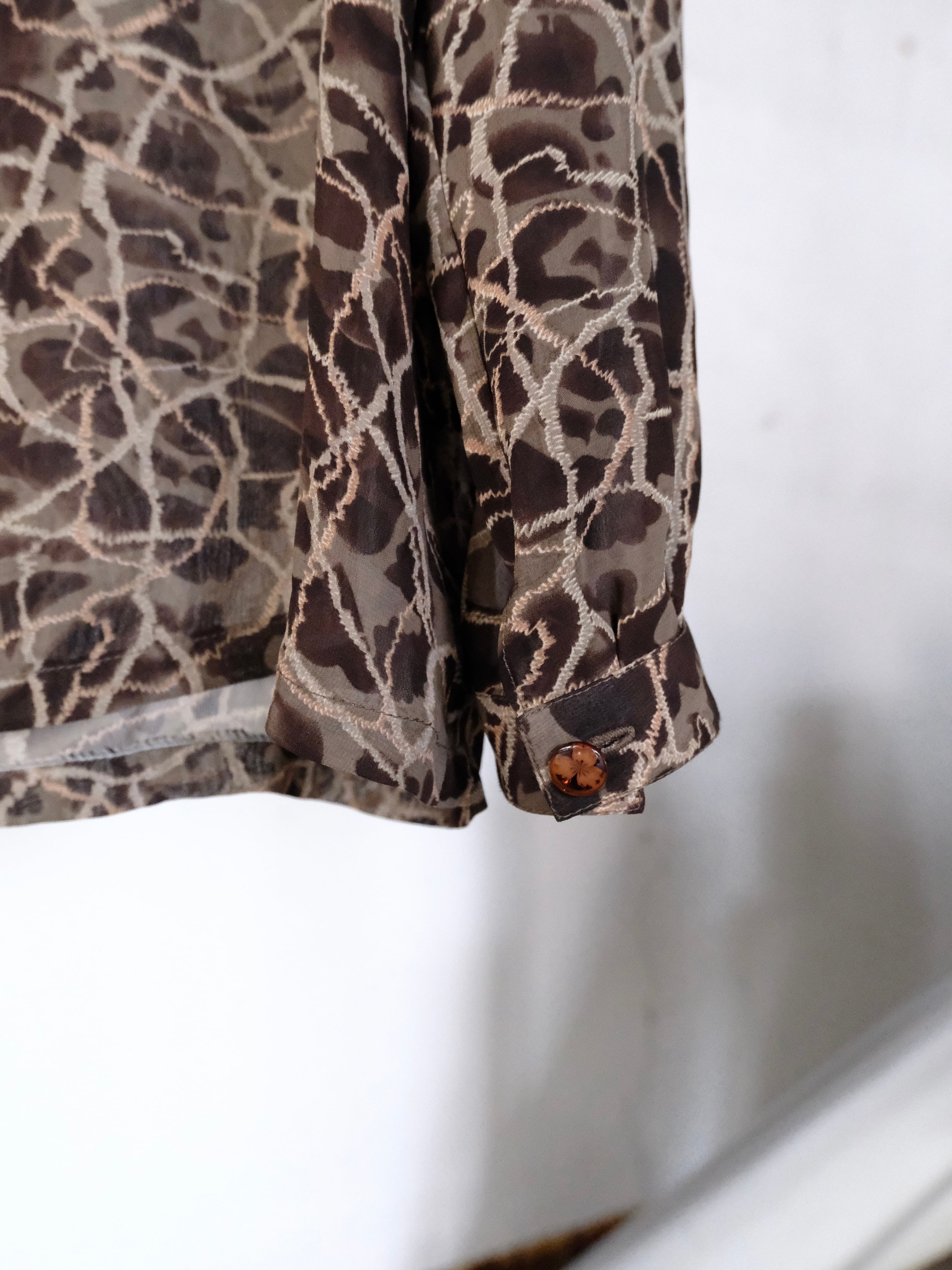 若干の透け感がありながら総柄なので透けすぎる事なくご着用いただけます。