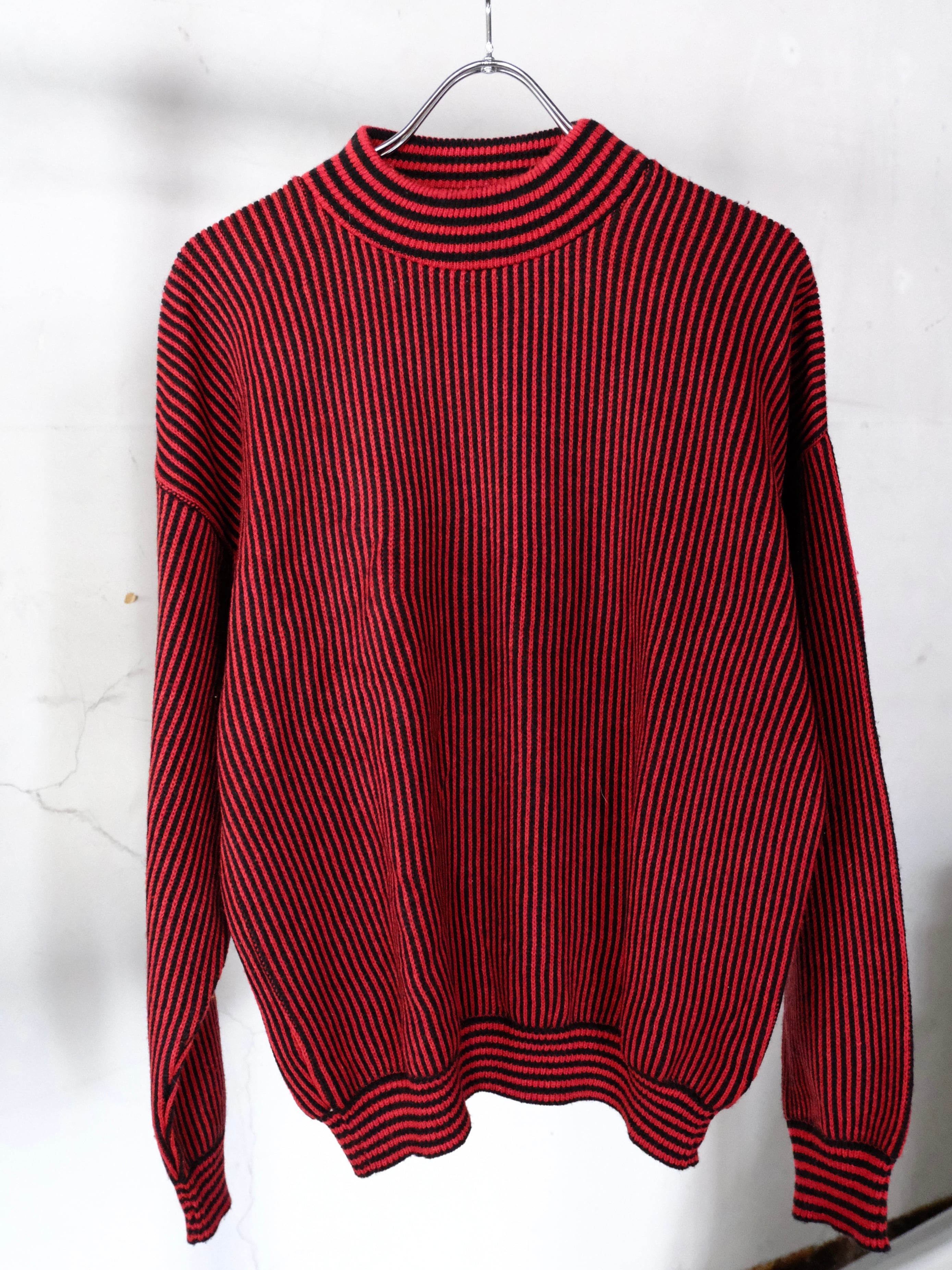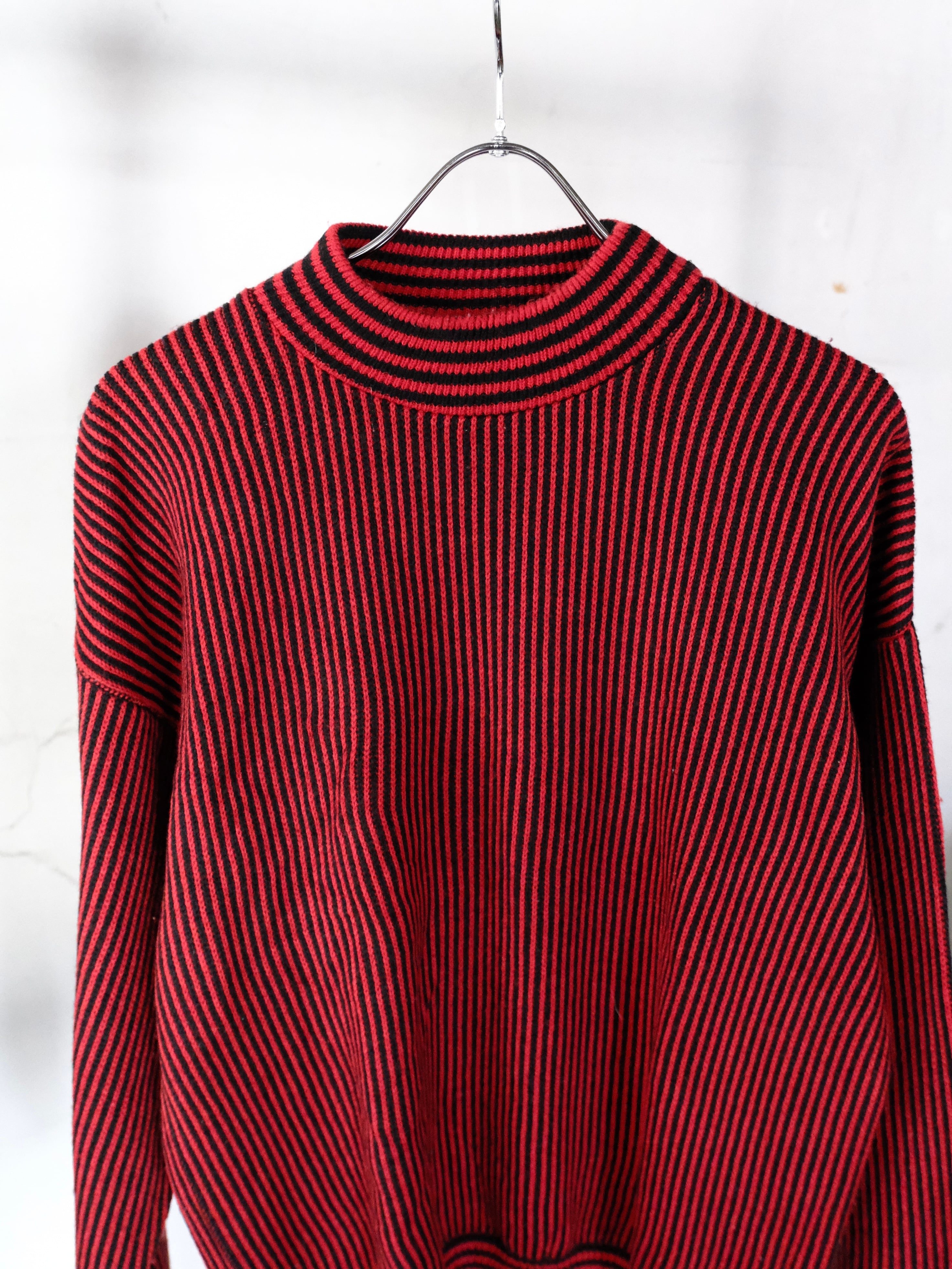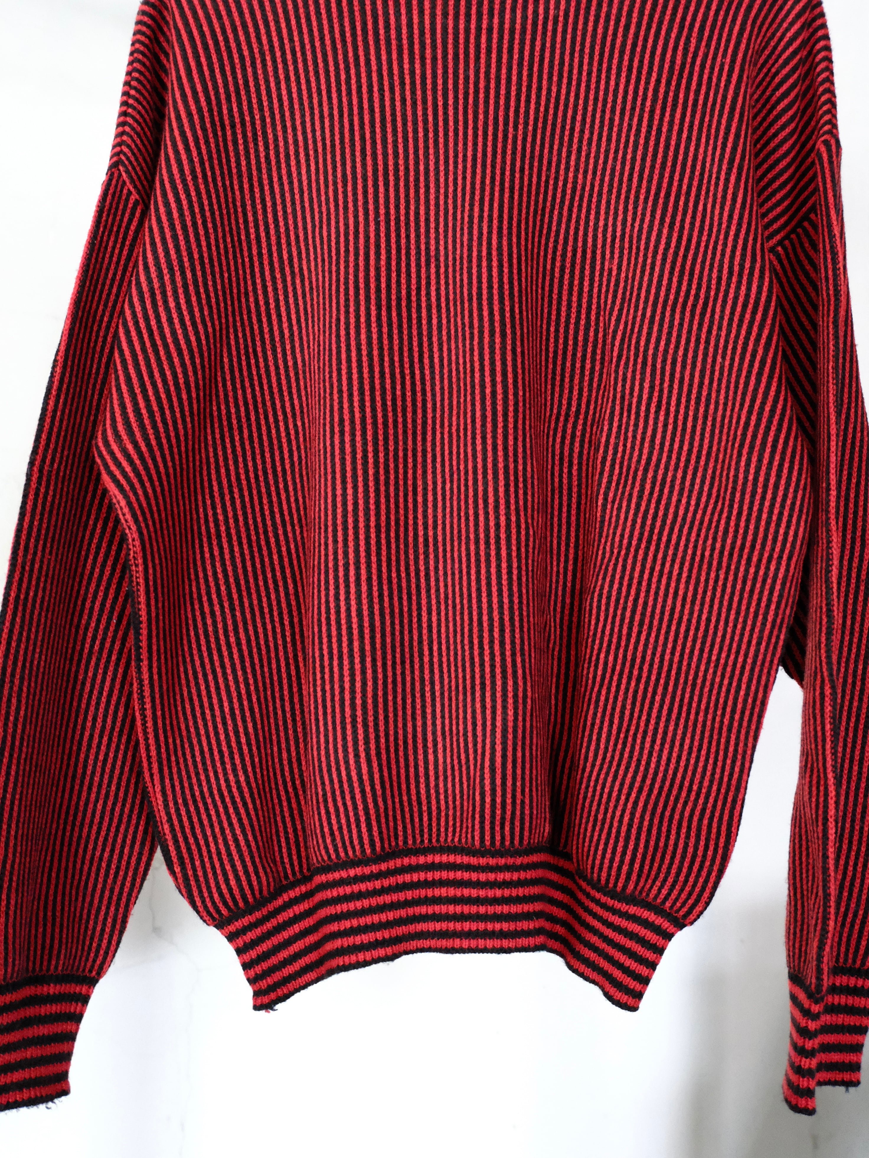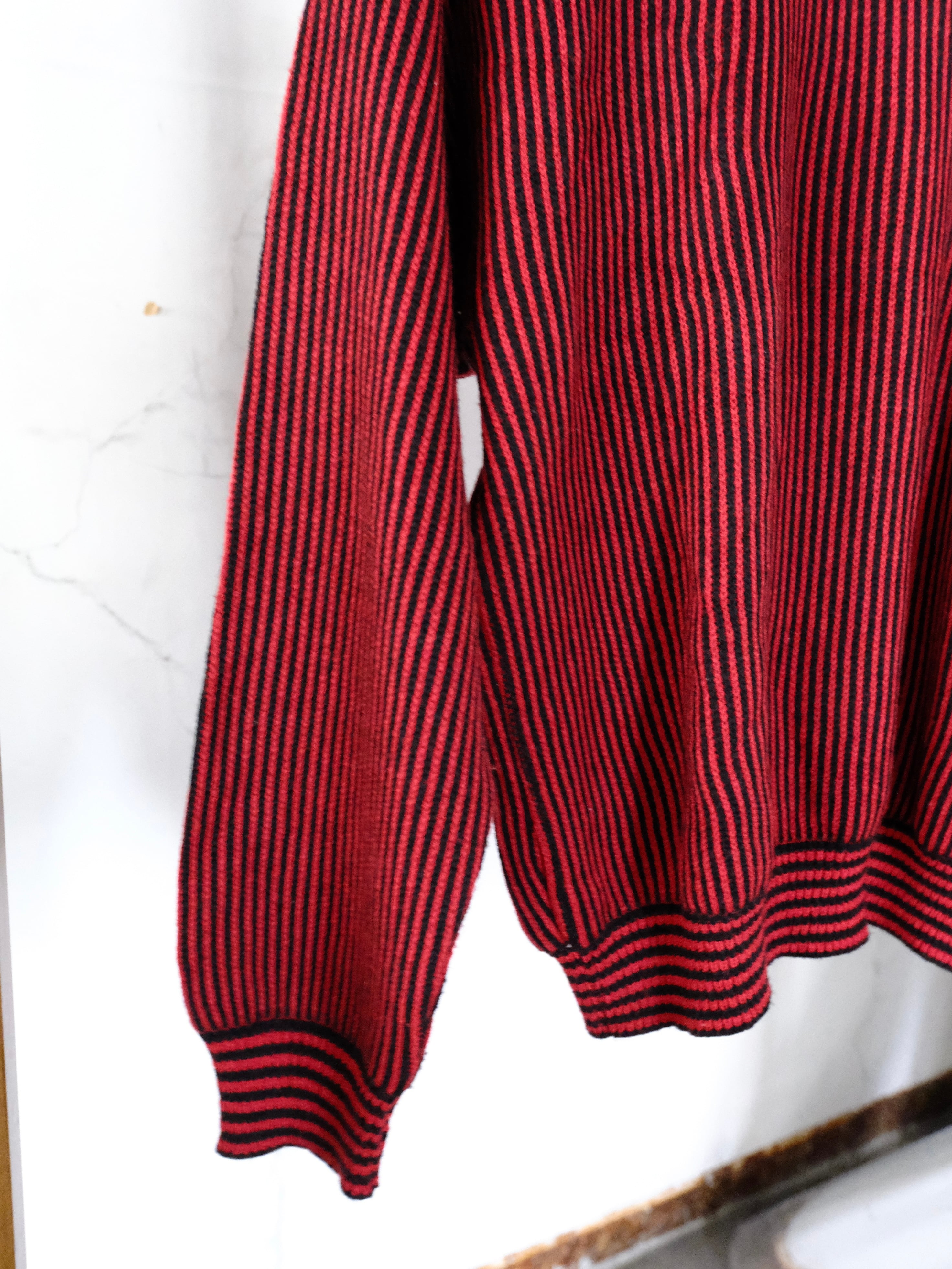 レッド×ブラックのストライプ柄ニット