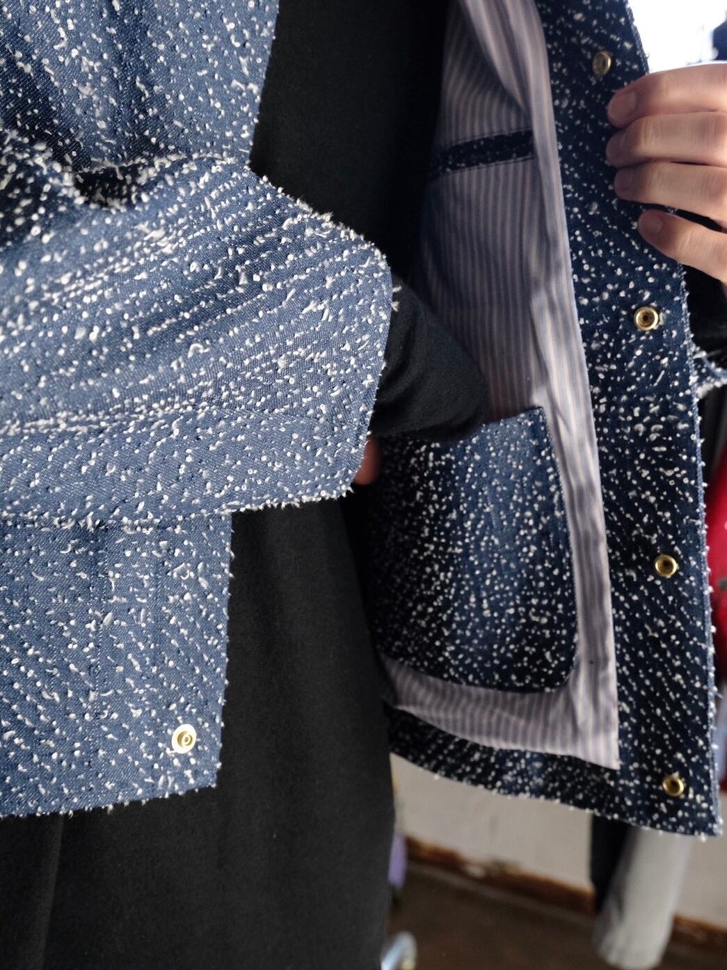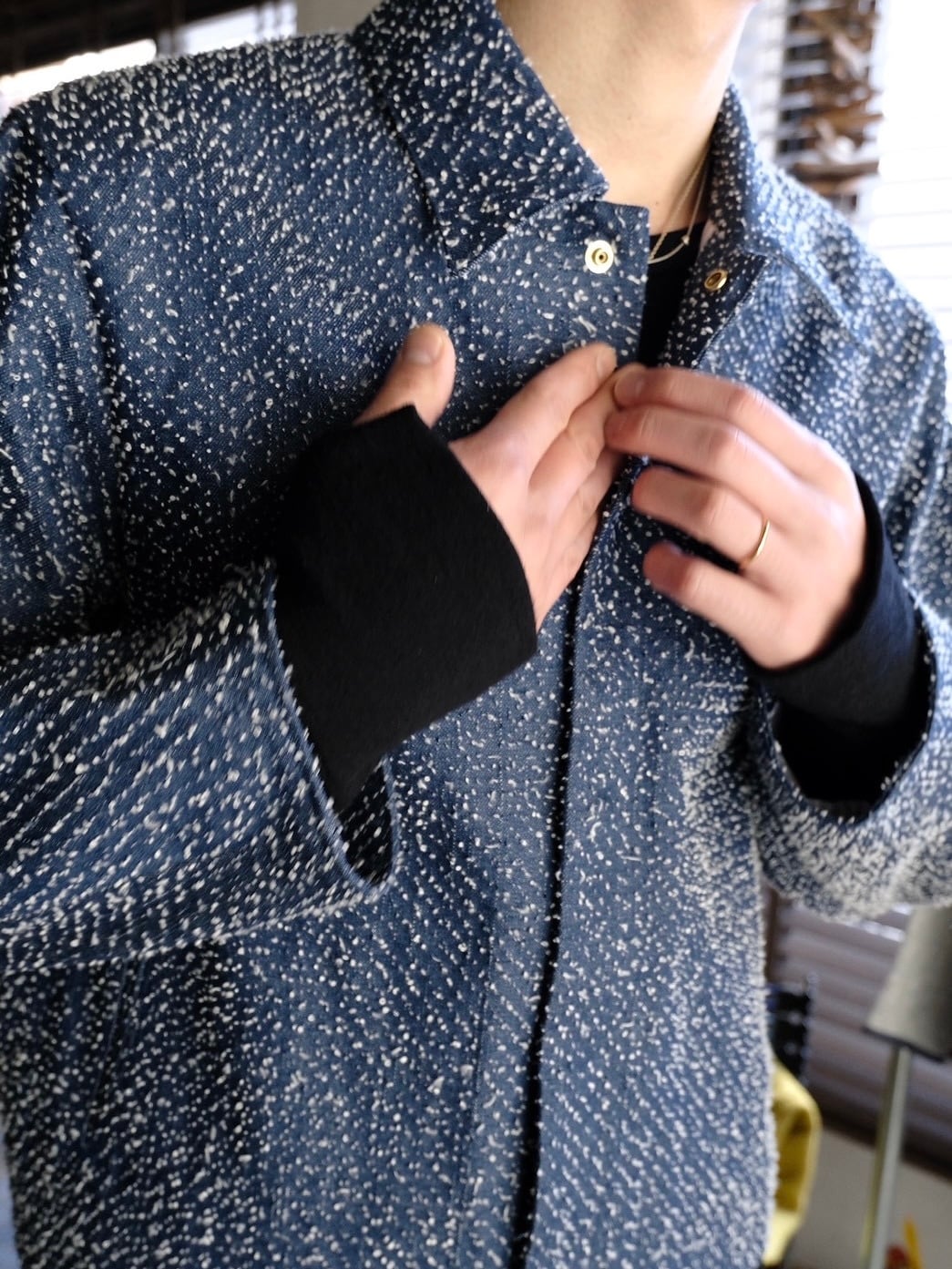 Gジャンのような雰囲気のシルエットを作り表面に凹凸をできるだけ無くした為、内側に必要なポケットを付属させています。