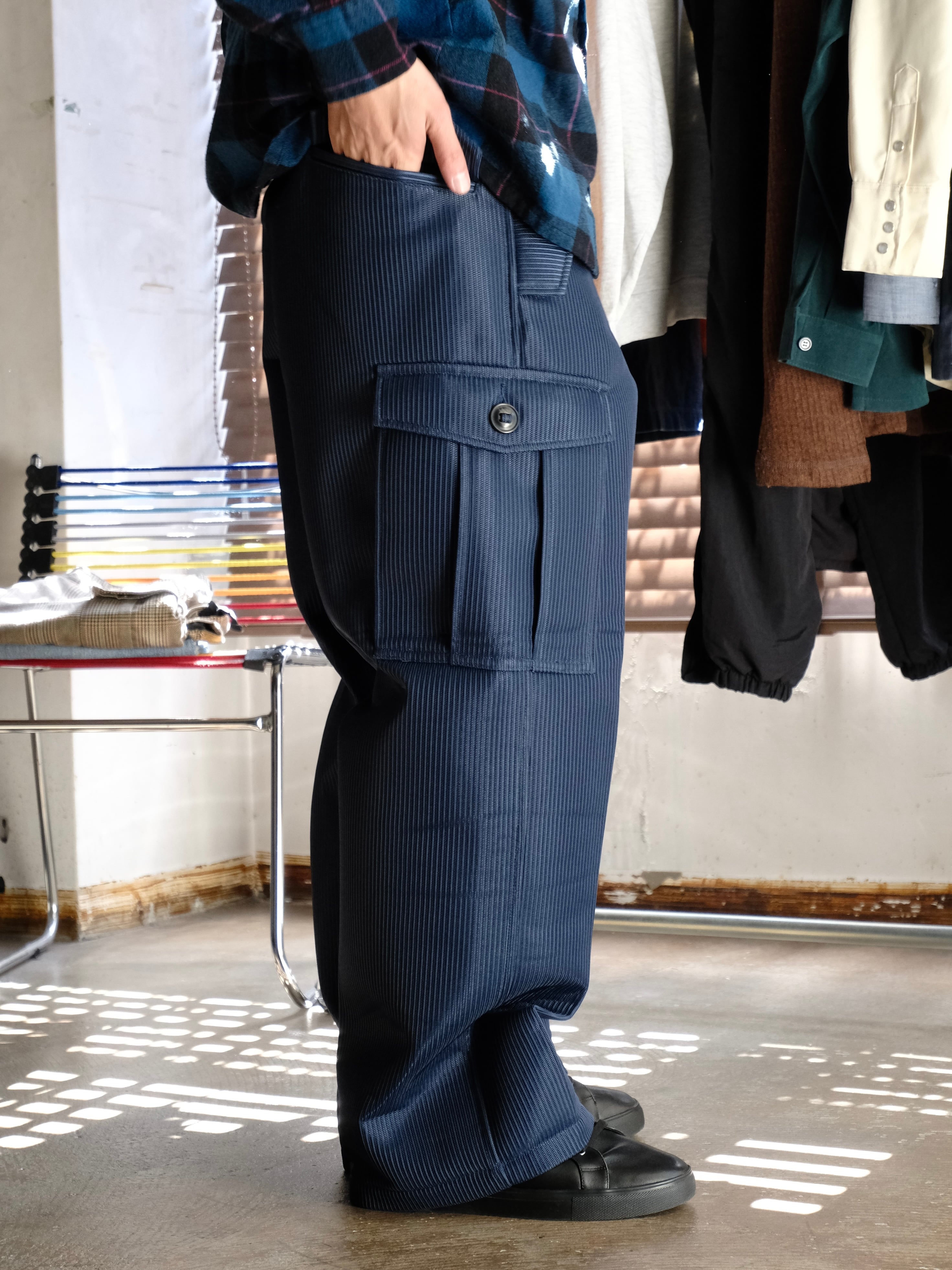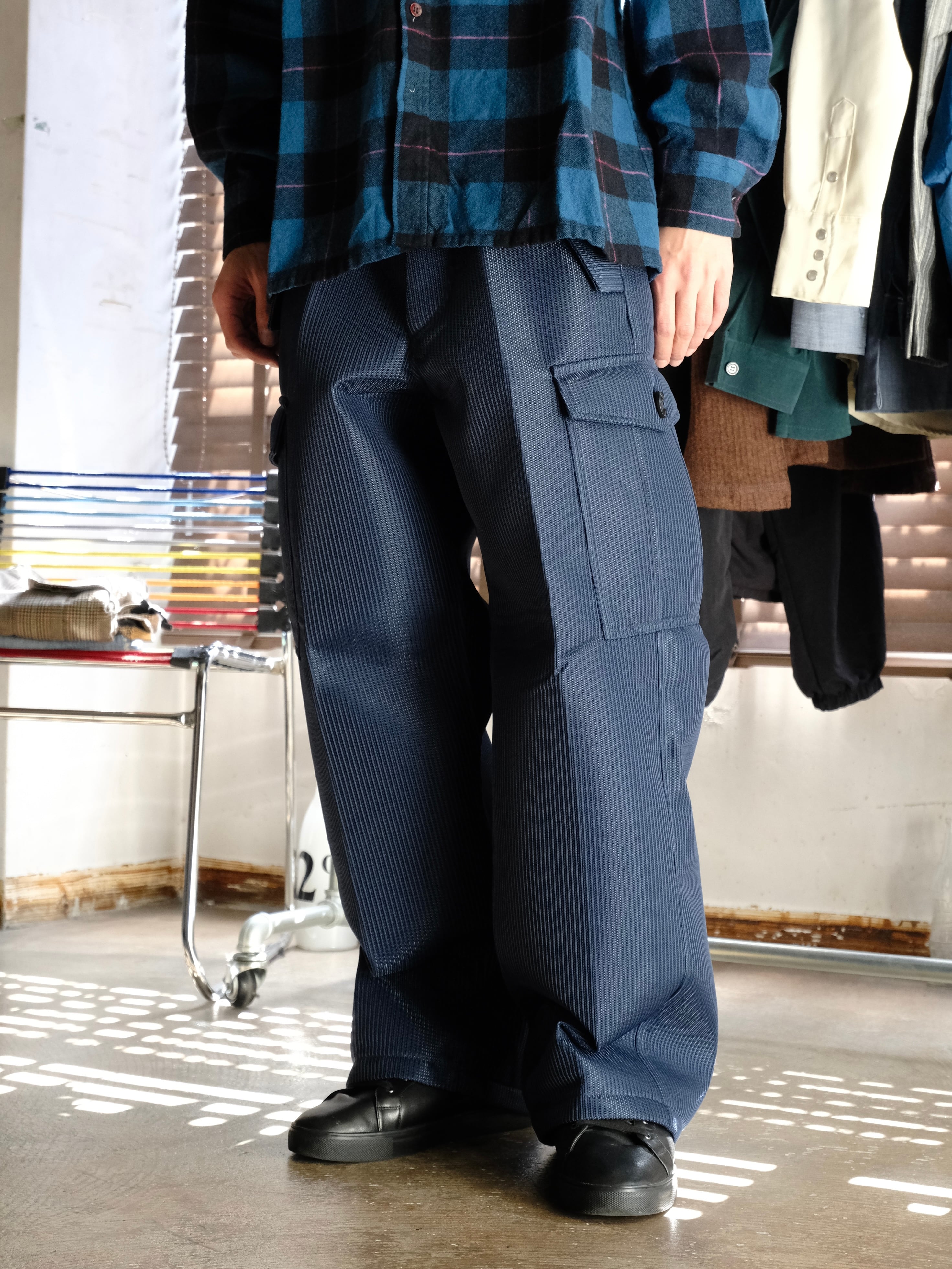 ハリのあるストレートシルエットにサイドシームをフロントに移動し、バックポケットがフロントから見える仕様が特徴です。