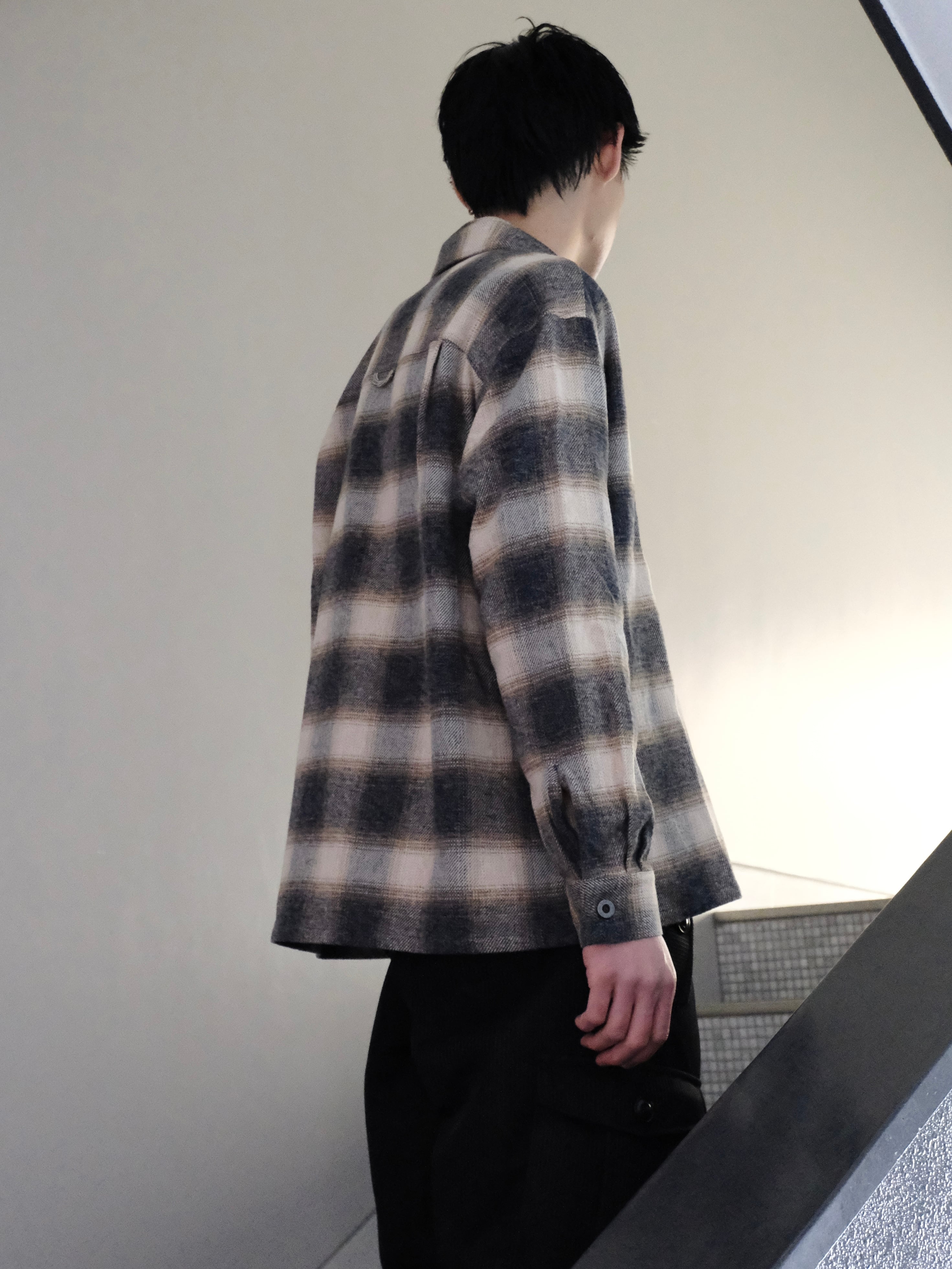 コットンツイードのシャドーチェック柄のLaid.Bらしさあるシャツです。