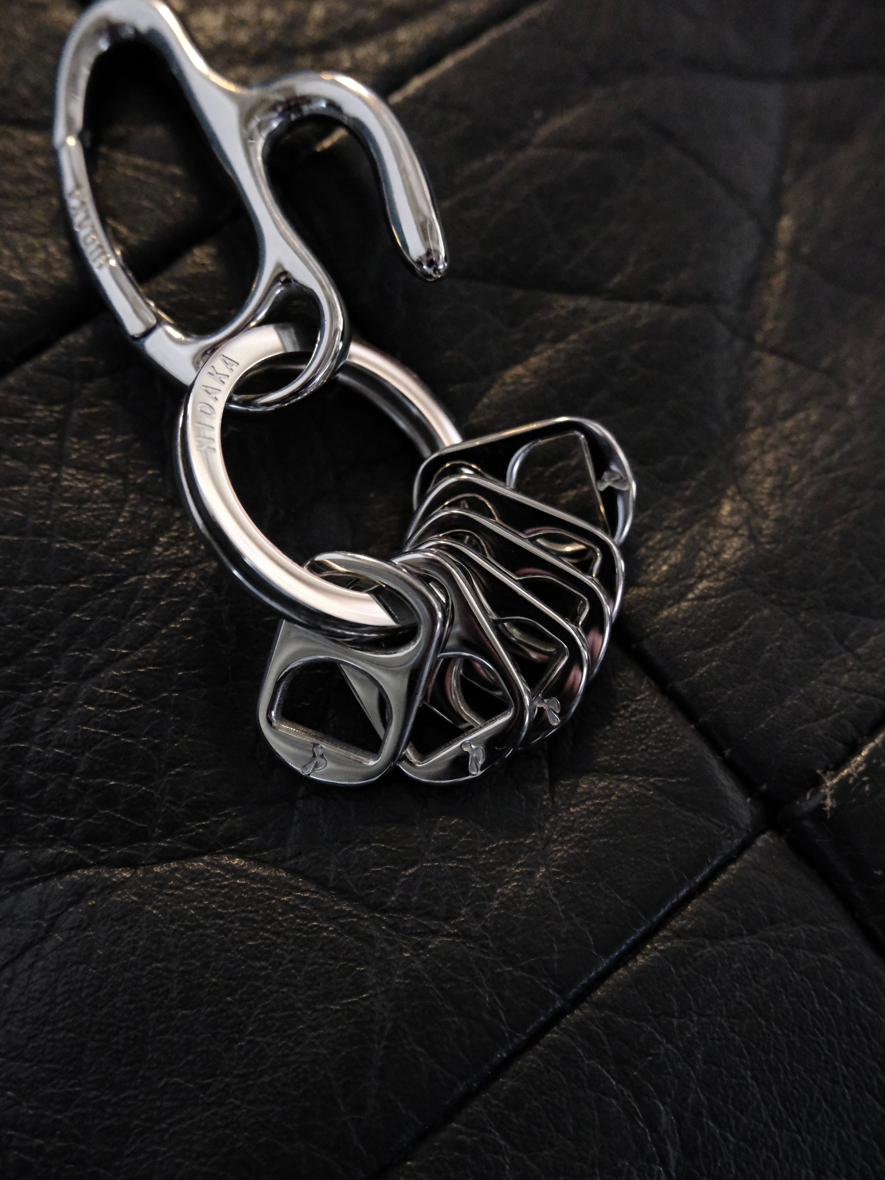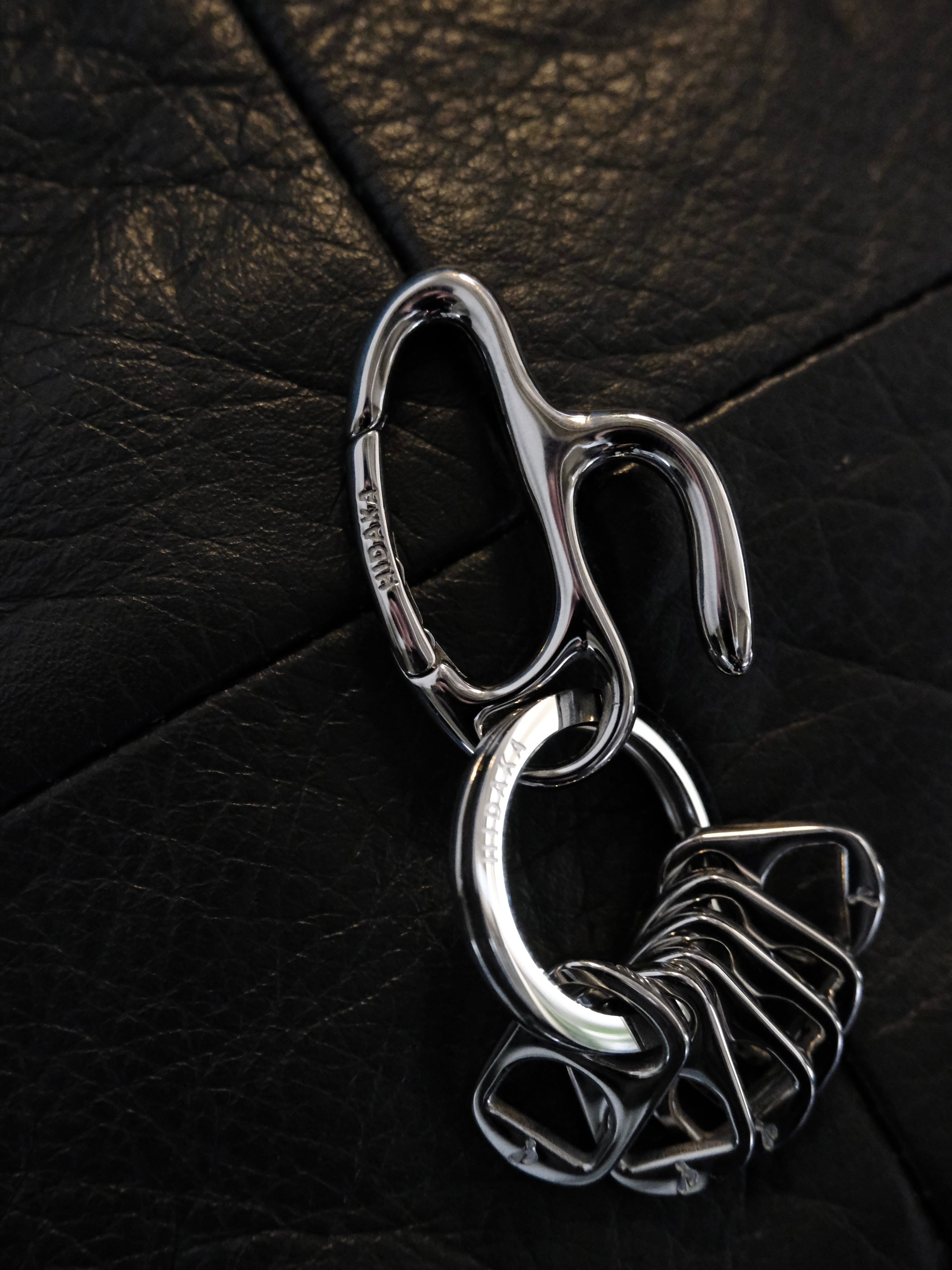 HIDAKAオリジナルの小文字の『h』を模ったカラビナ。