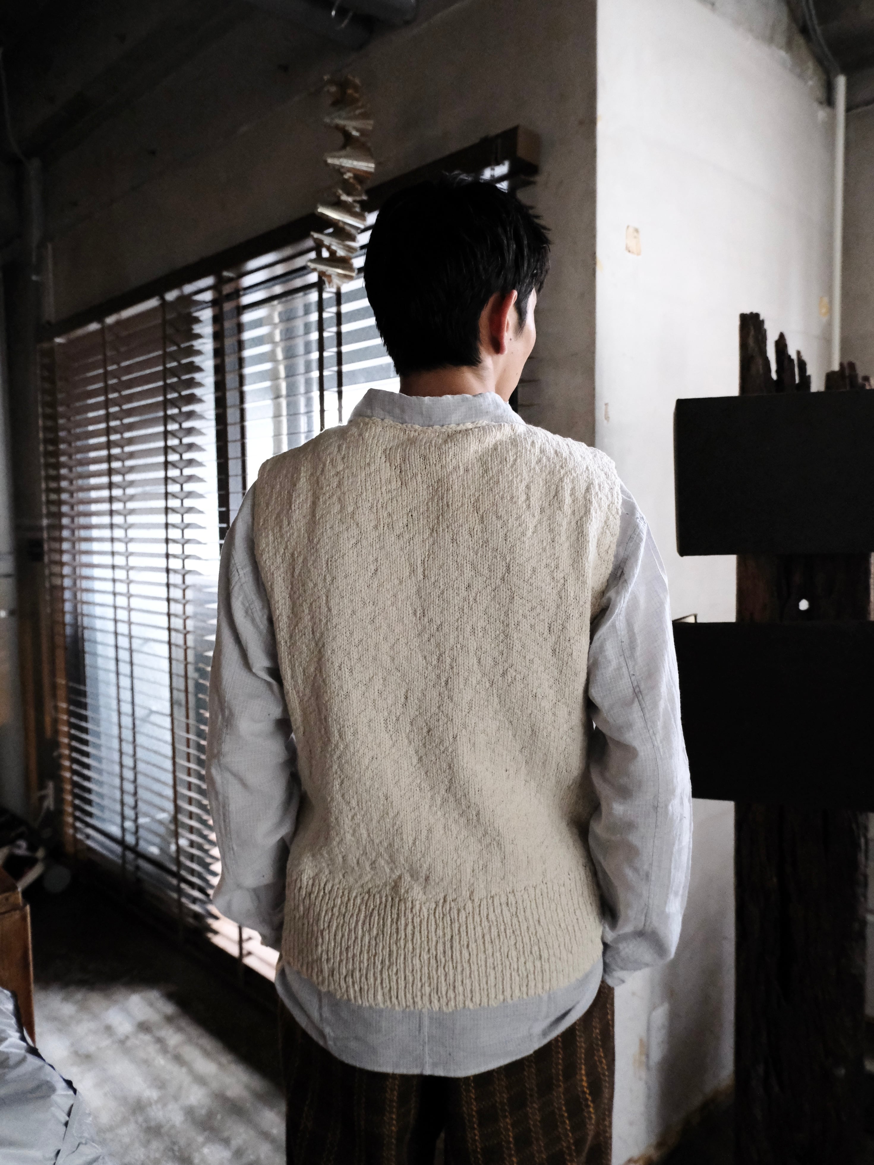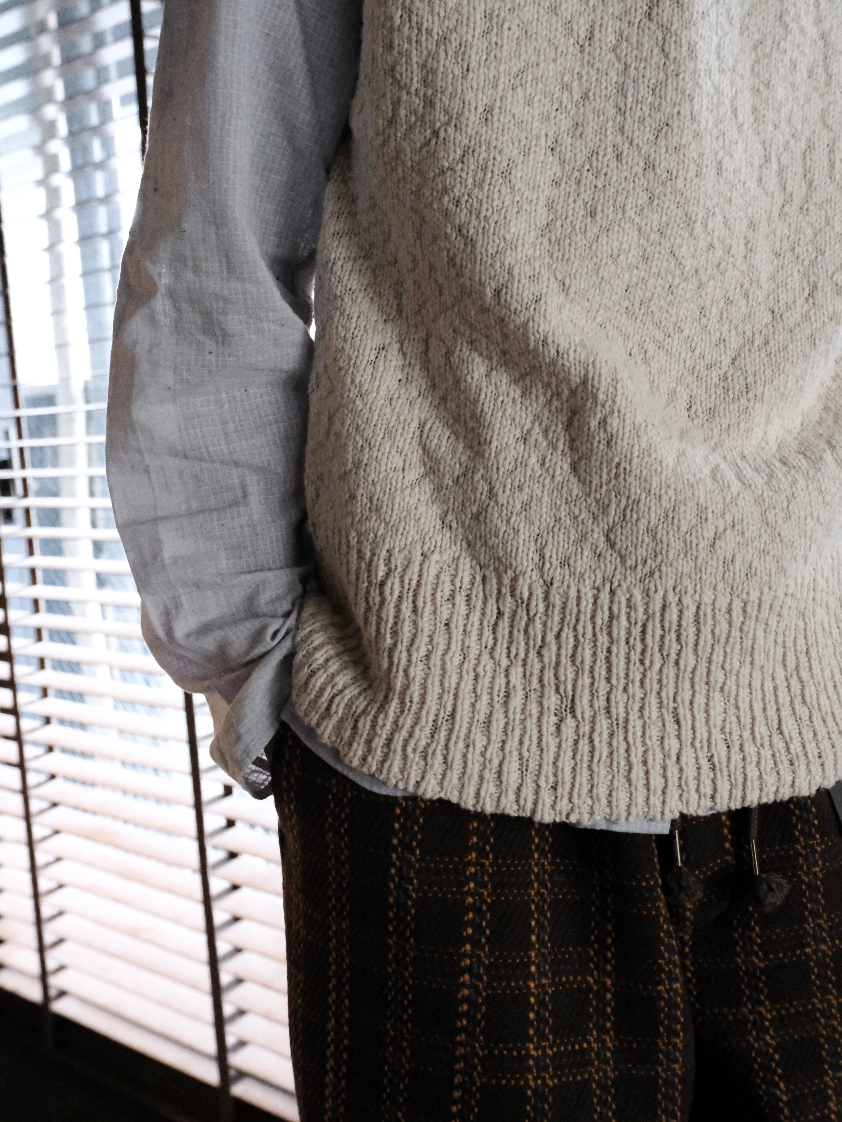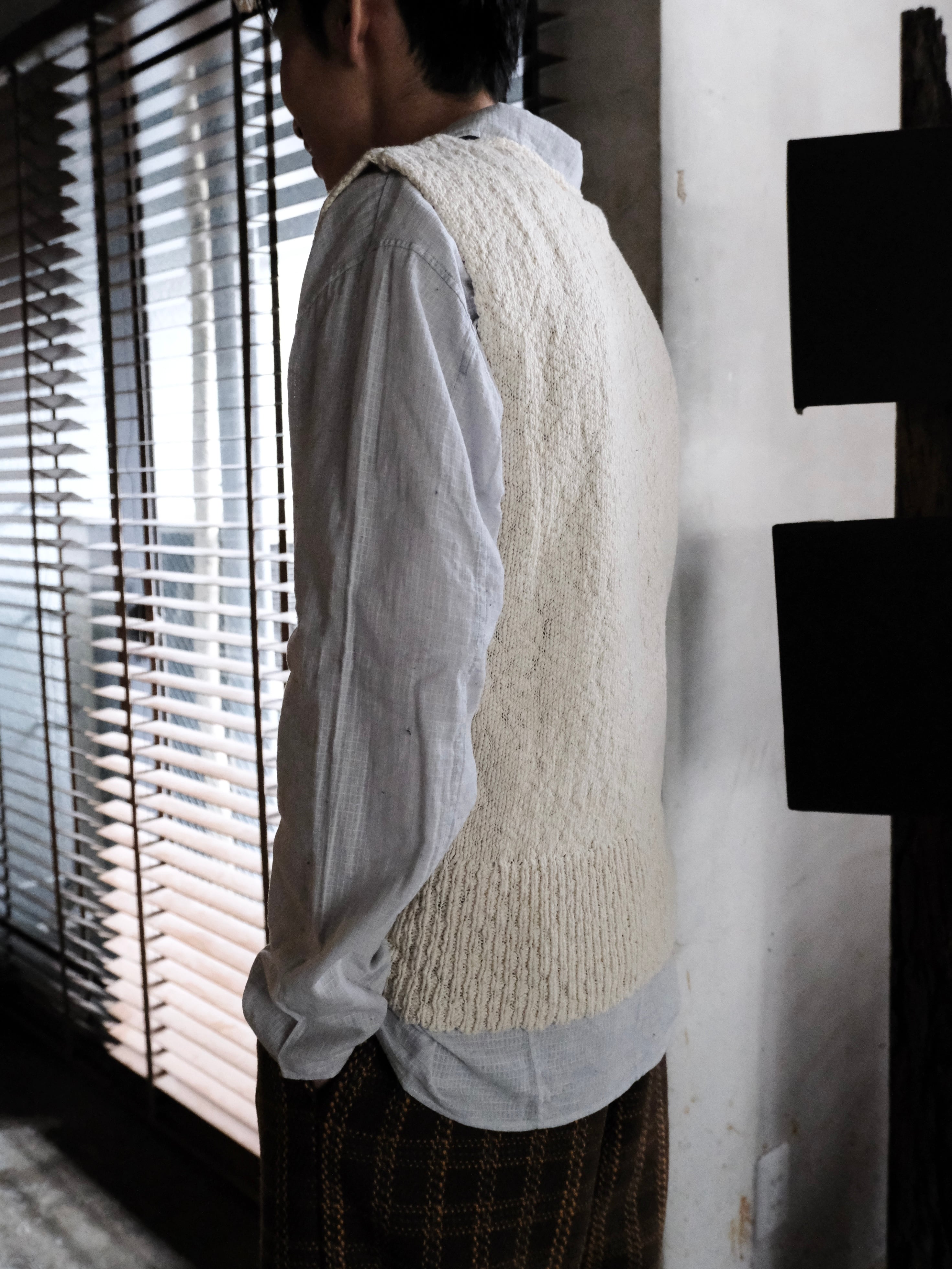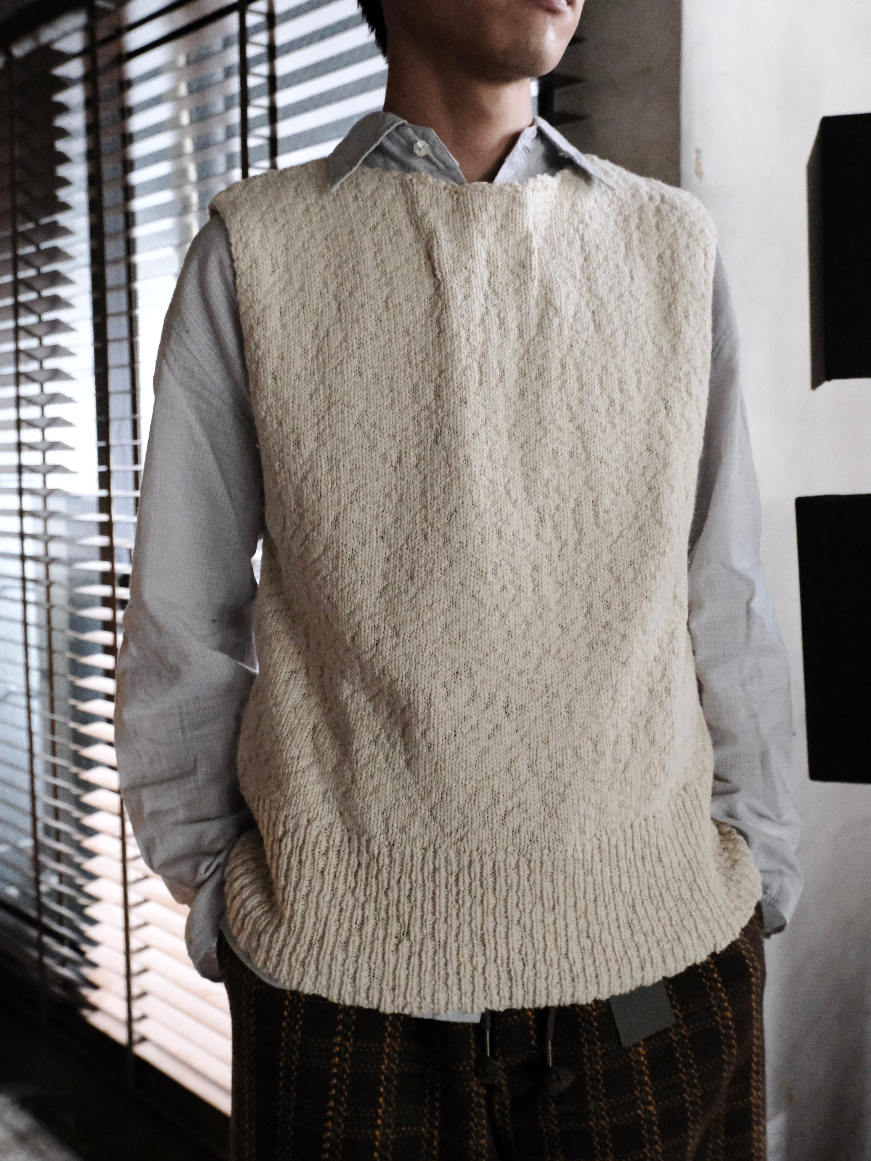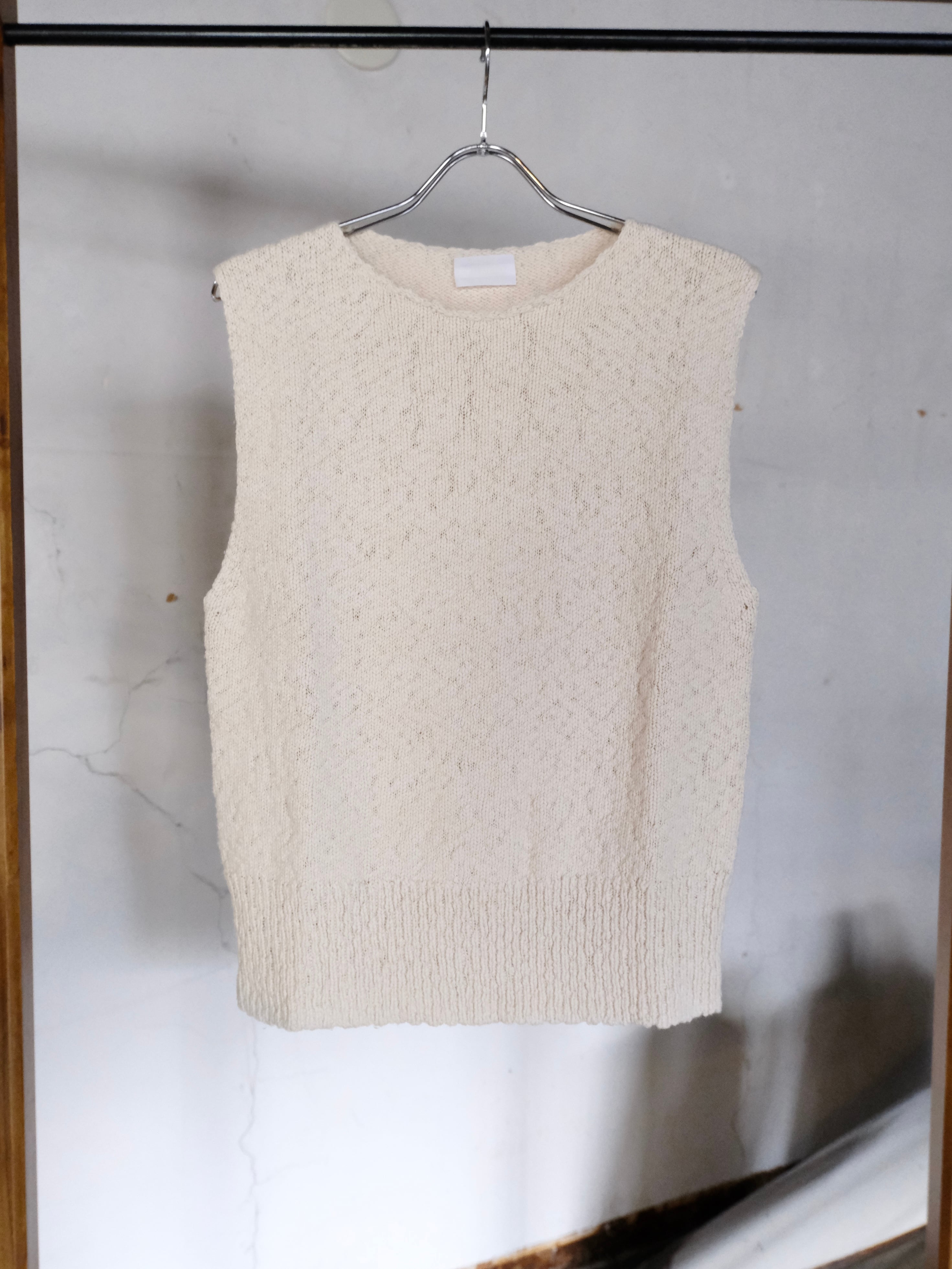綿スラブ糸を使用したニットベスト。