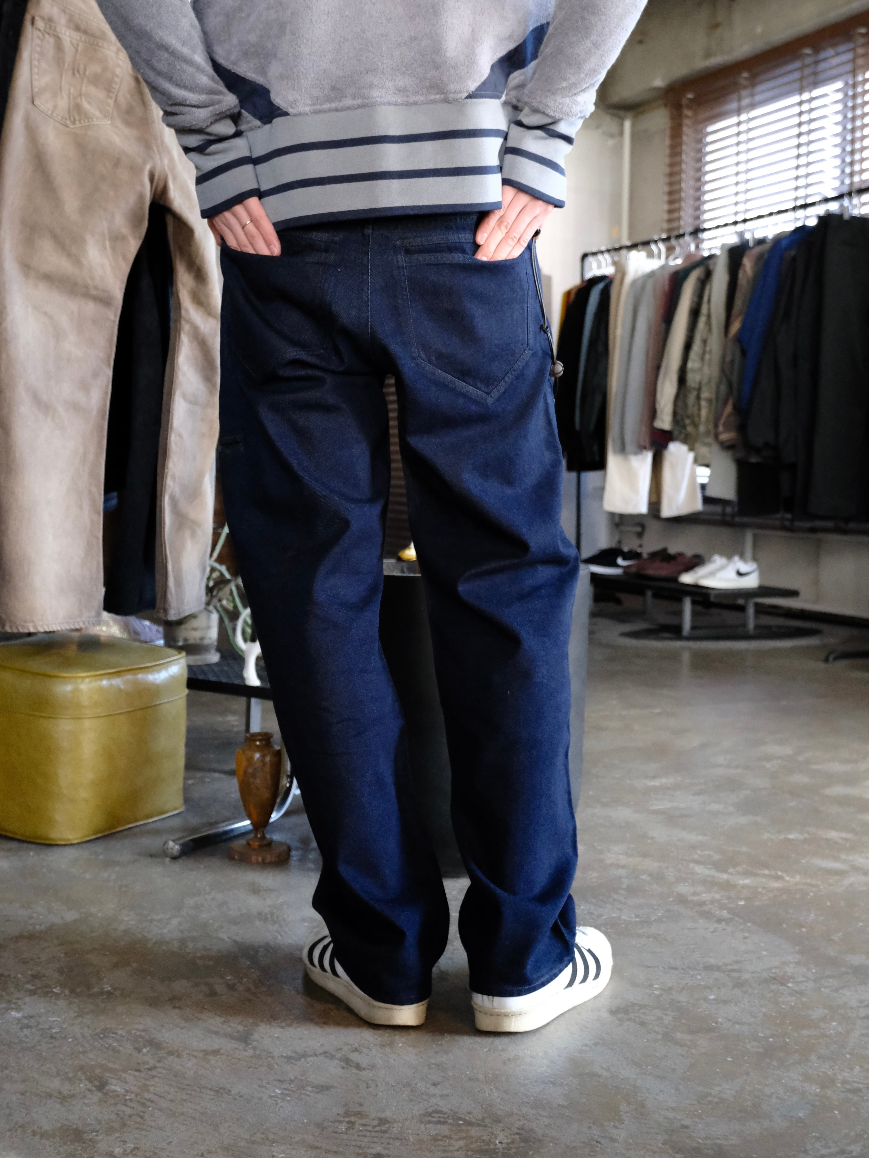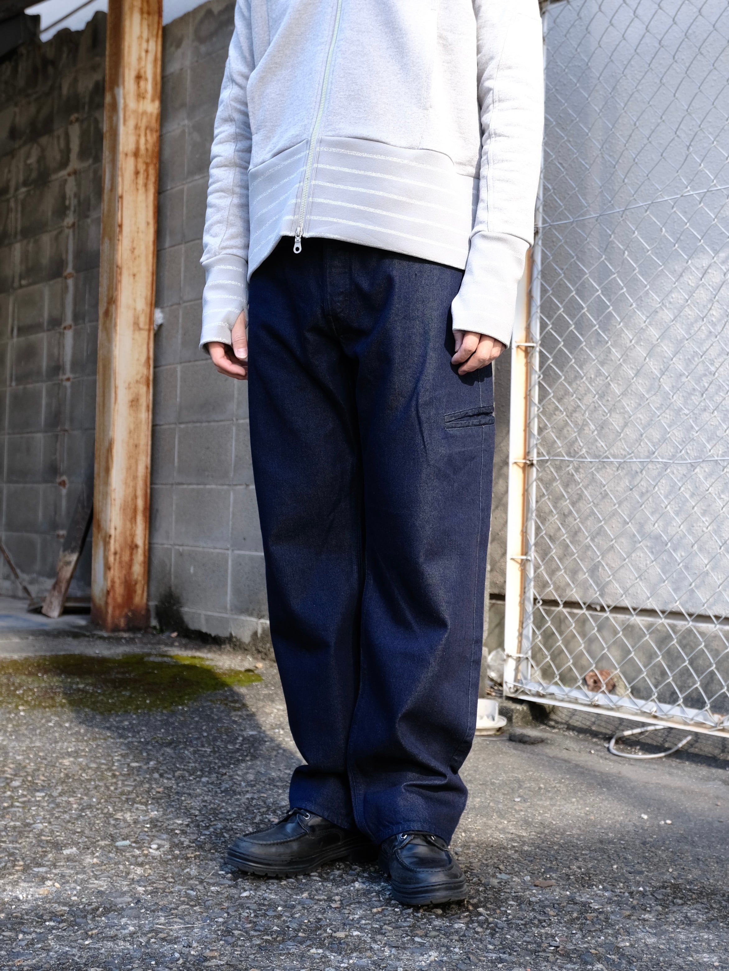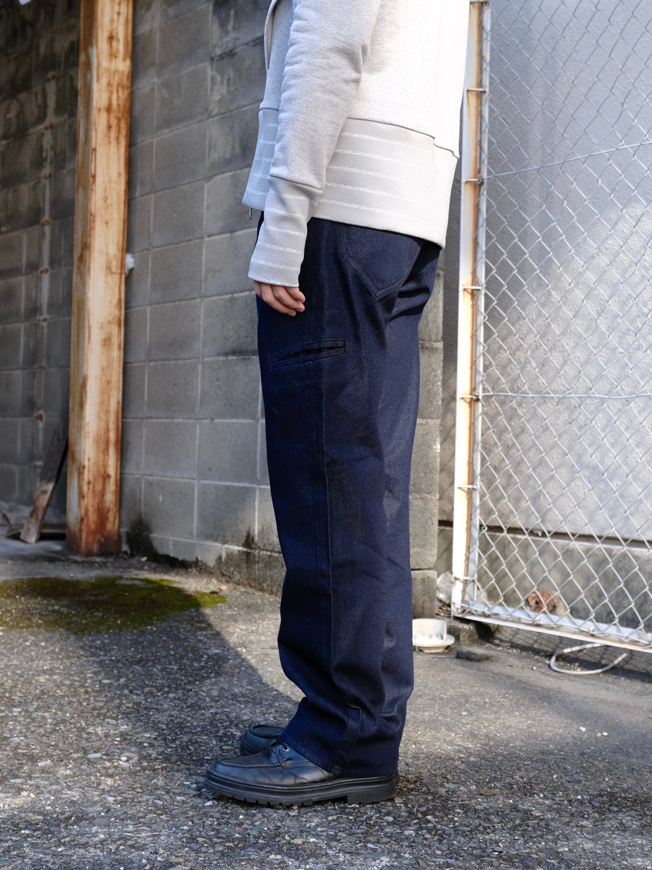 ワンウォッシュ加工を施し、色落ちすると共に、テンセルの光沢が経年変化と共に現れます。
