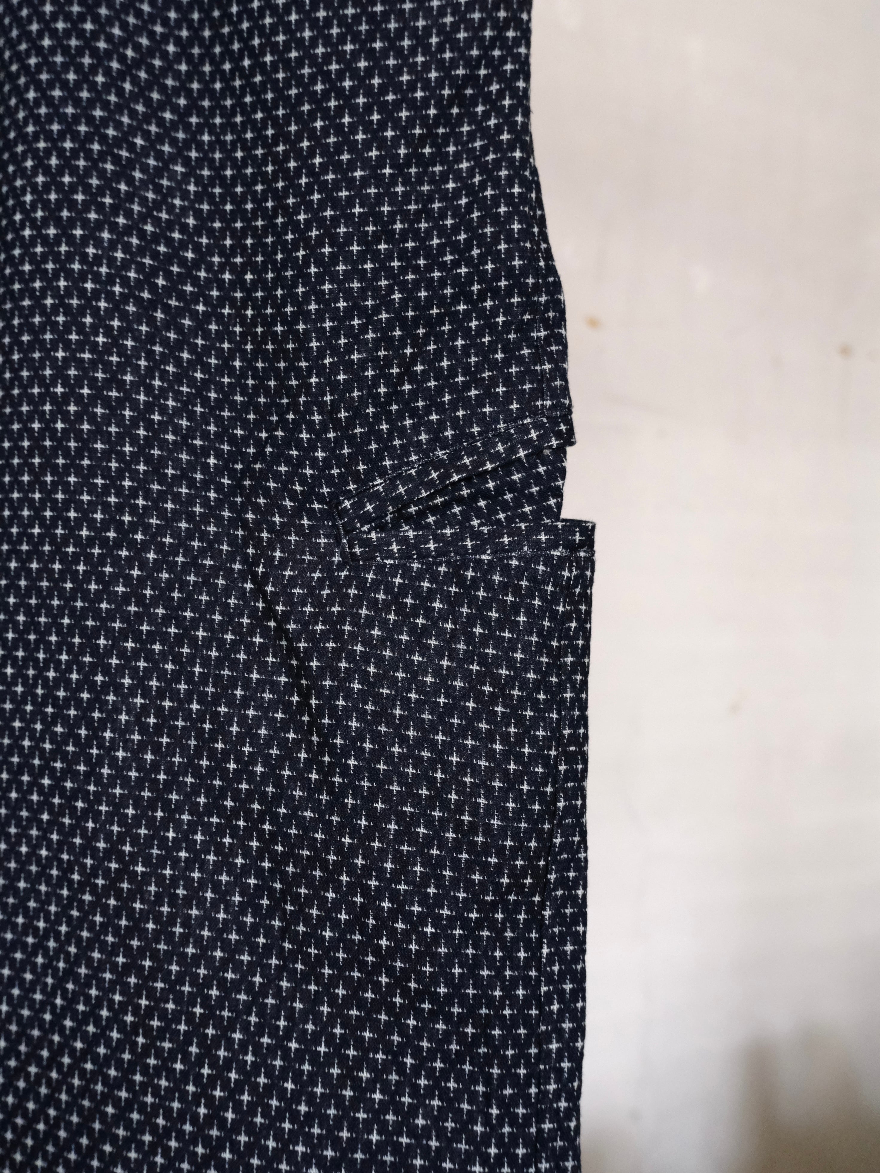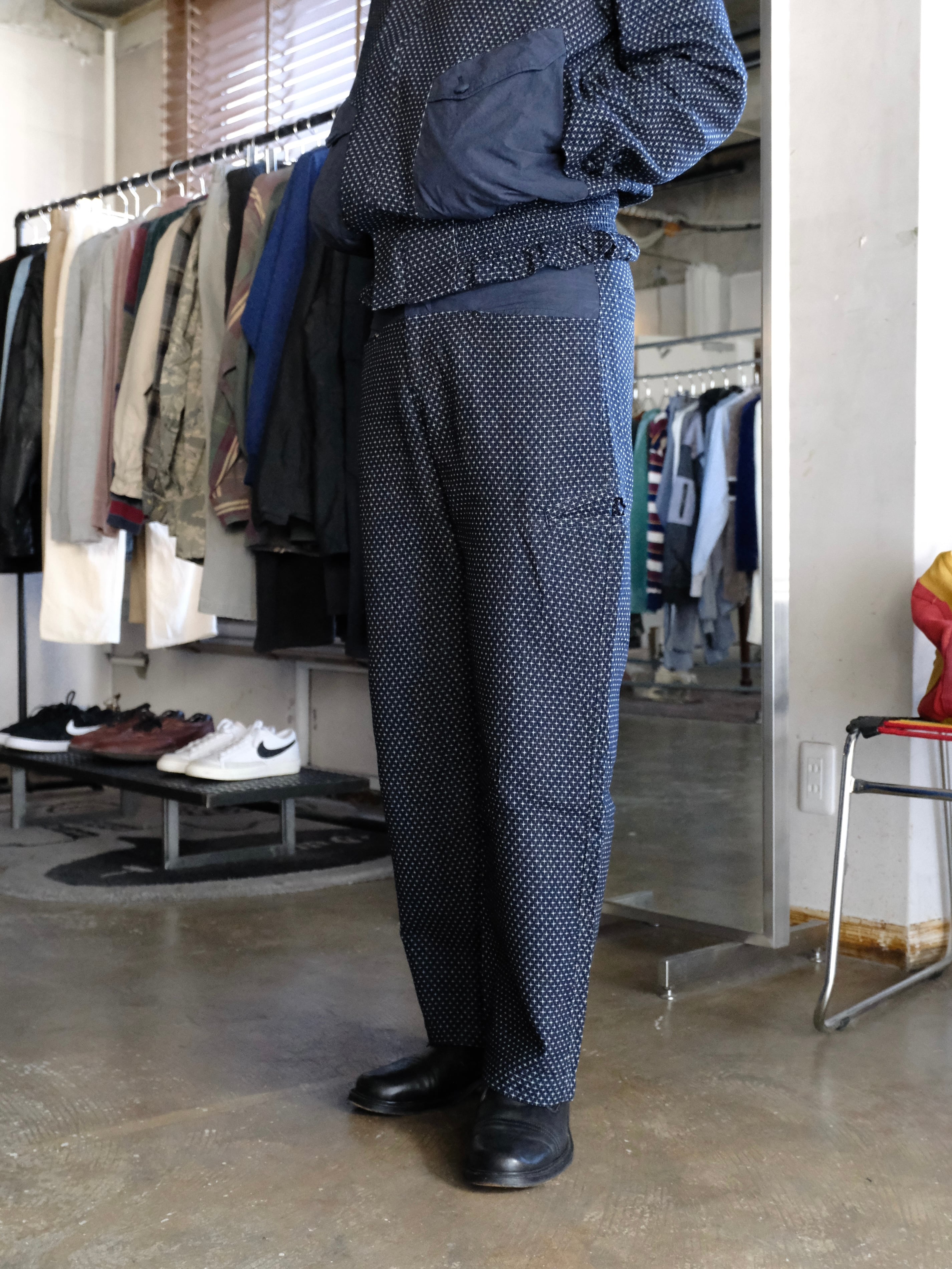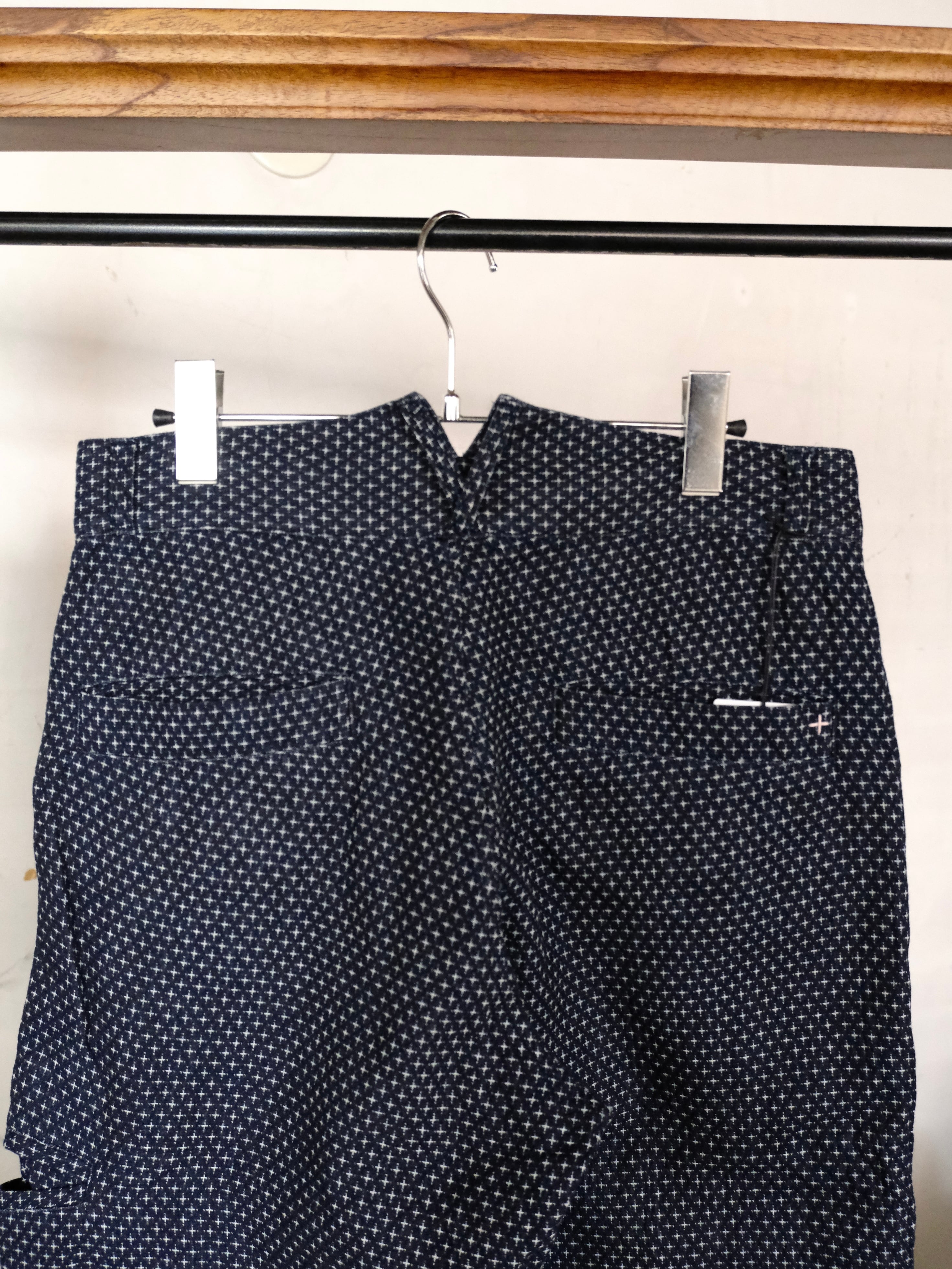 絣織りを模して作成したジャガード生地を使用したパンツ。