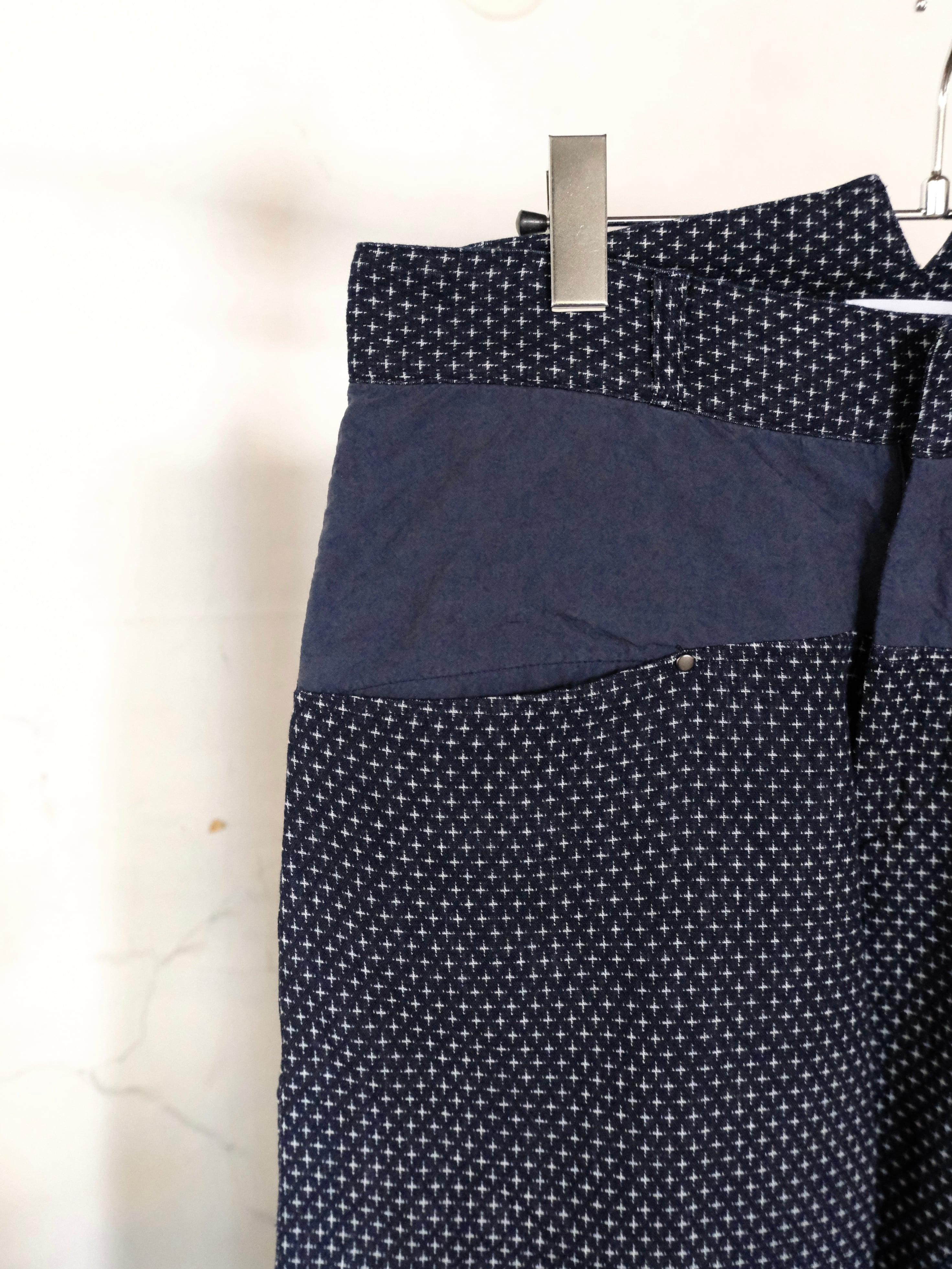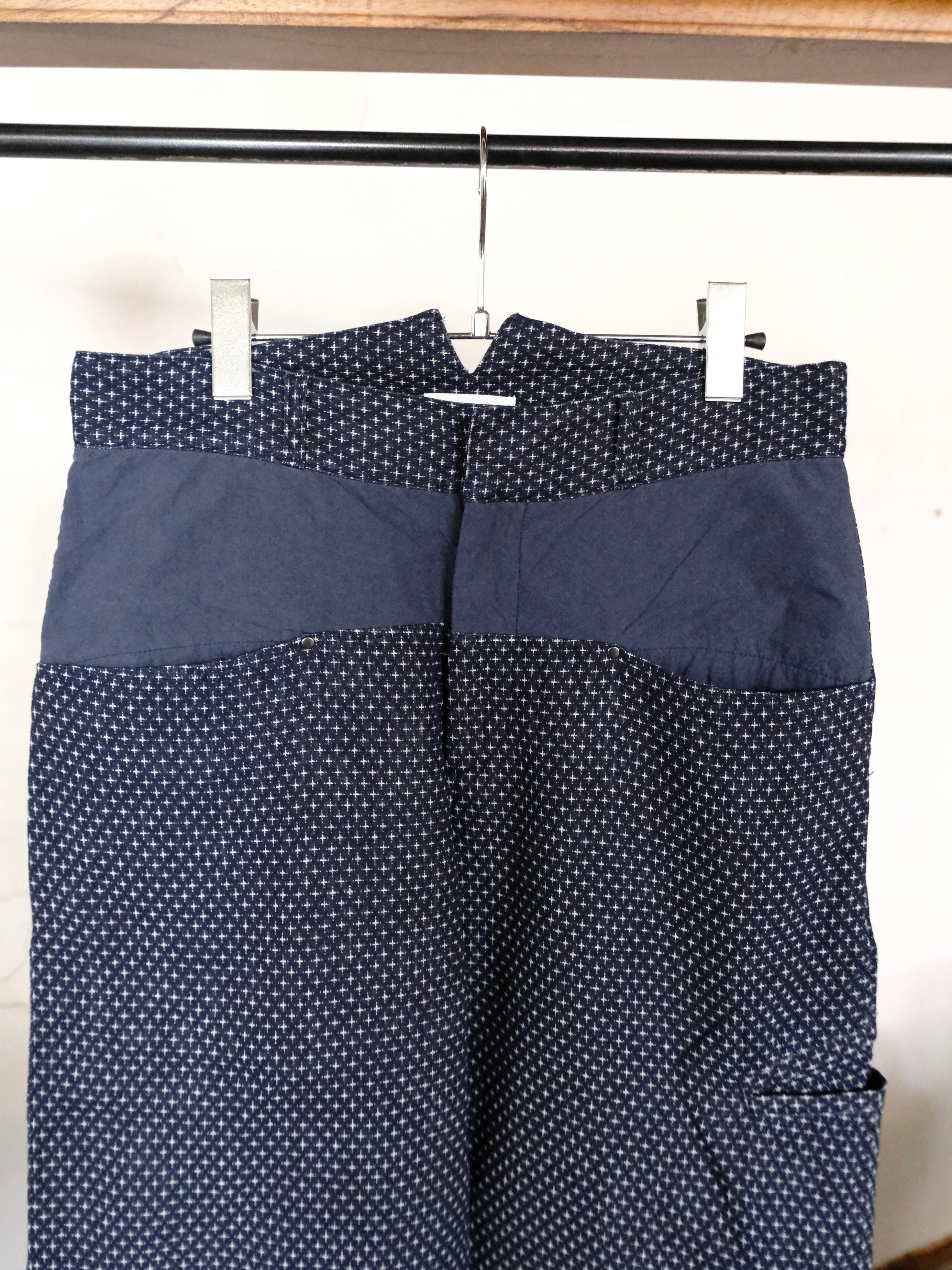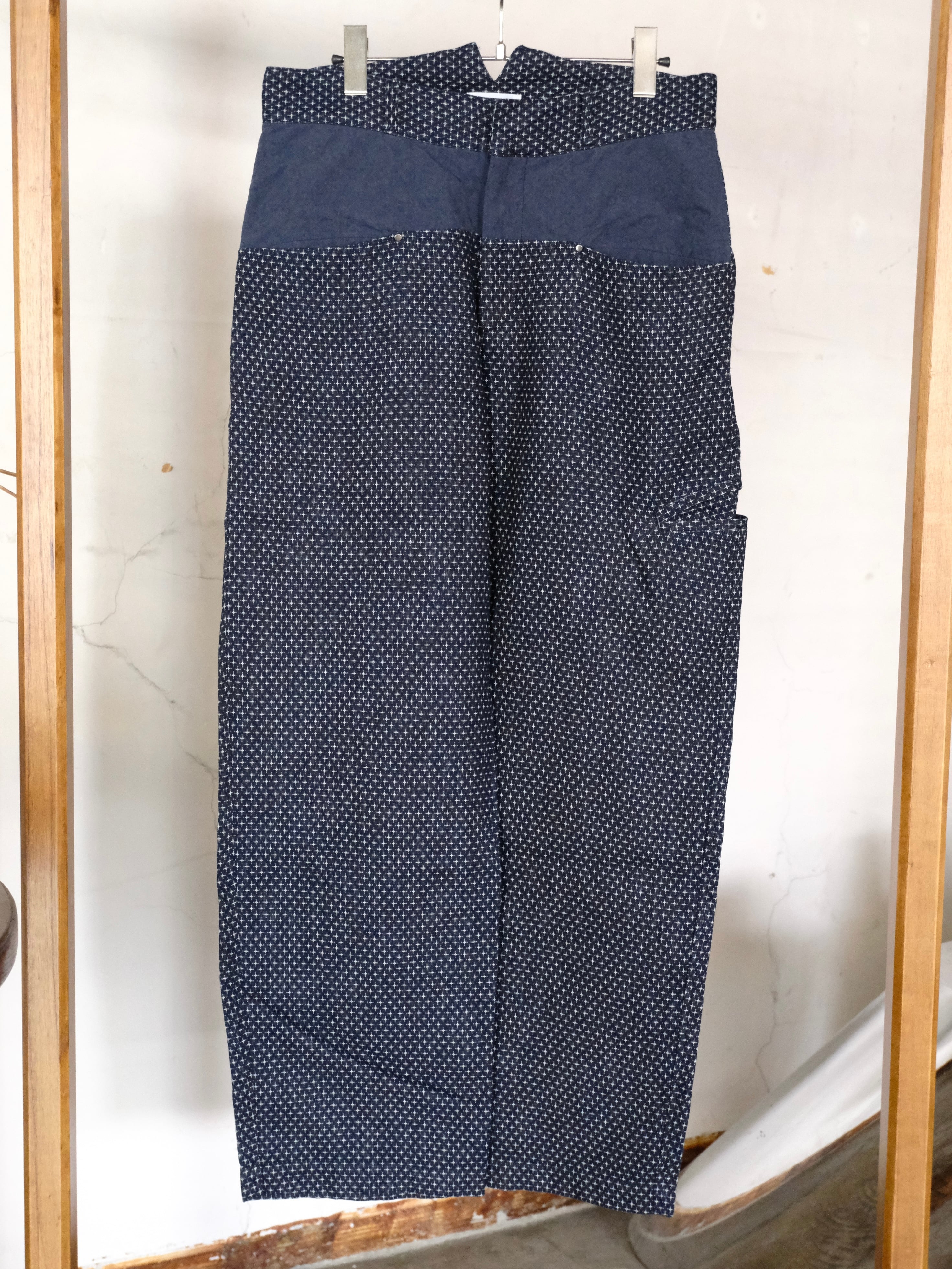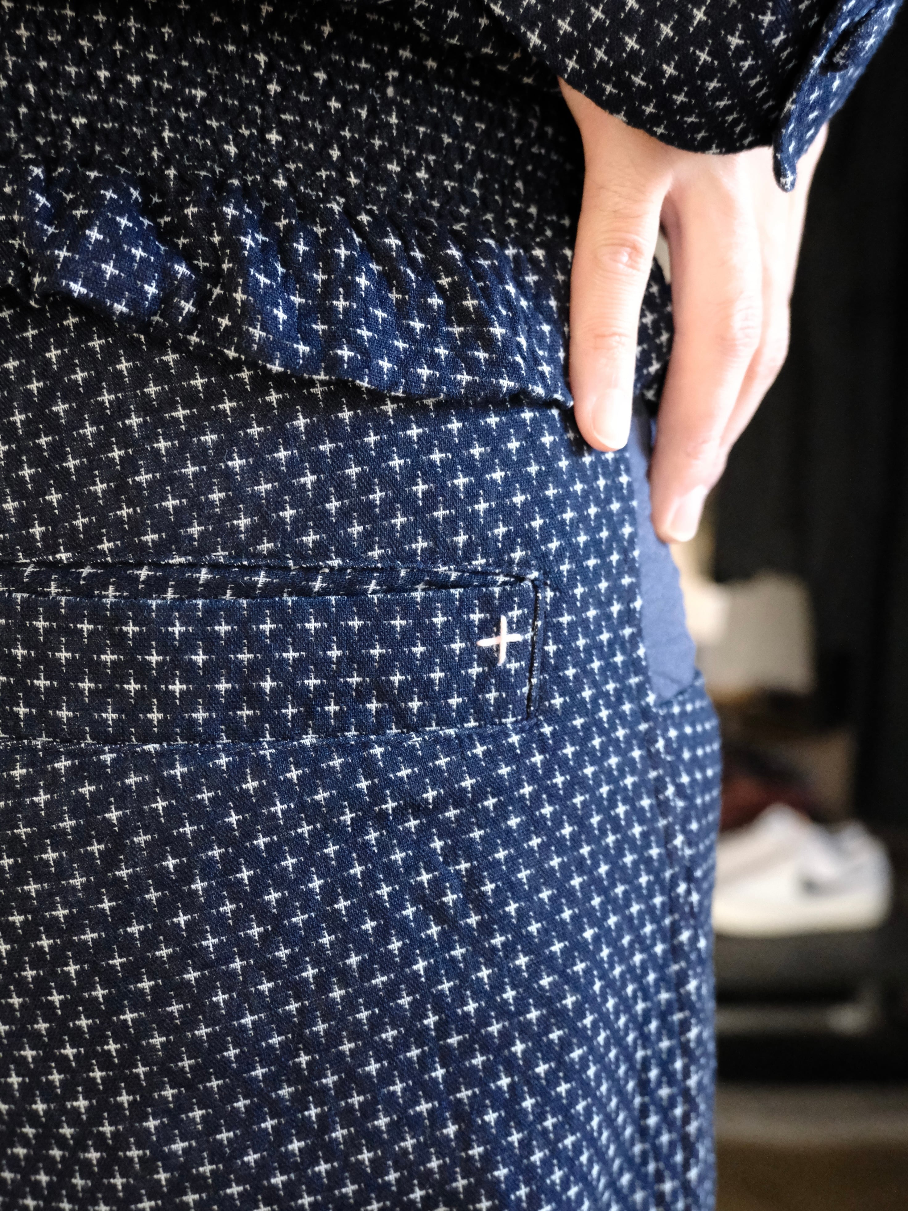 絣織りを模して作成したジャガード生地を使用したパンツ。