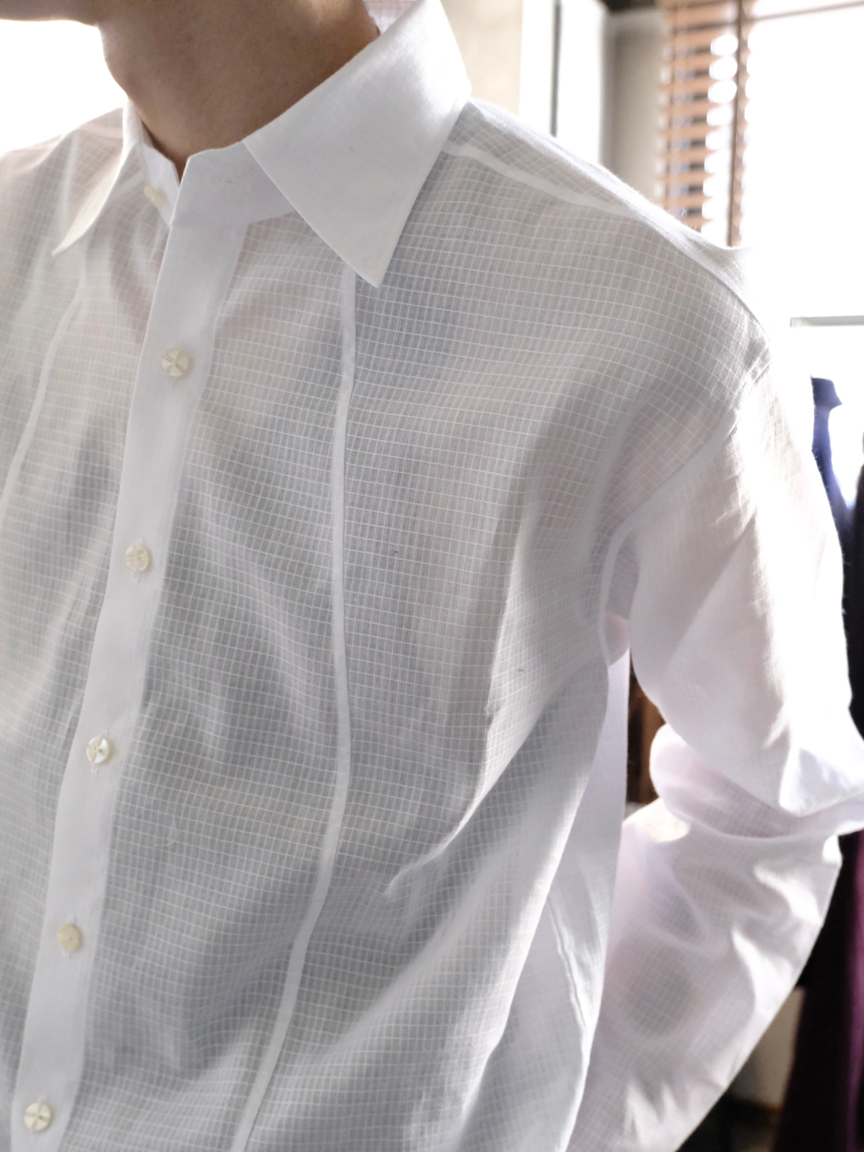 愛知県知多半島で生産している小幅生地を使用したシャツ。
