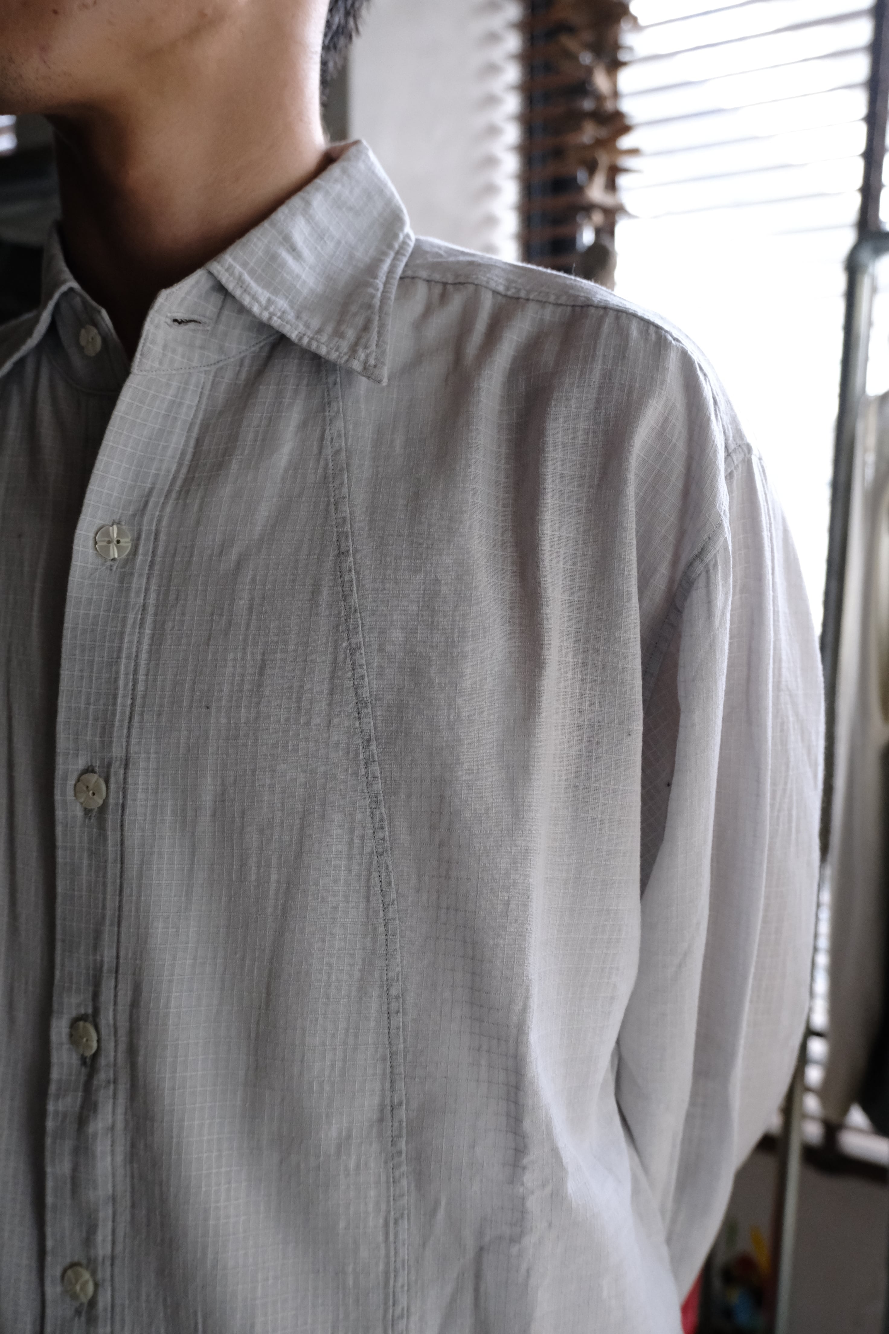 愛知県知多半島で生産している小幅生地を使用したシャツ。