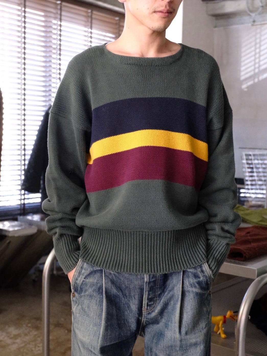 太めボーダーがぐるり一周入っておりカレッジ感のある1枚です。