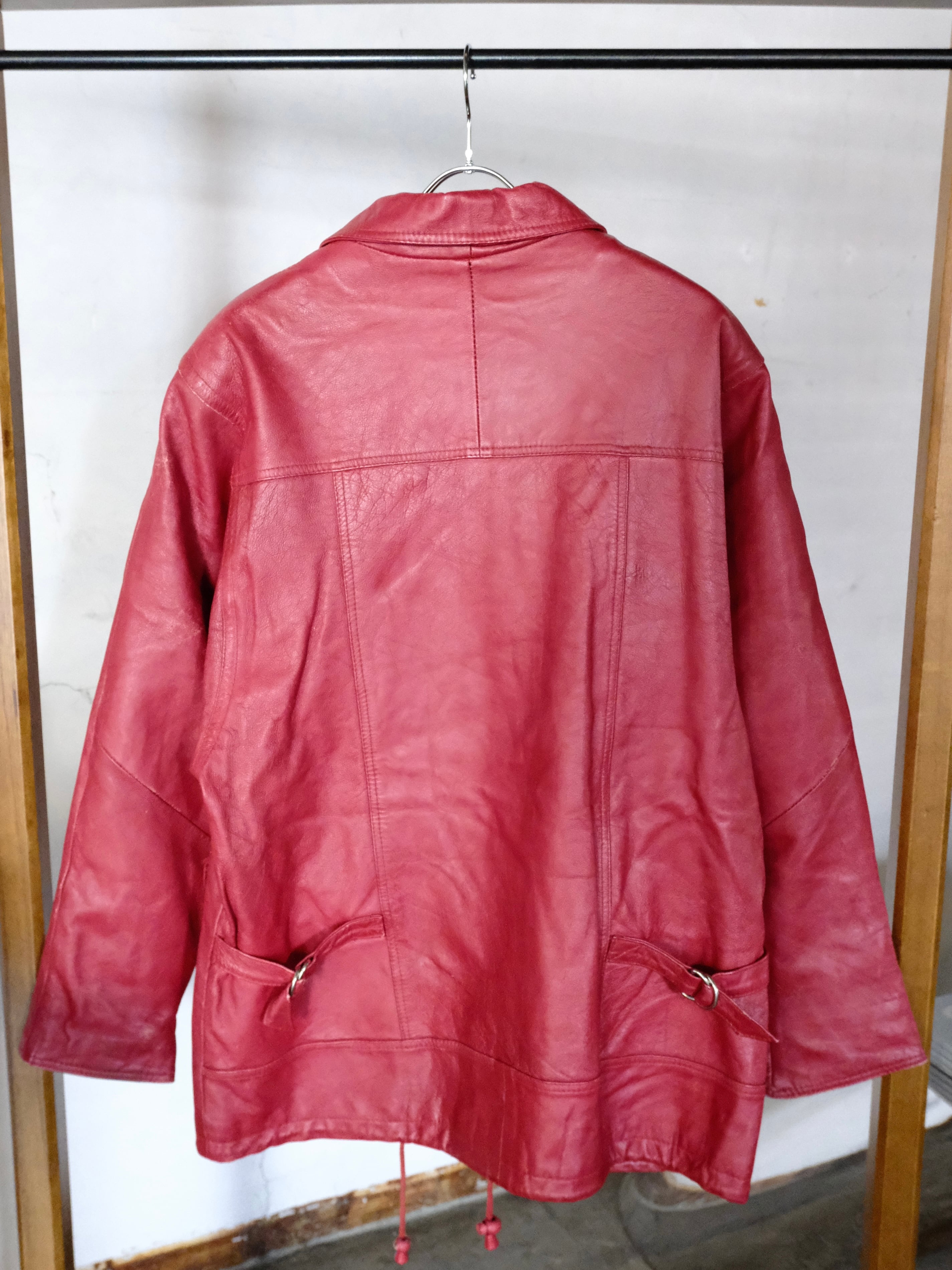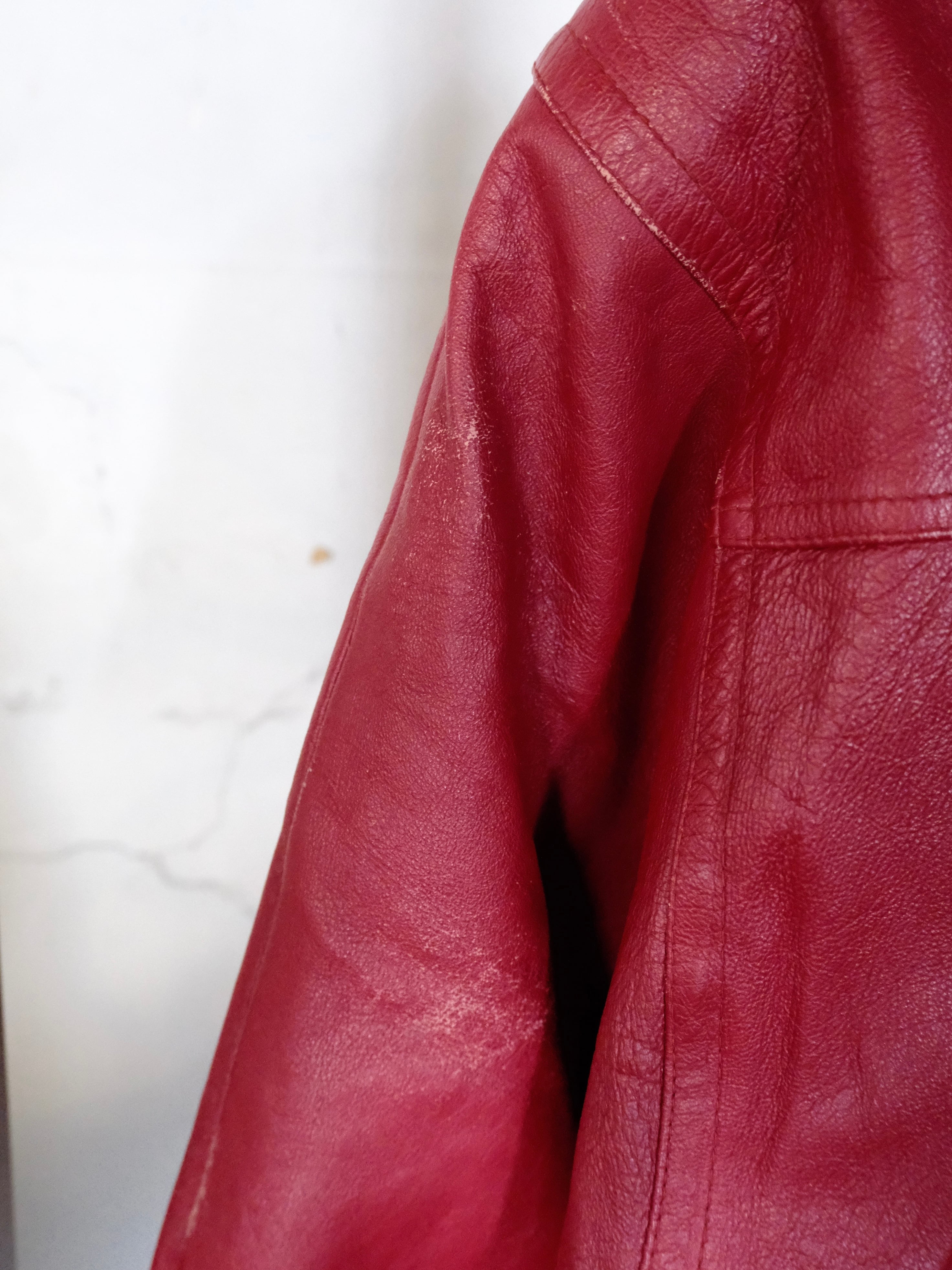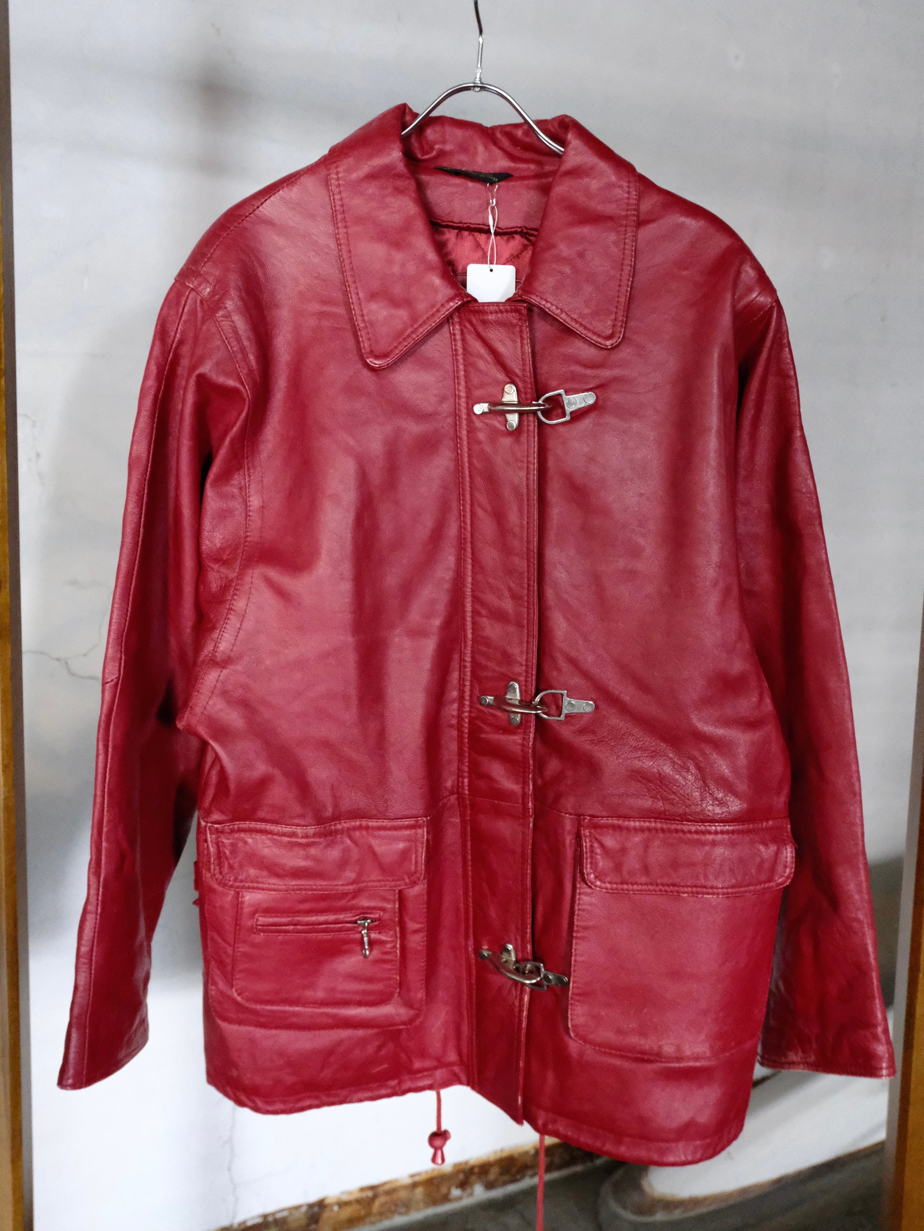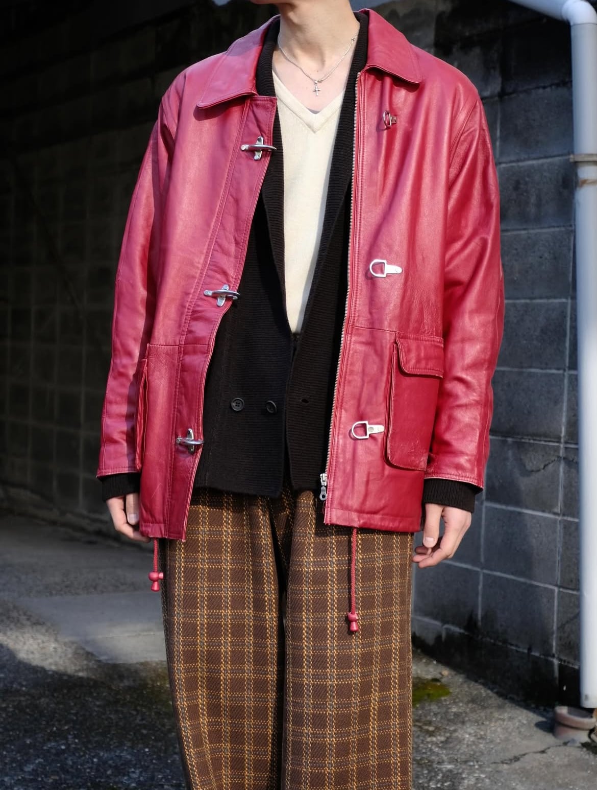 目を惹く赤レザーのファイヤーマンジャケットです。