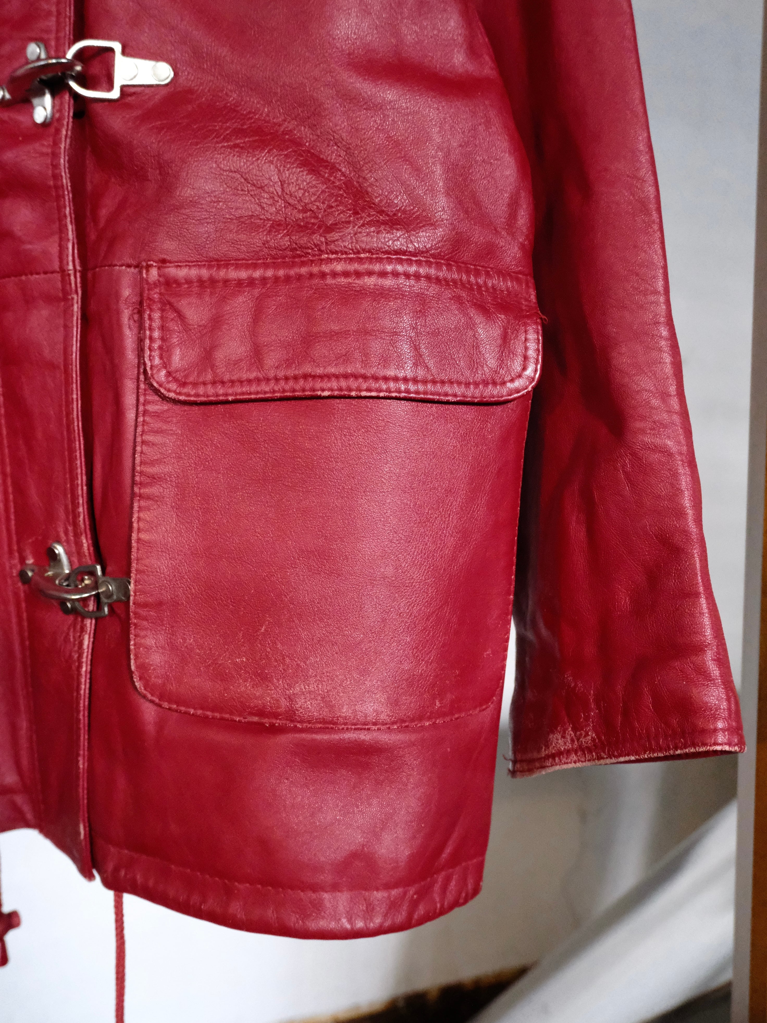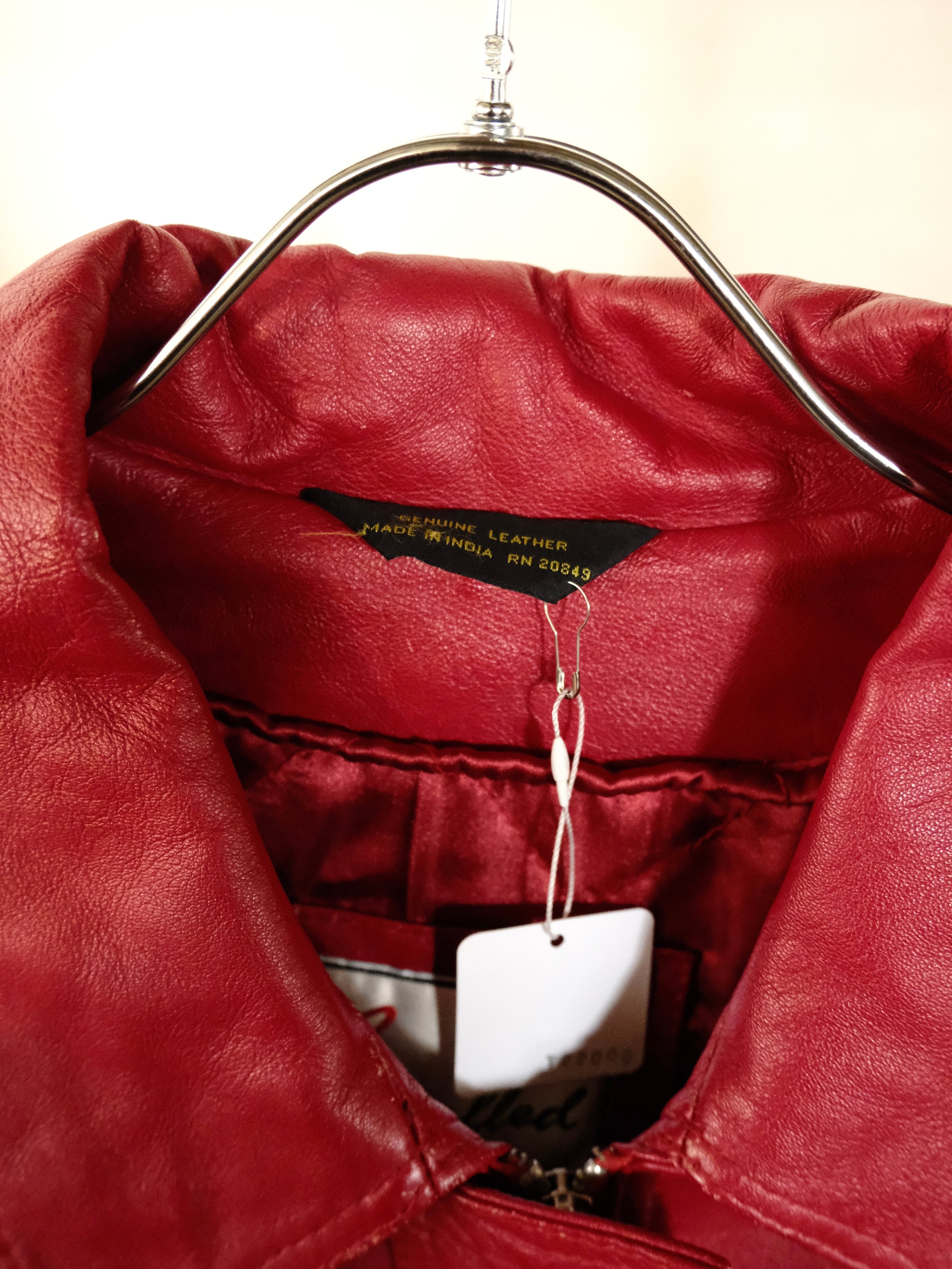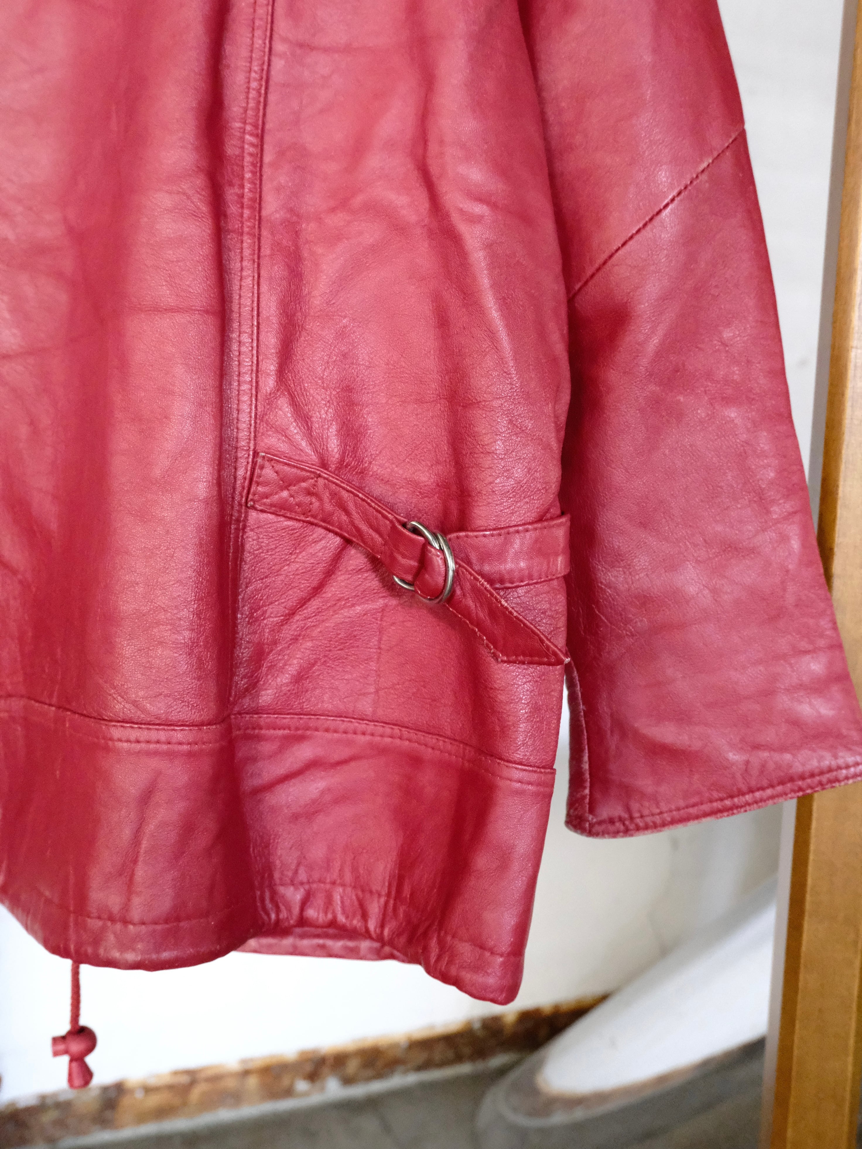 目を惹く赤レザーのファイヤーマンジャケットです。