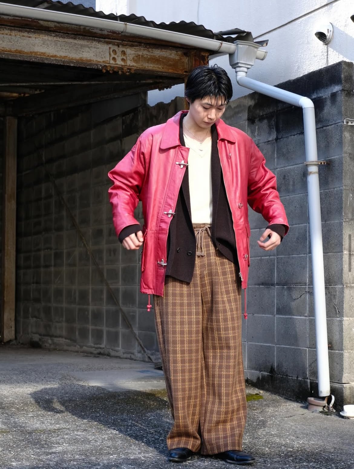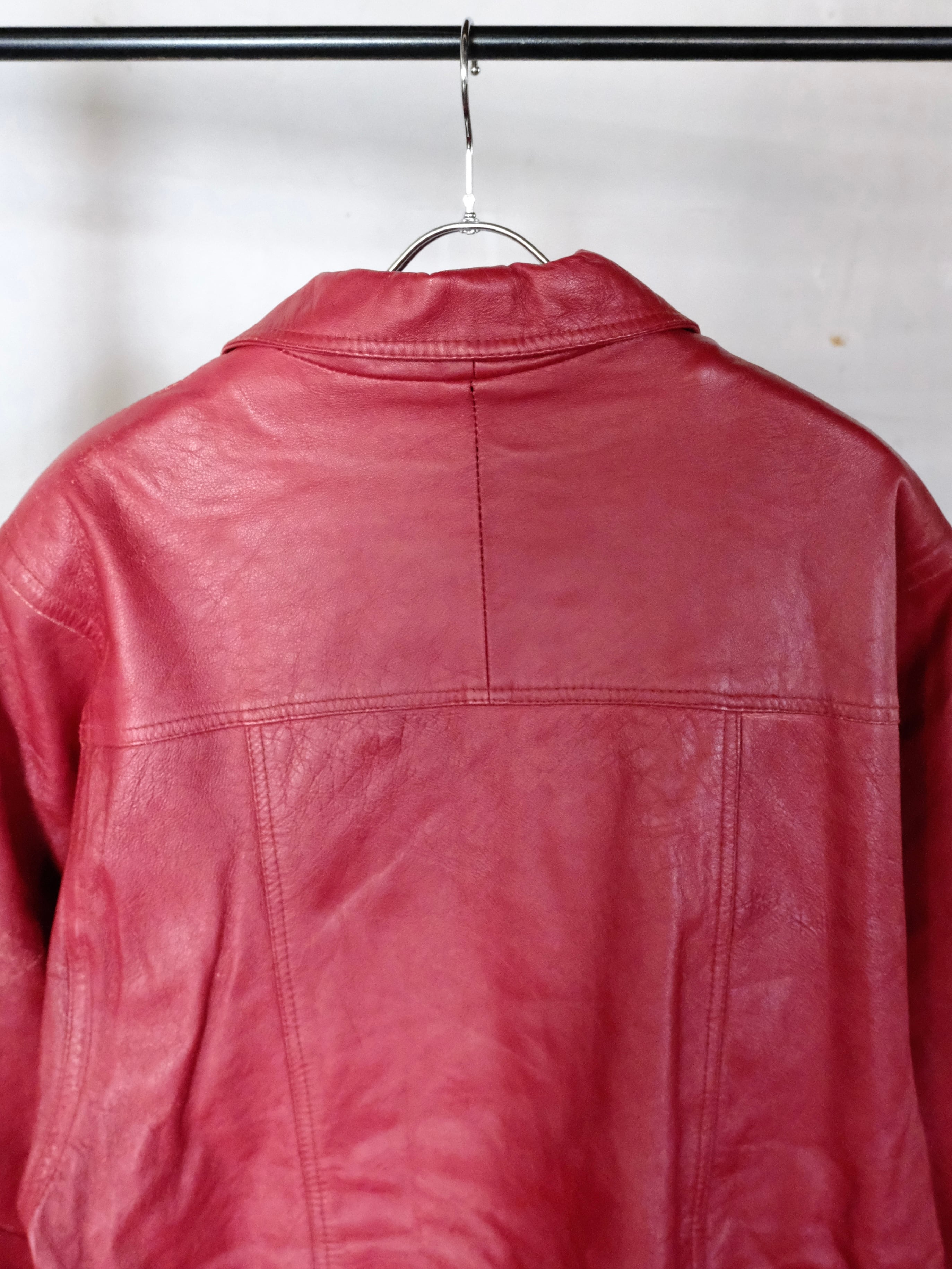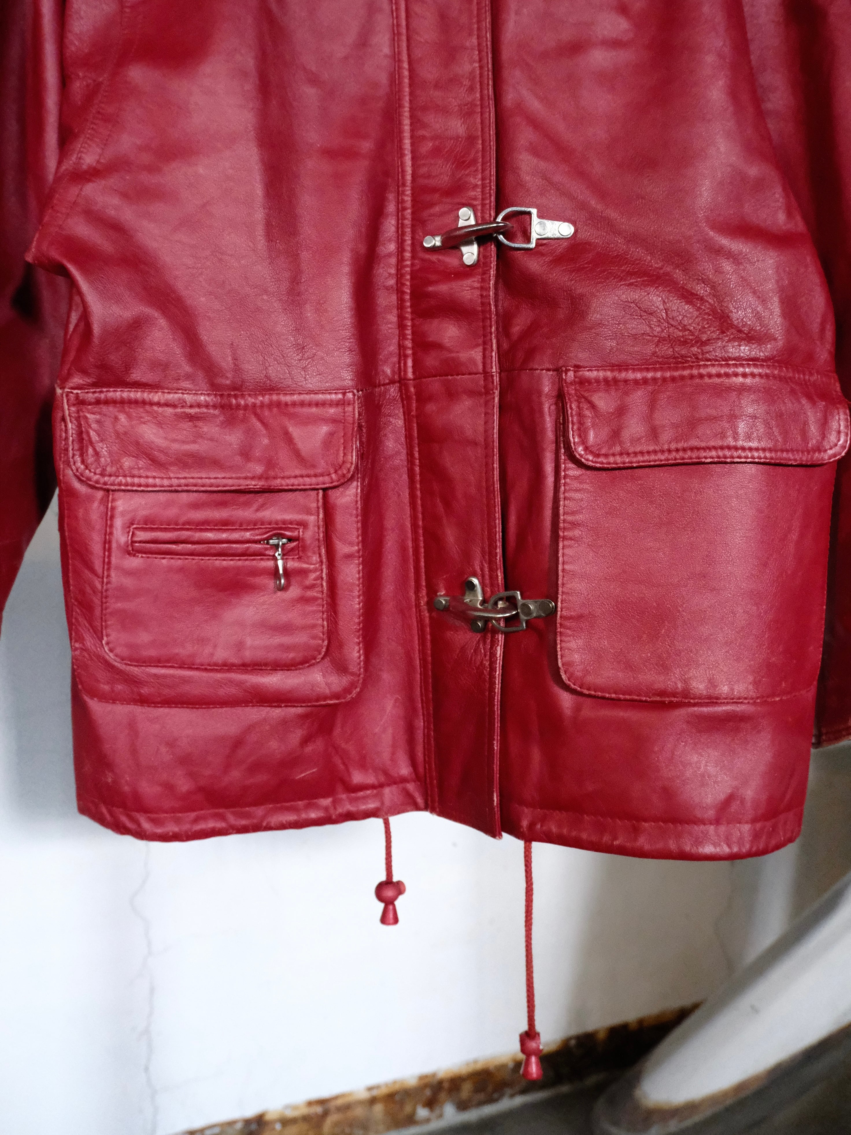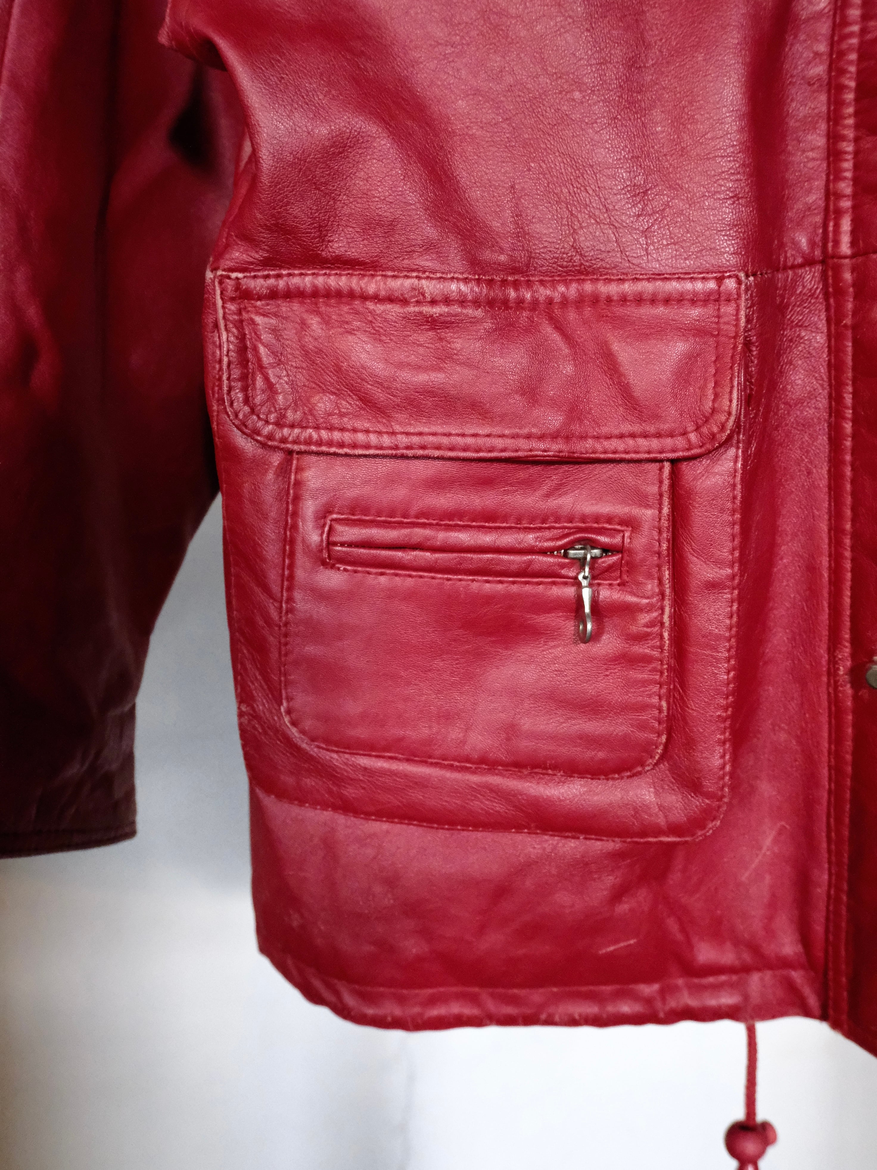 目を惹く赤レザーのファイヤーマンジャケットです。
