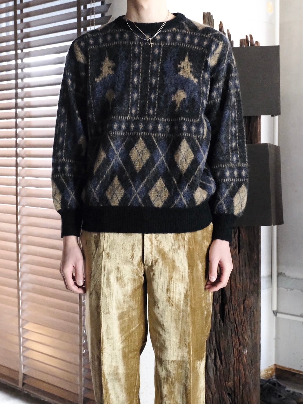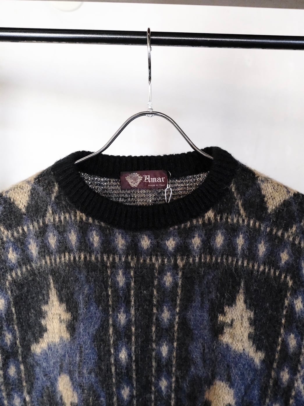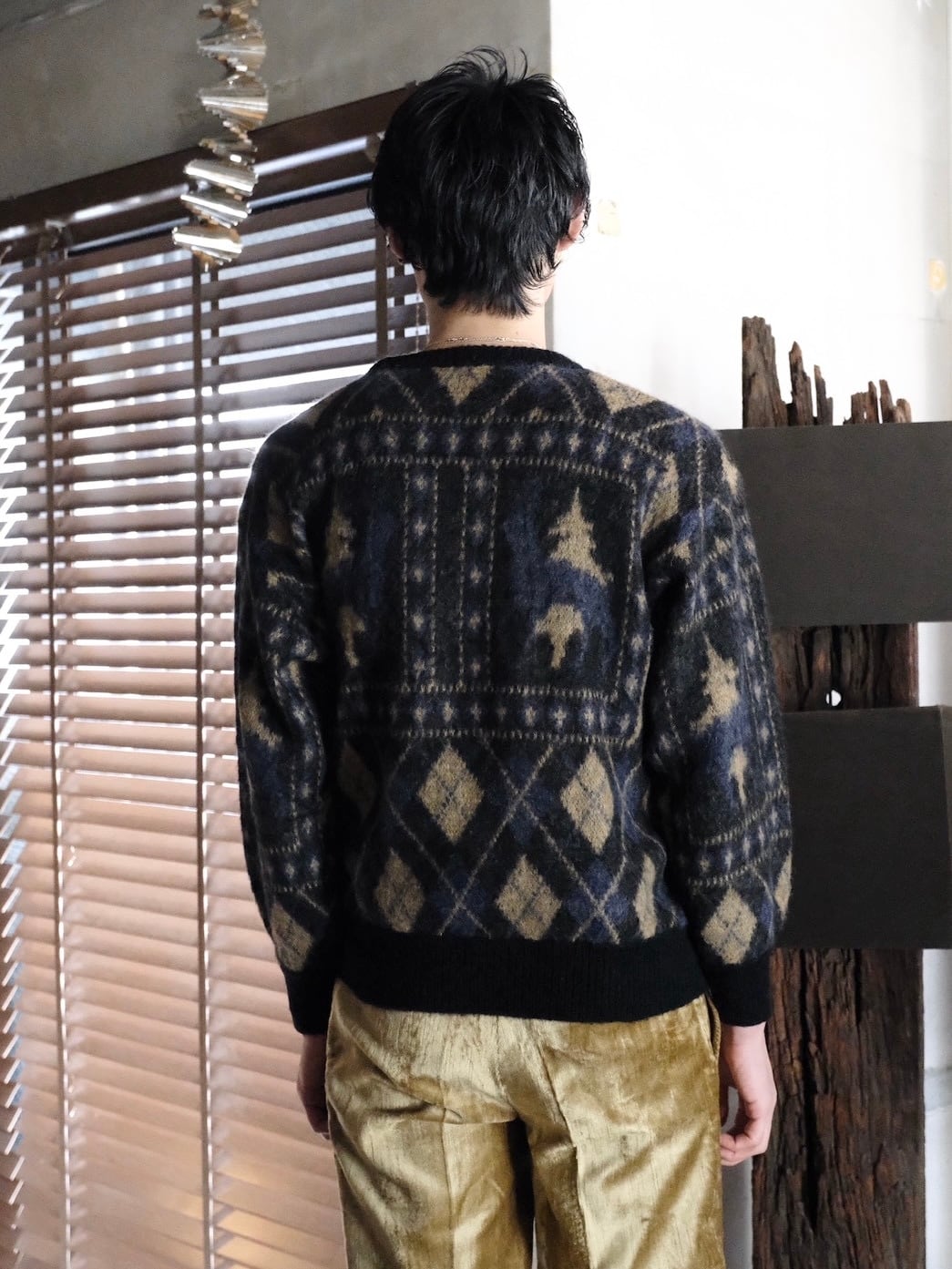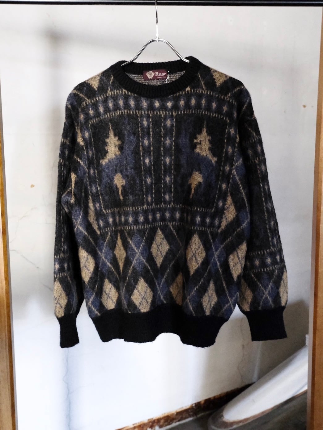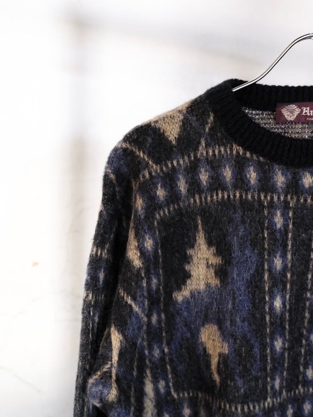 目を惹くデザインのモヘアニットです。