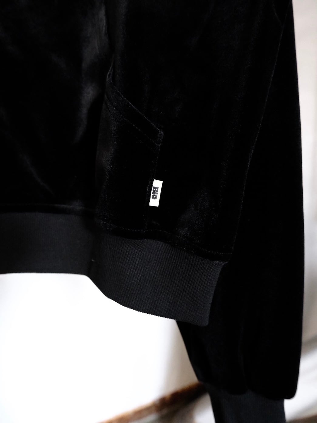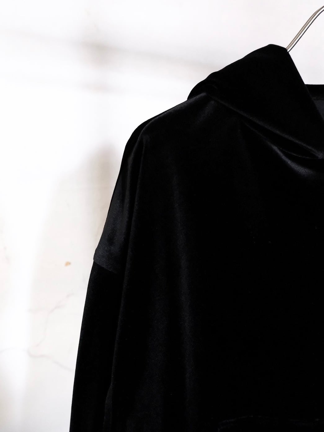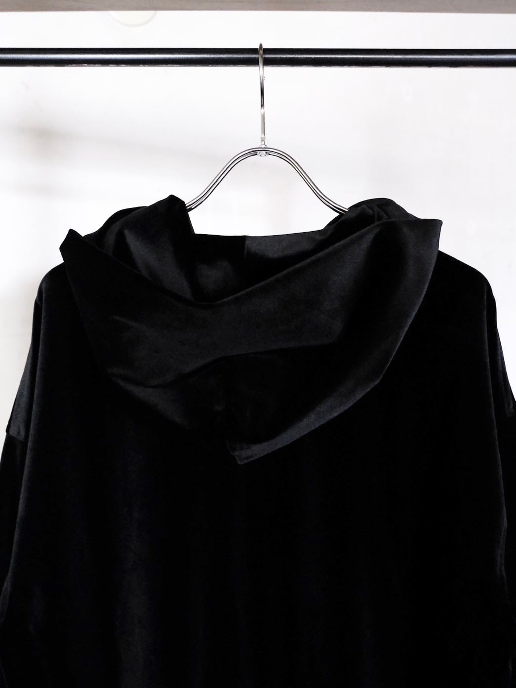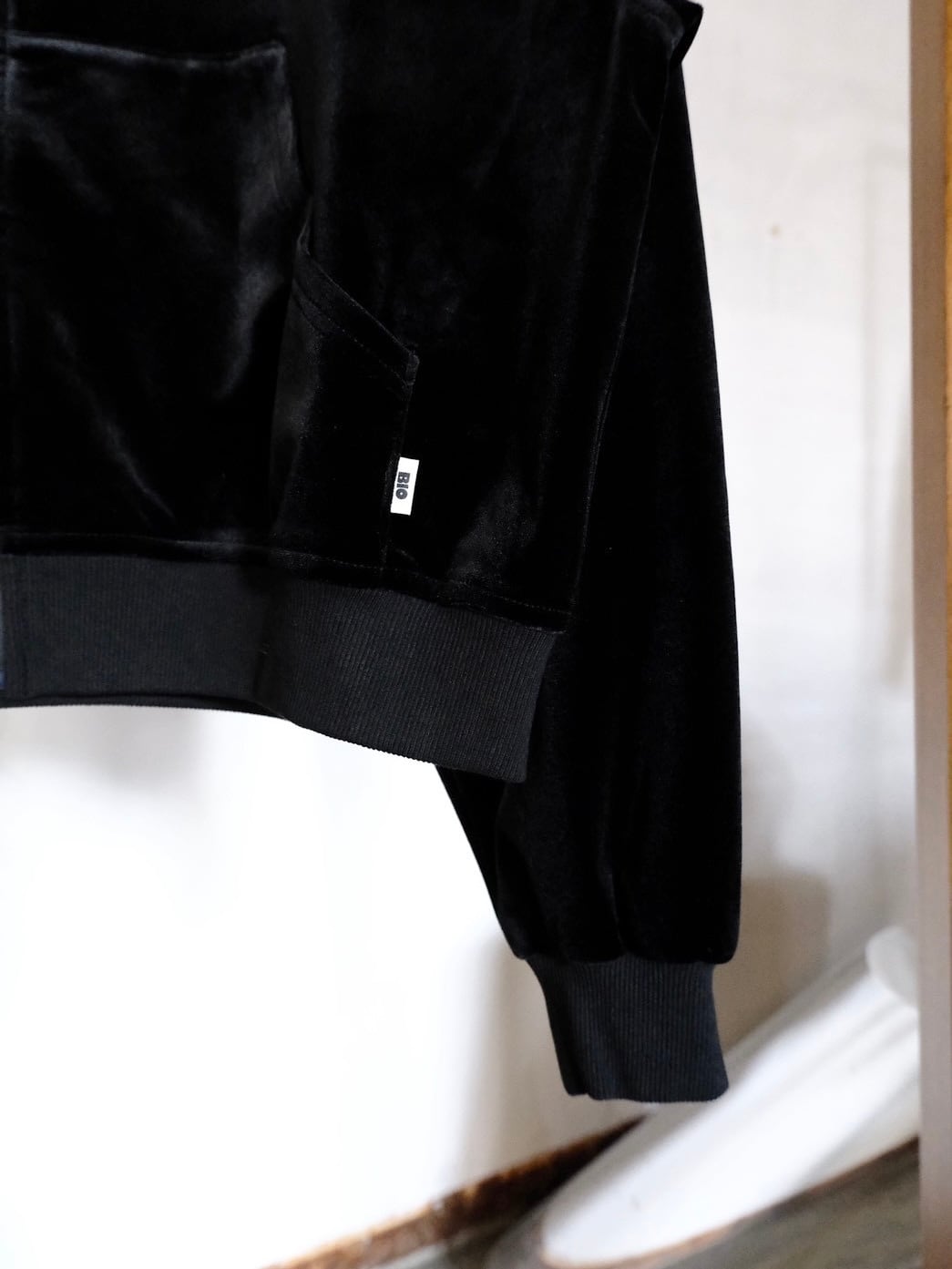 ジップカラーがゴールドになったベロア調のジップフーディー。
