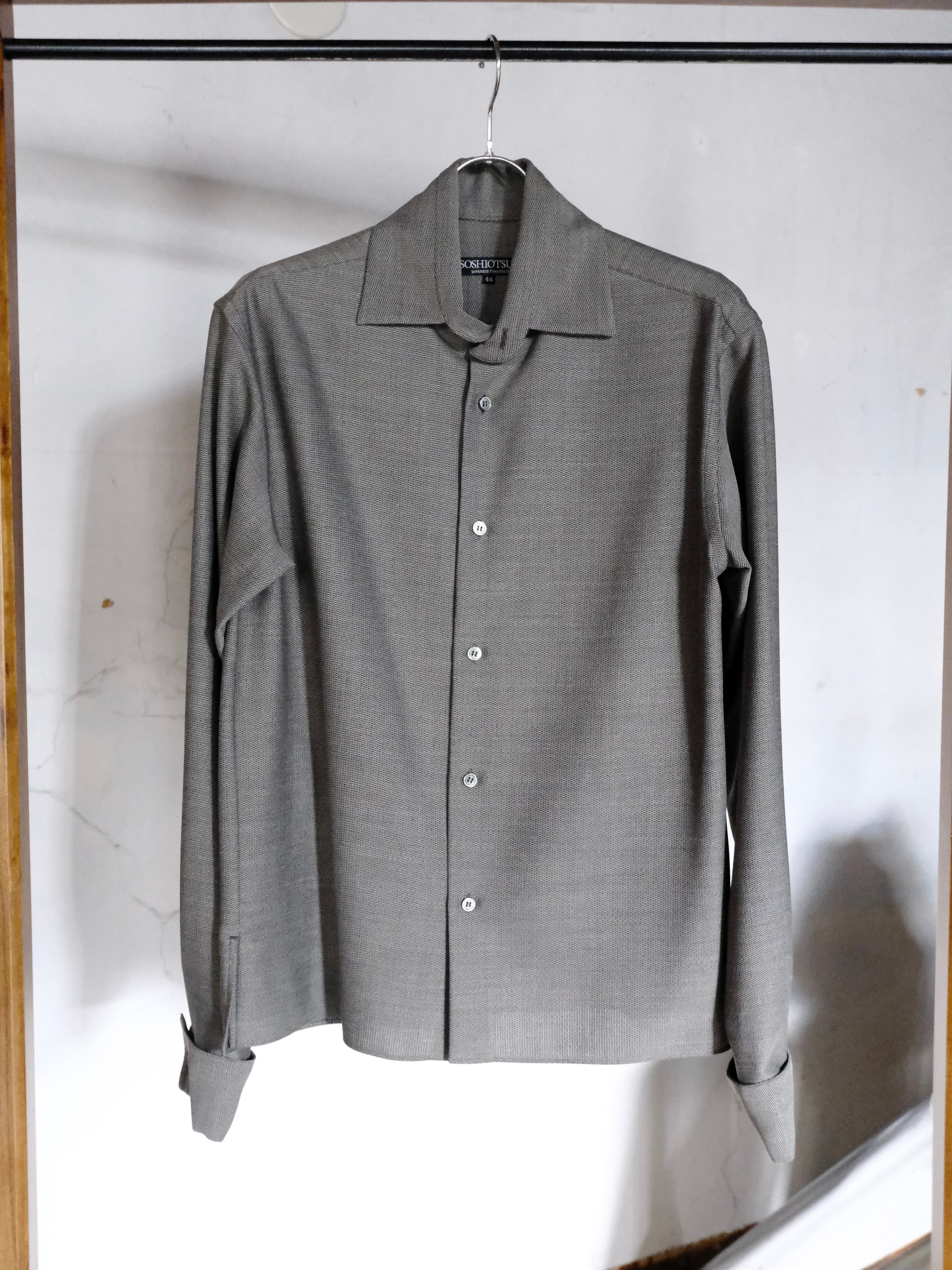 台襟にボタンを2つ配した、いわゆる"ドュエボットーニ"仕様のシャツ。