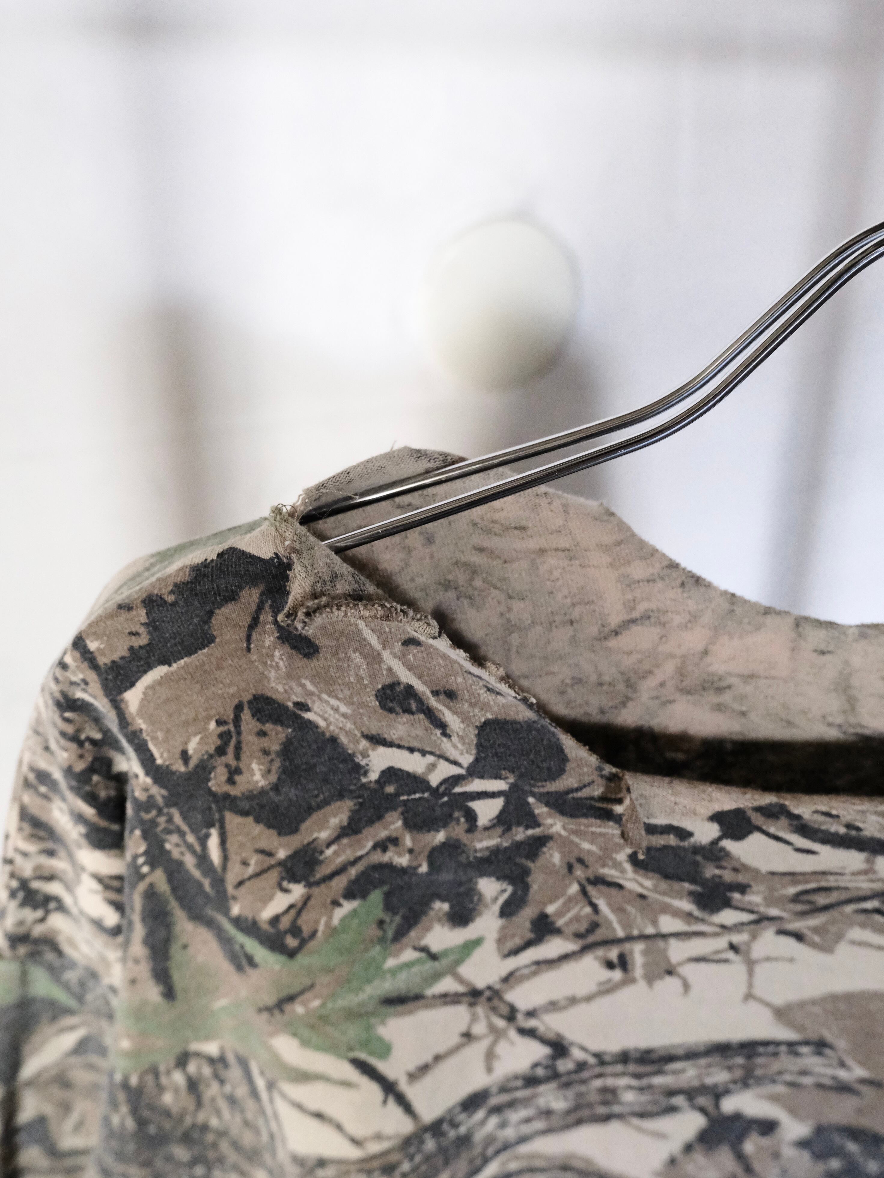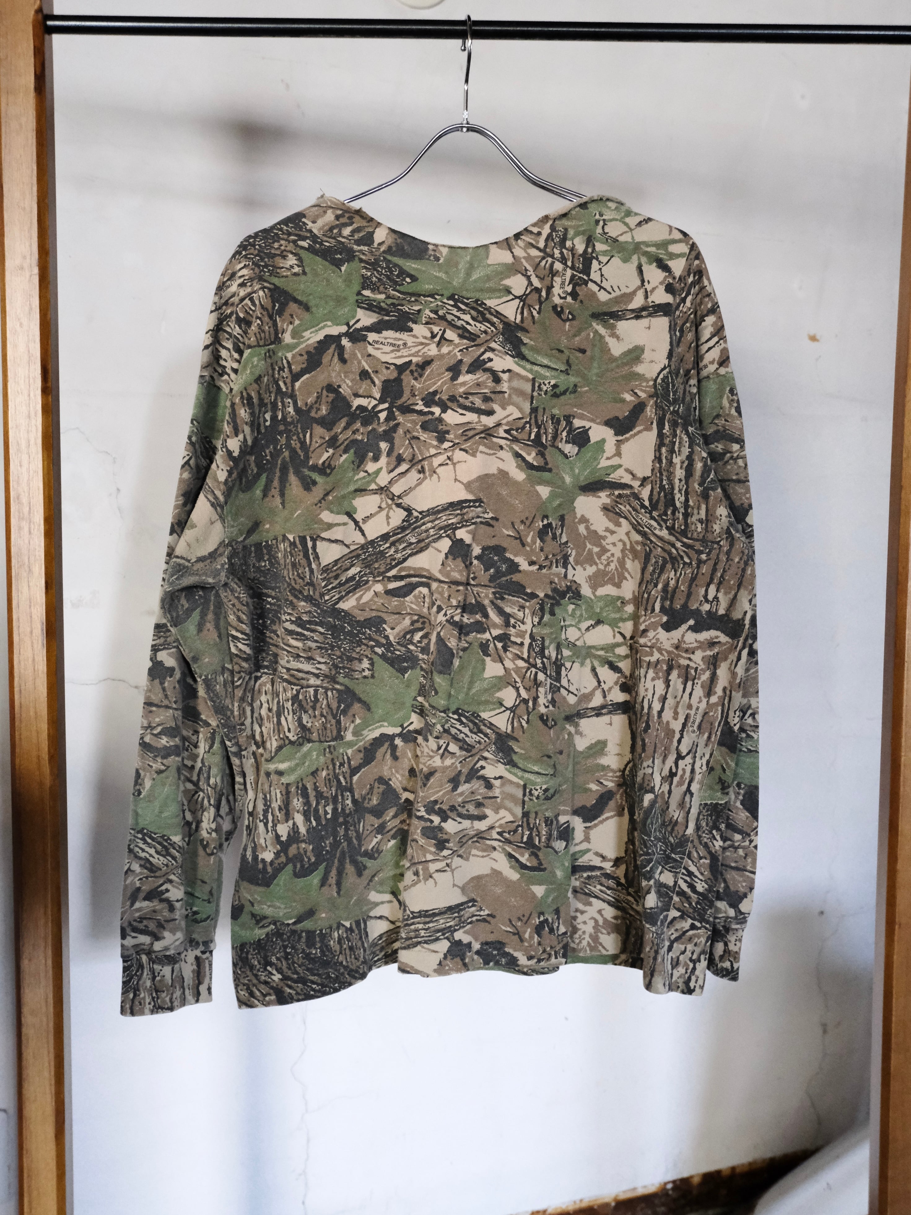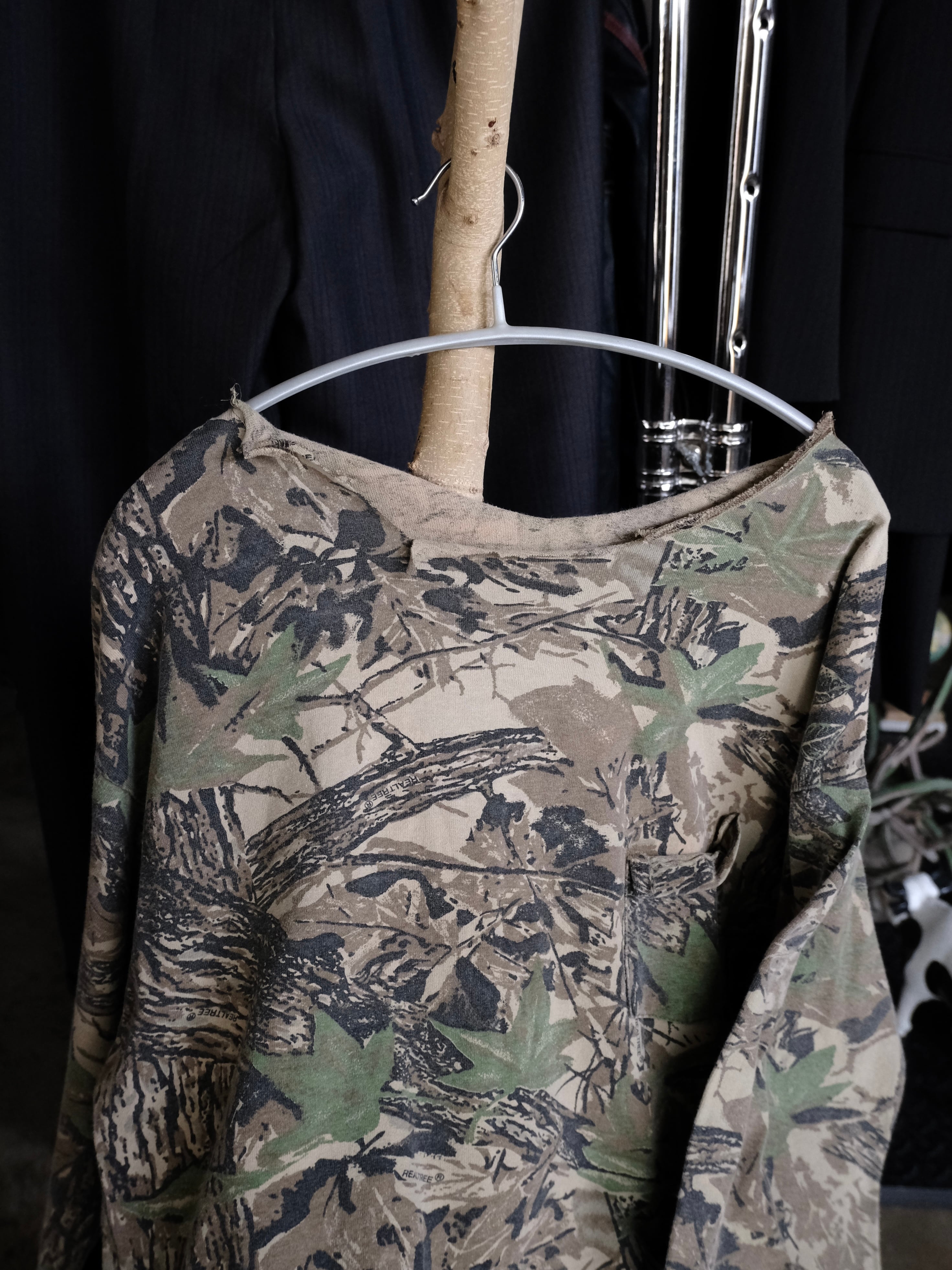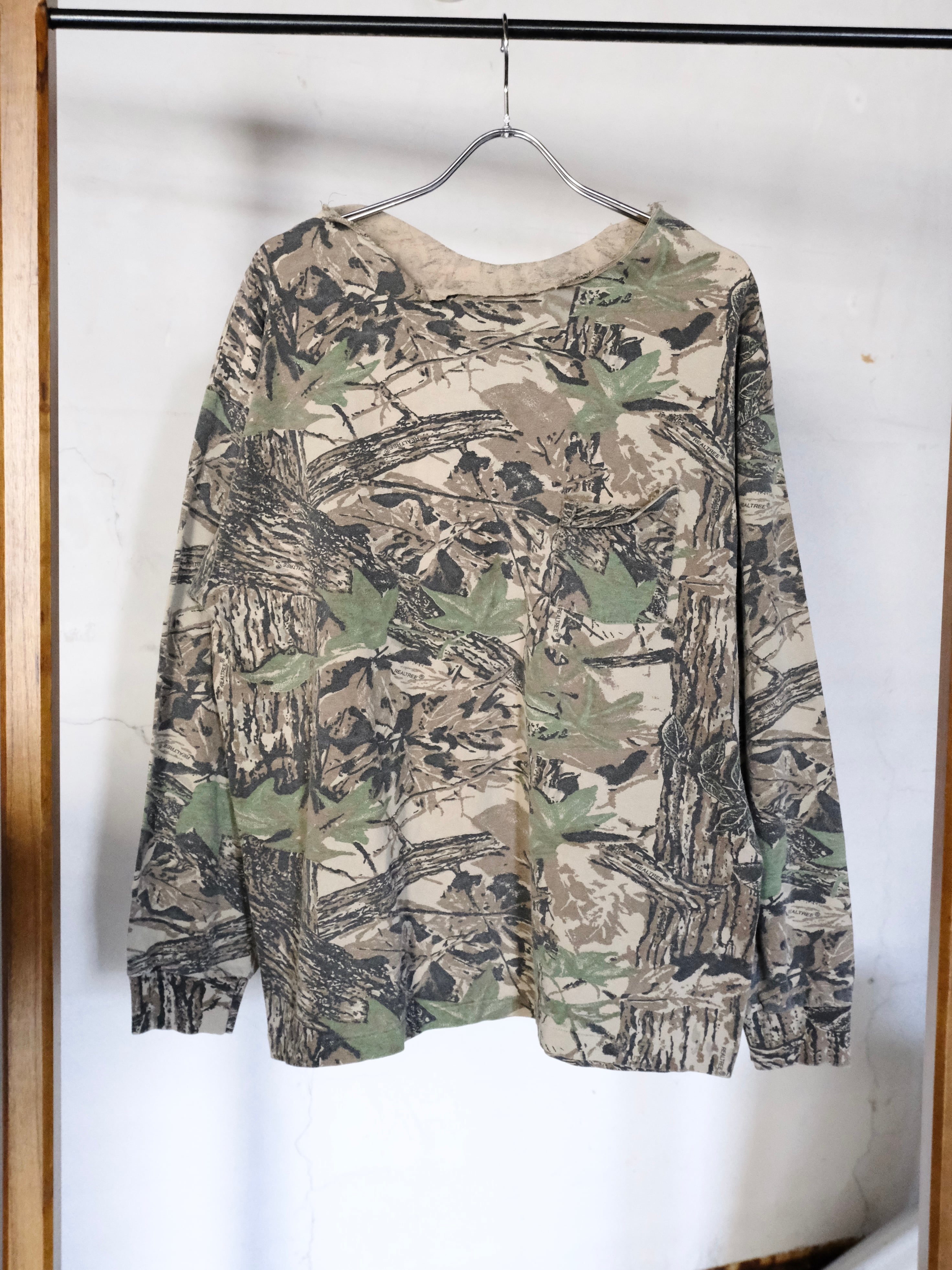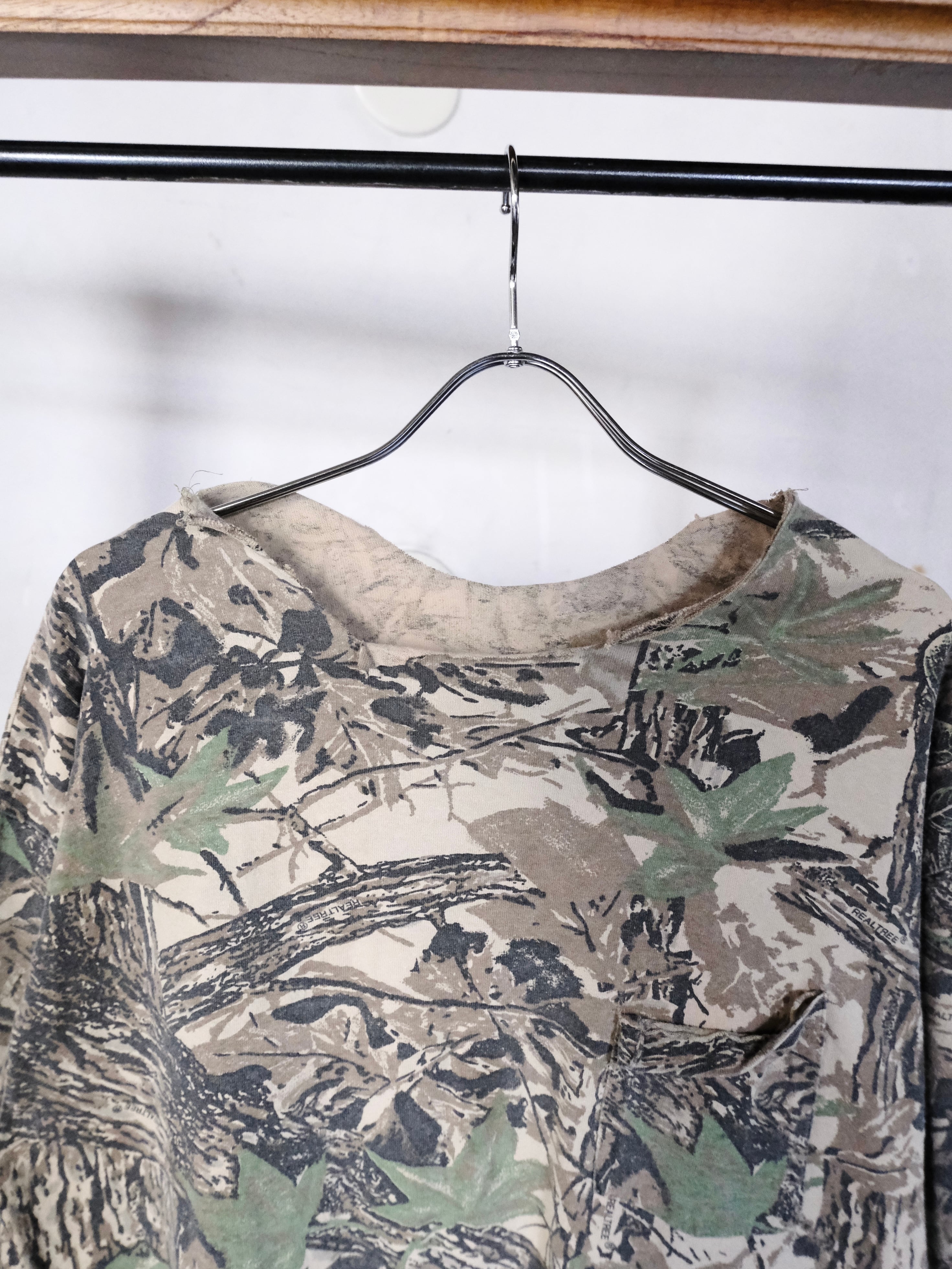 首元が大胆にカットオフされたロングスリーブTシャツ。