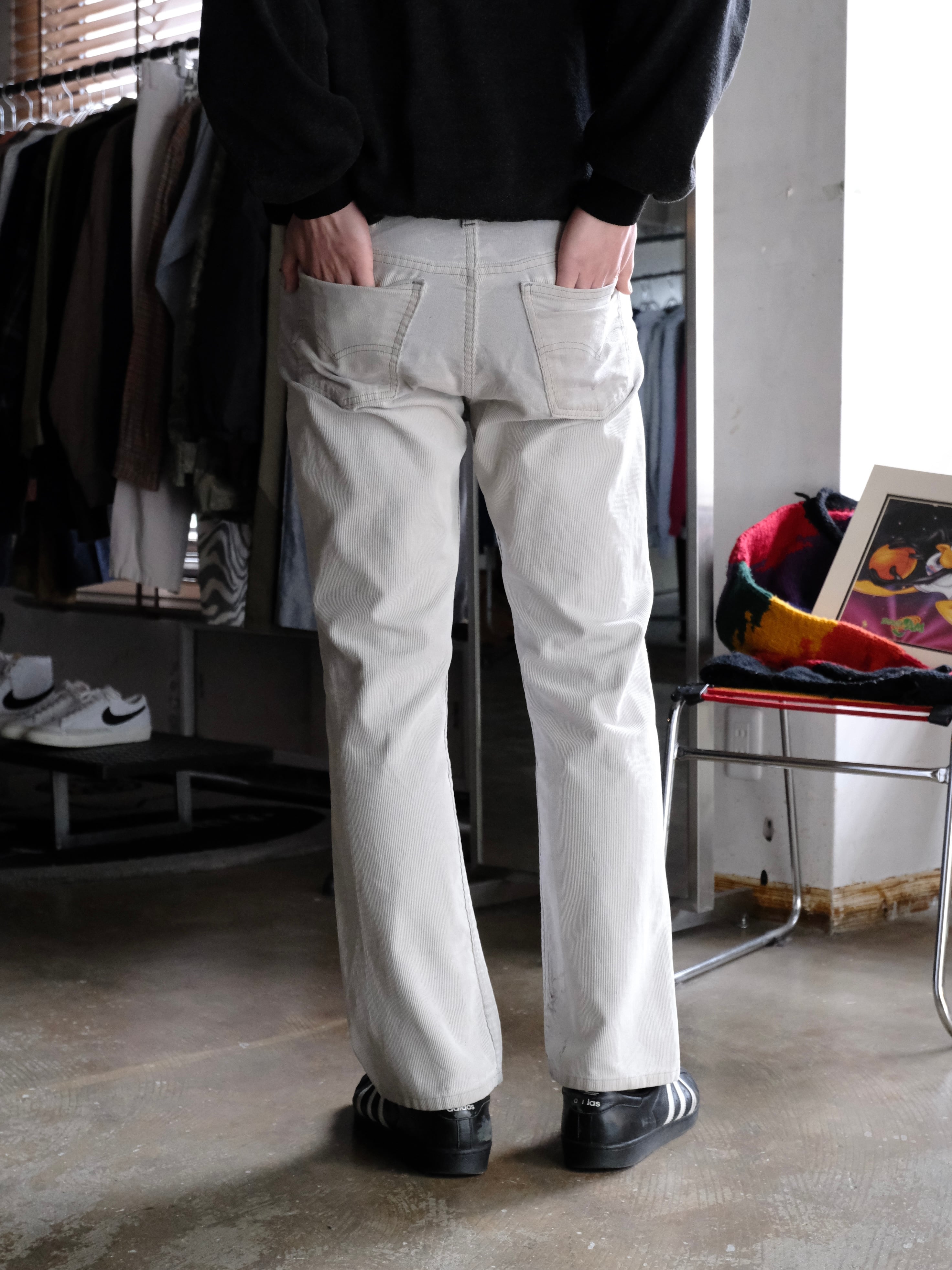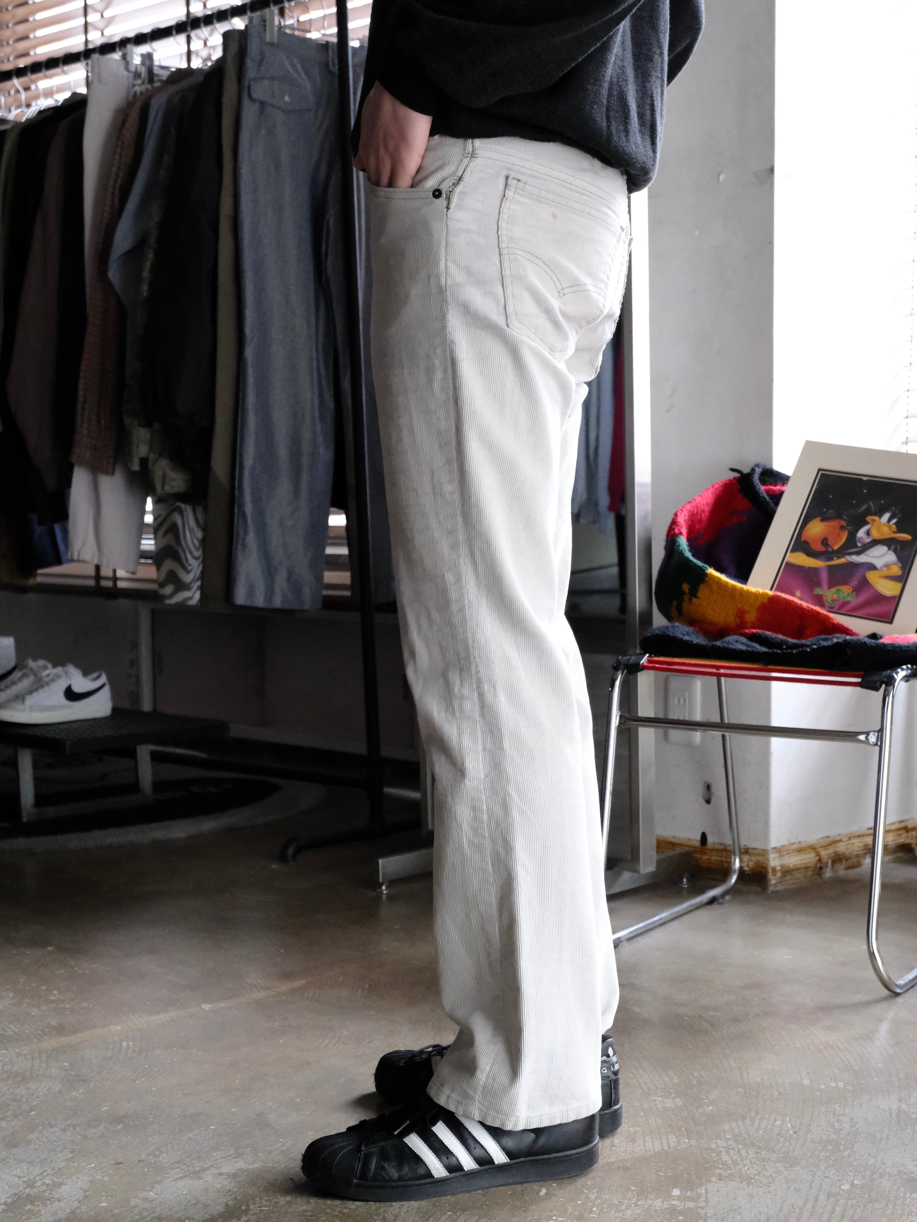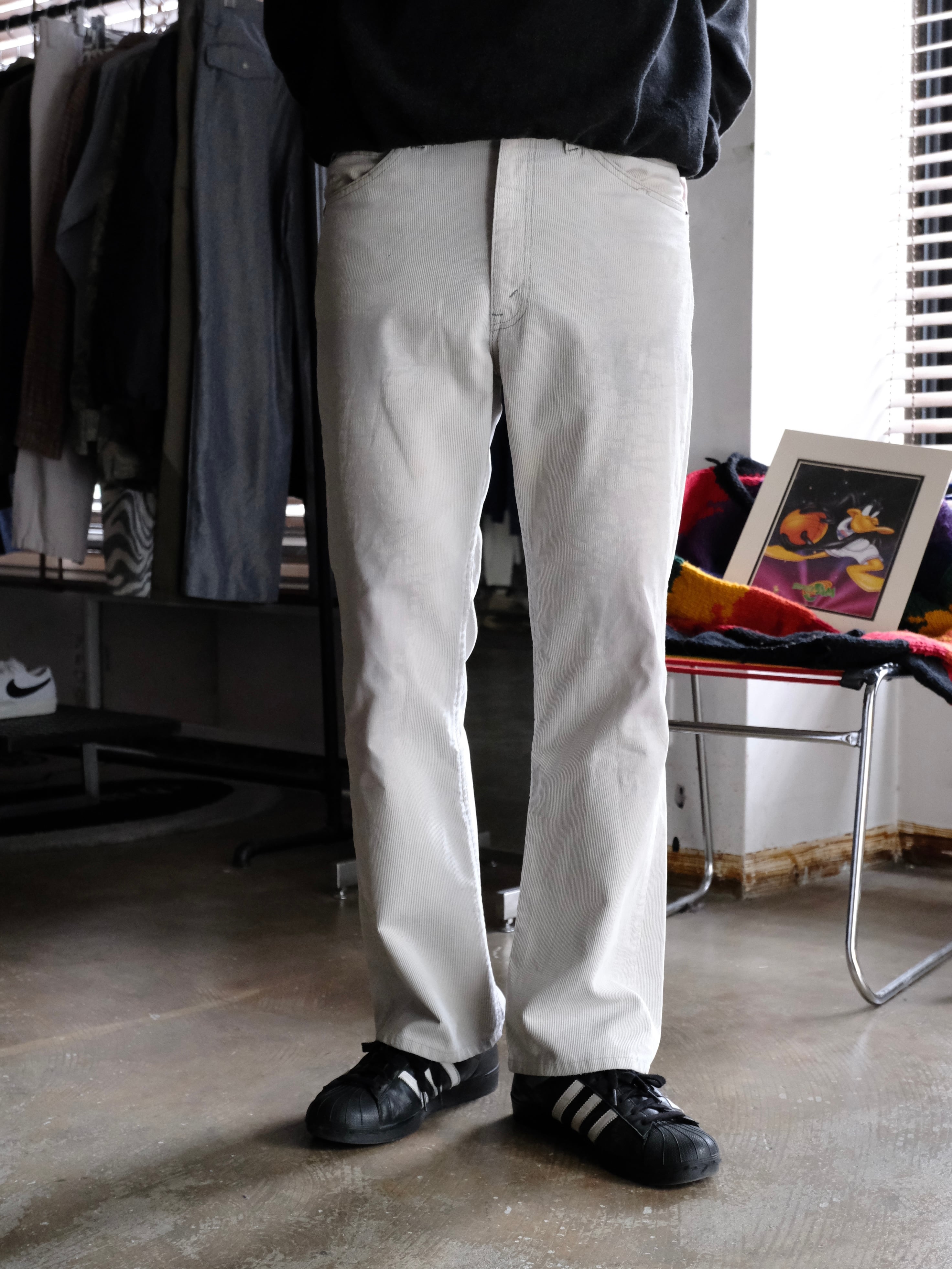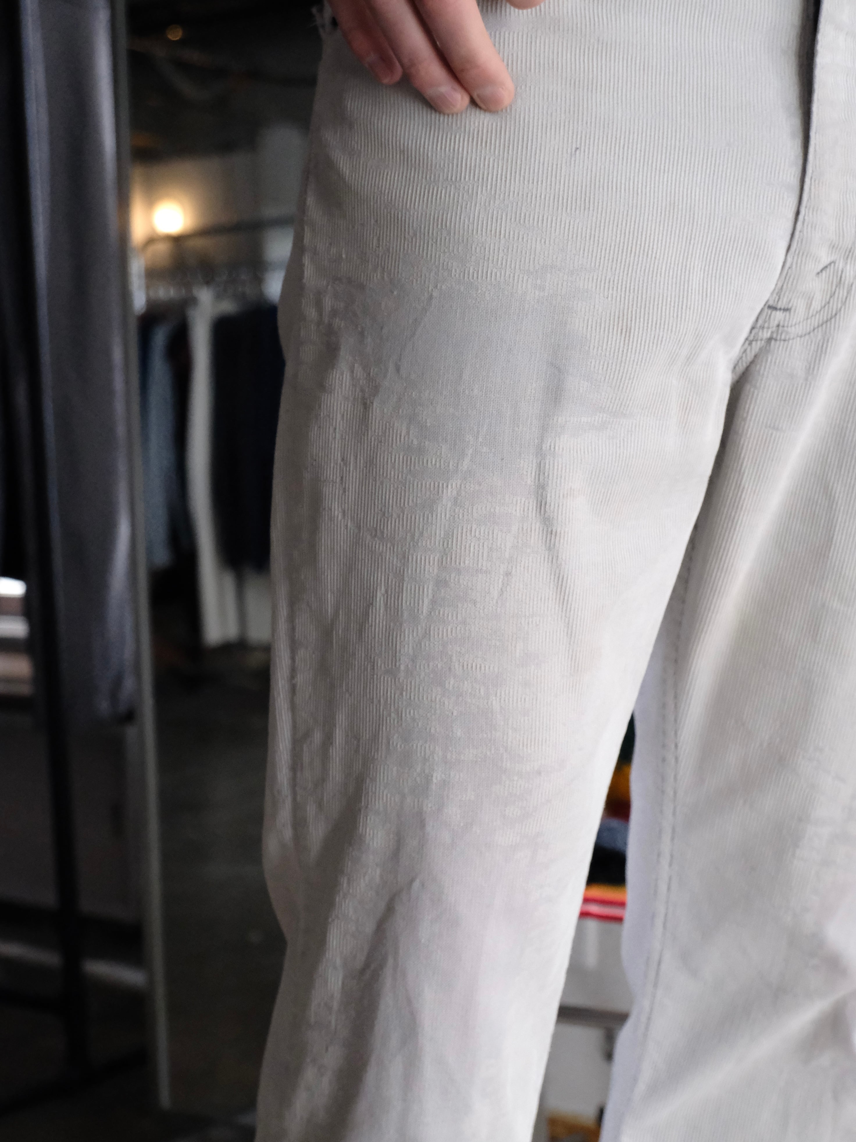 何度も洗濯されたのか全体的に生地のコットンが抜けた古着らしい雰囲気のパンツです。