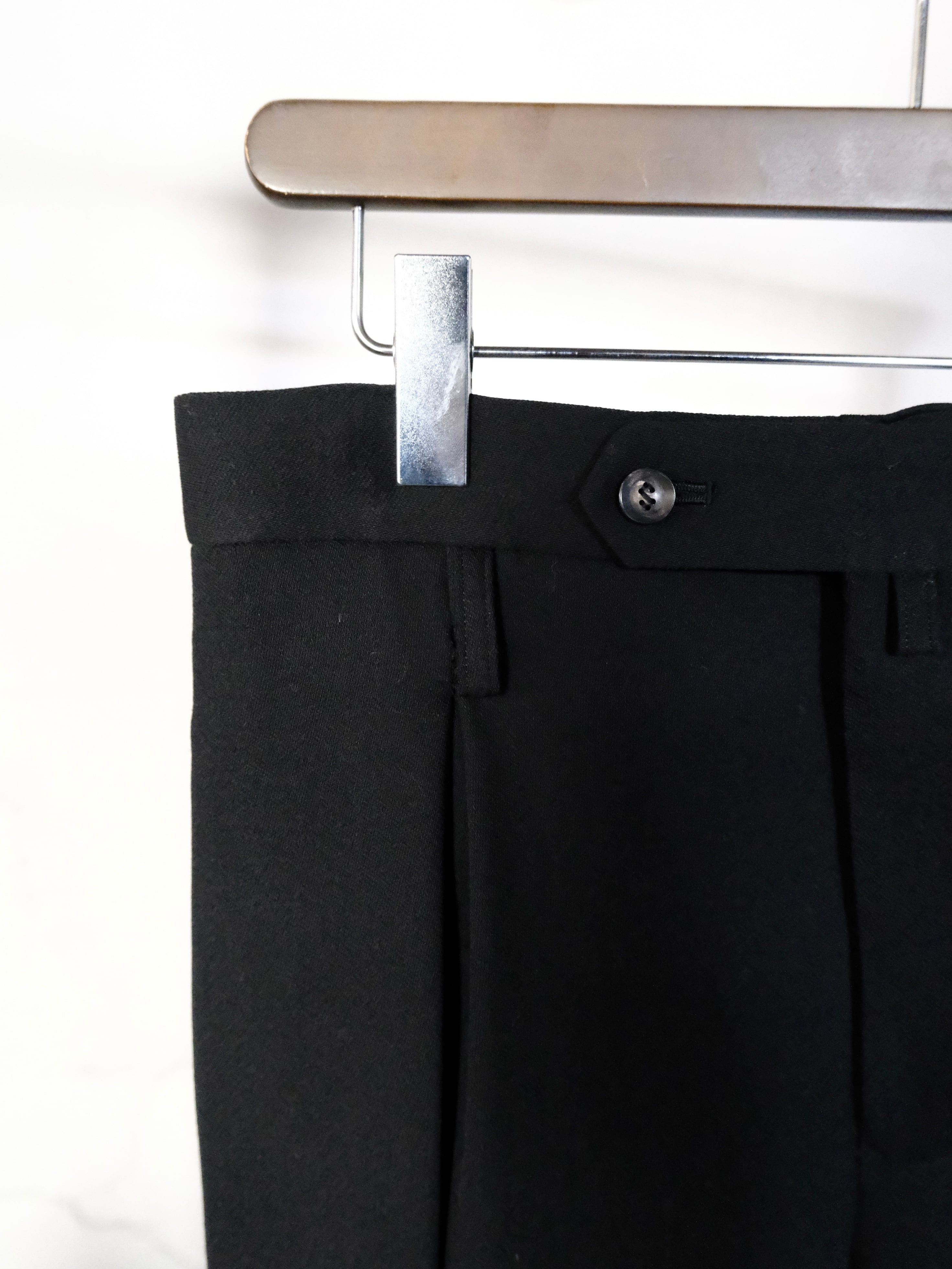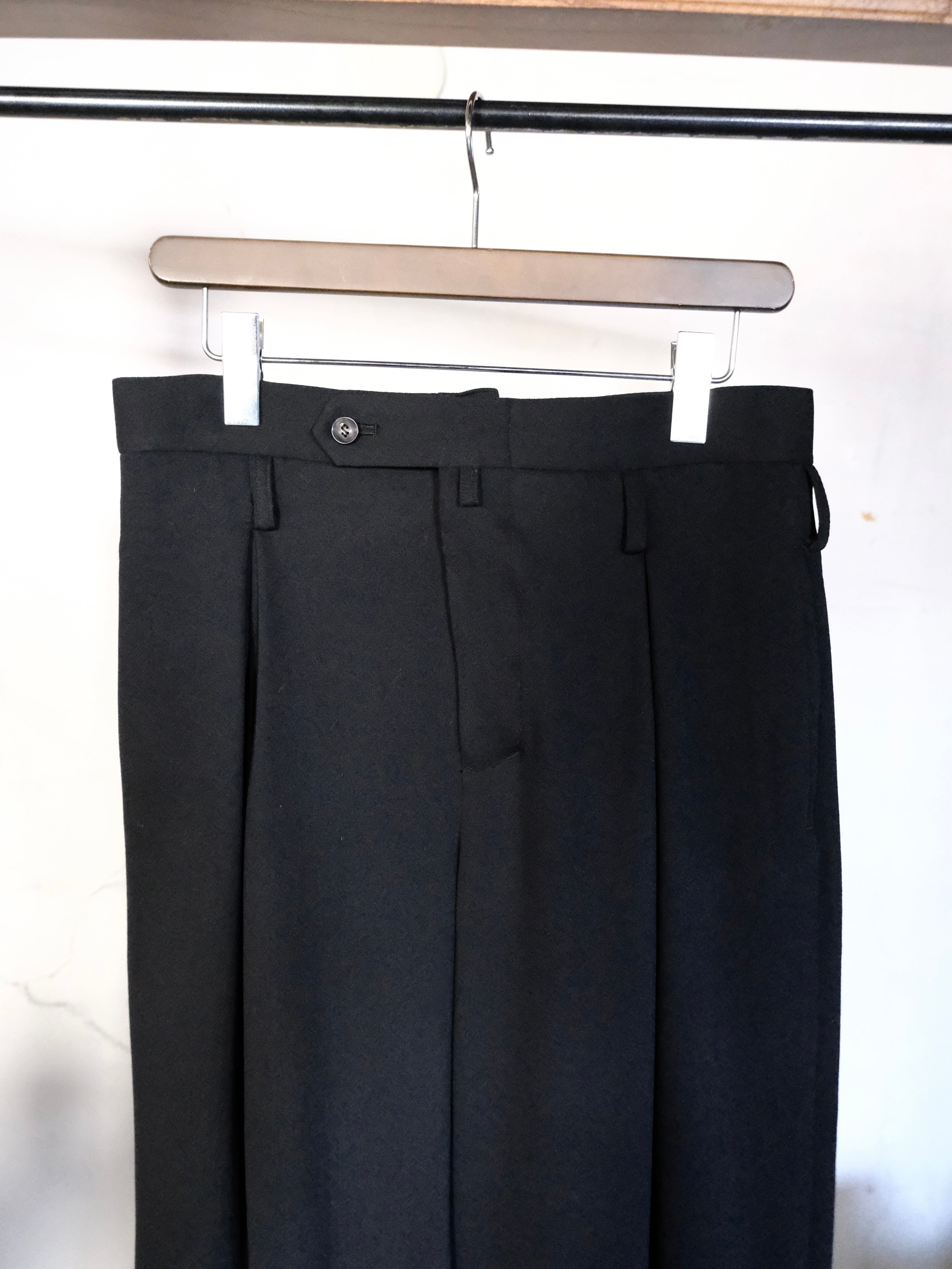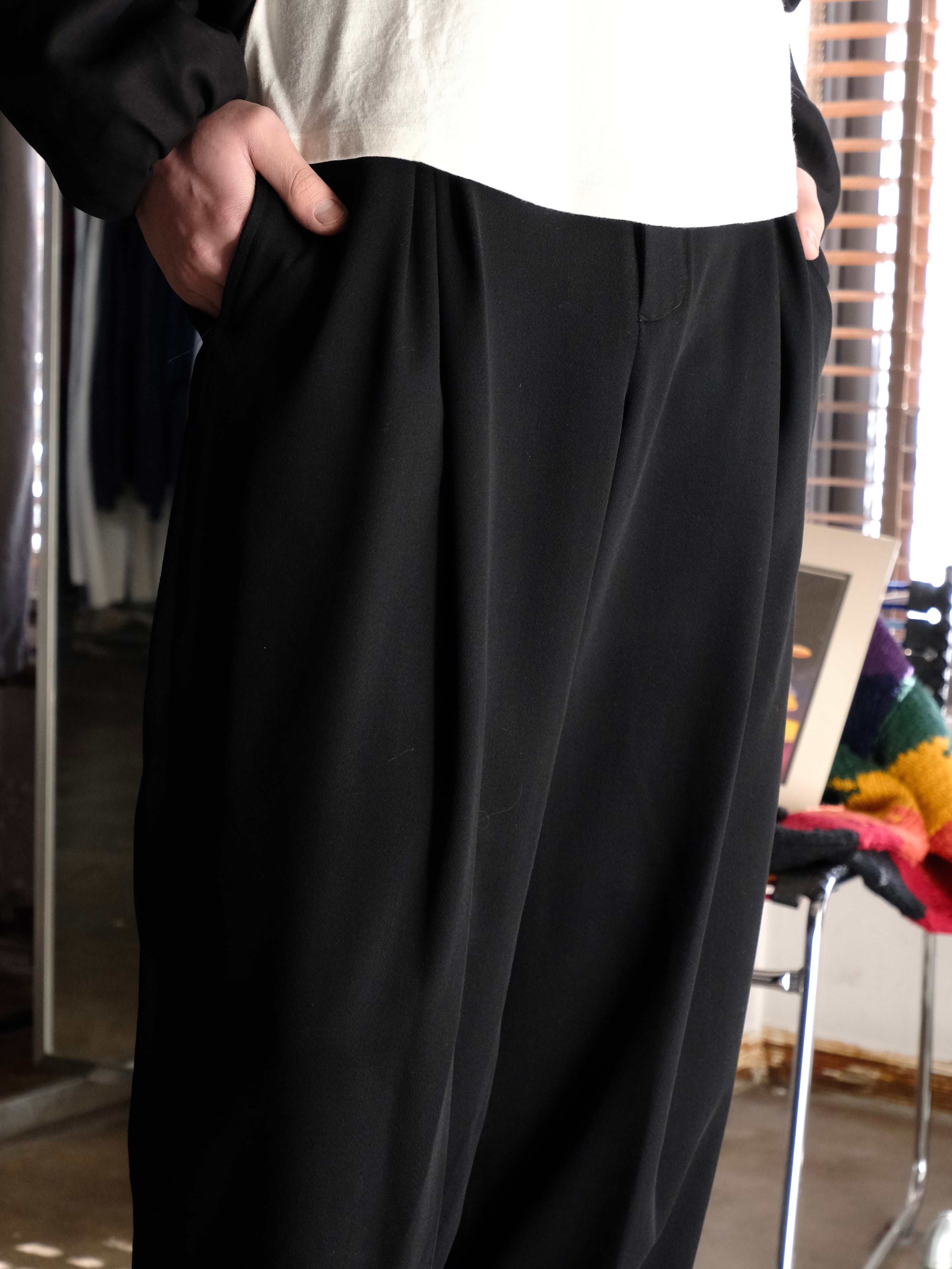 左右2本ずつ、計4本のインバーテッドタックを前見頃に配したワイドパンツ。