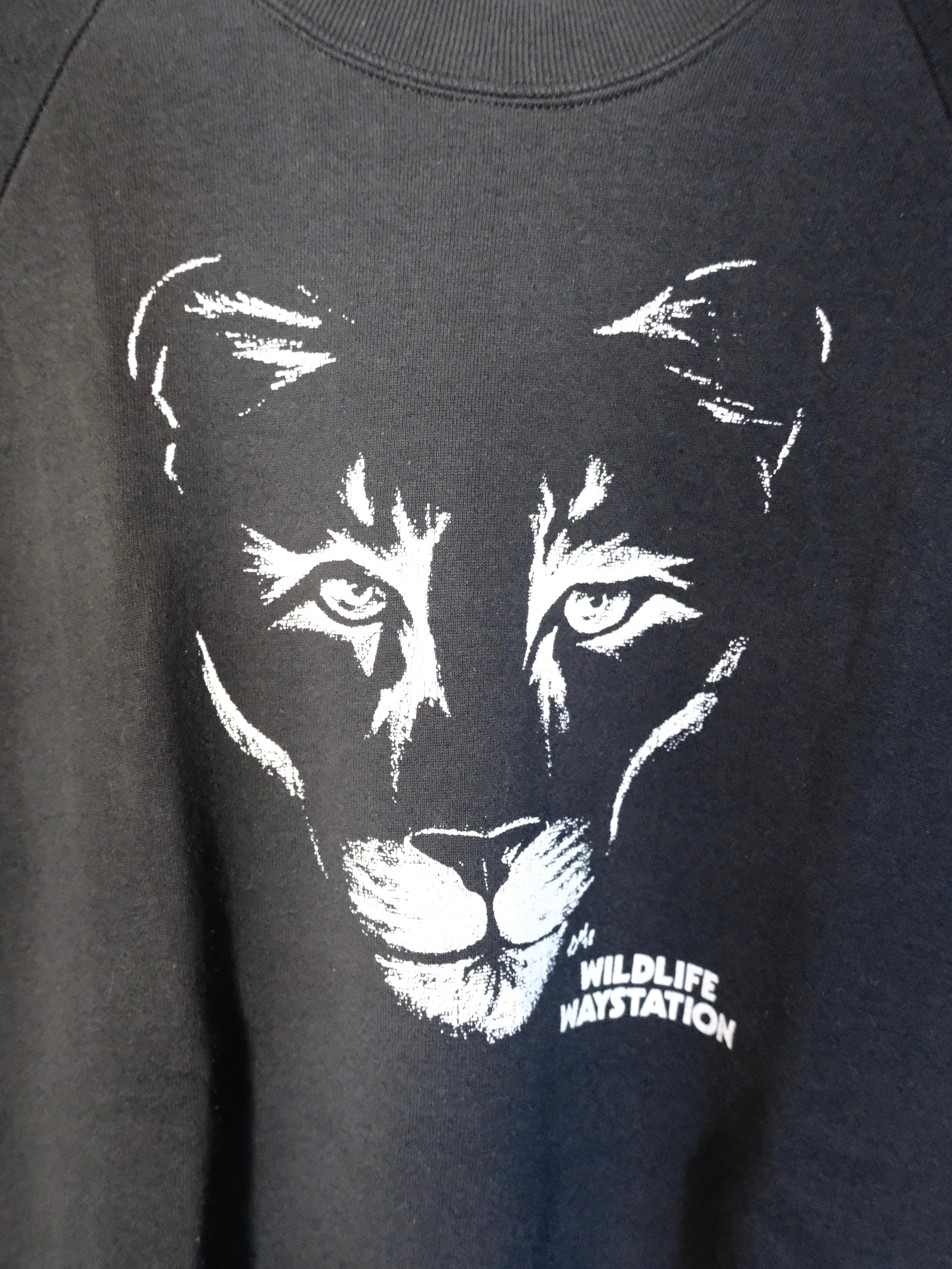 現在は閉鎖されているカリフォルニア州シルマーのアンヘレス・ナショナル・フォレストにあった野生動物・エキゾチックアニマル救済保護施設、ワイルドライフ・ウェイステーションのスウェットです。