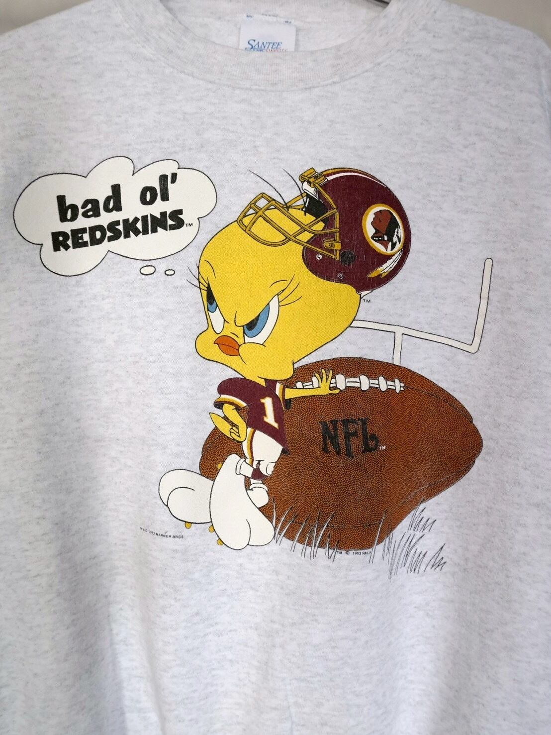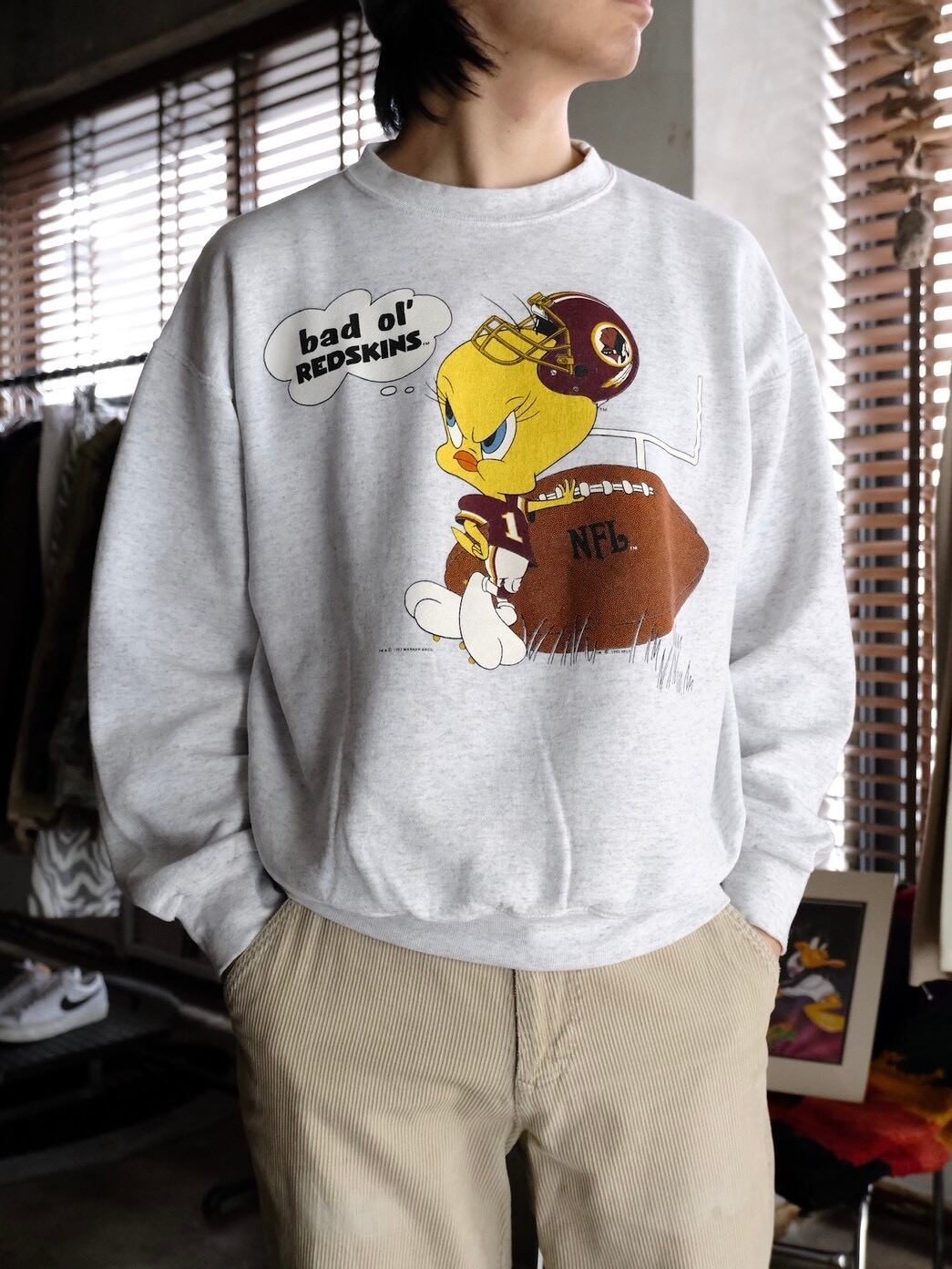 トゥイーティーの定番のセリフ”bad ol' putty tat(悪い猫たん)”をNFLのREDSKINSに変えられた遊び心ある一着です。