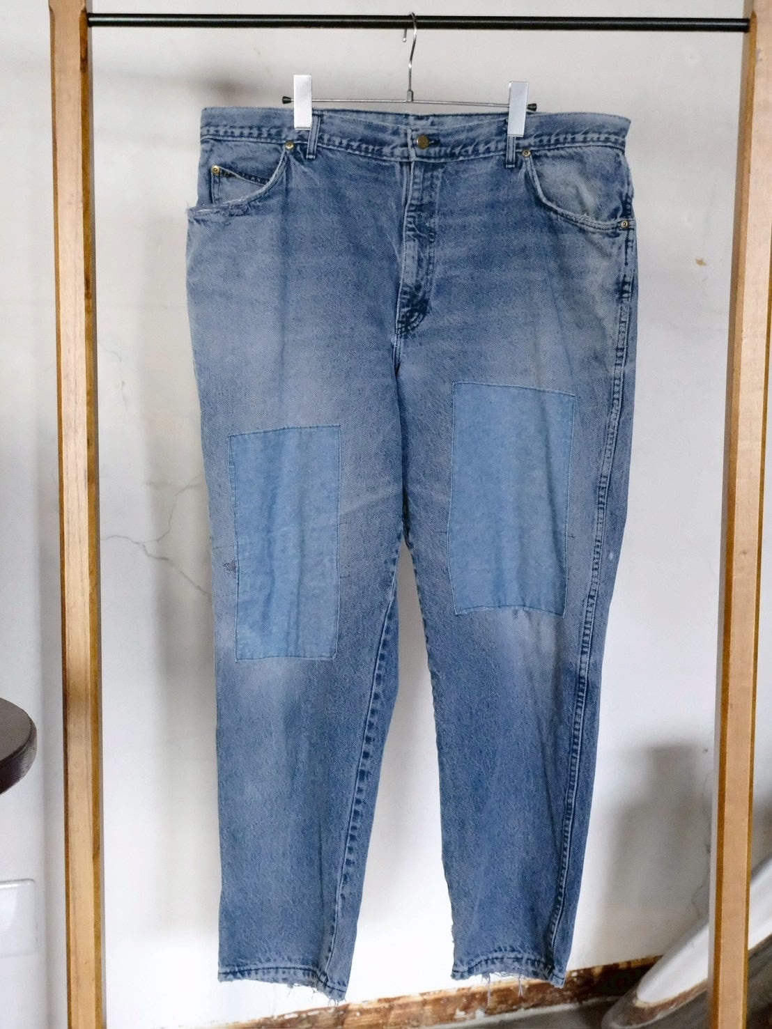 くしくもダブルニーのようなデザインが古着はしさのある1本です。