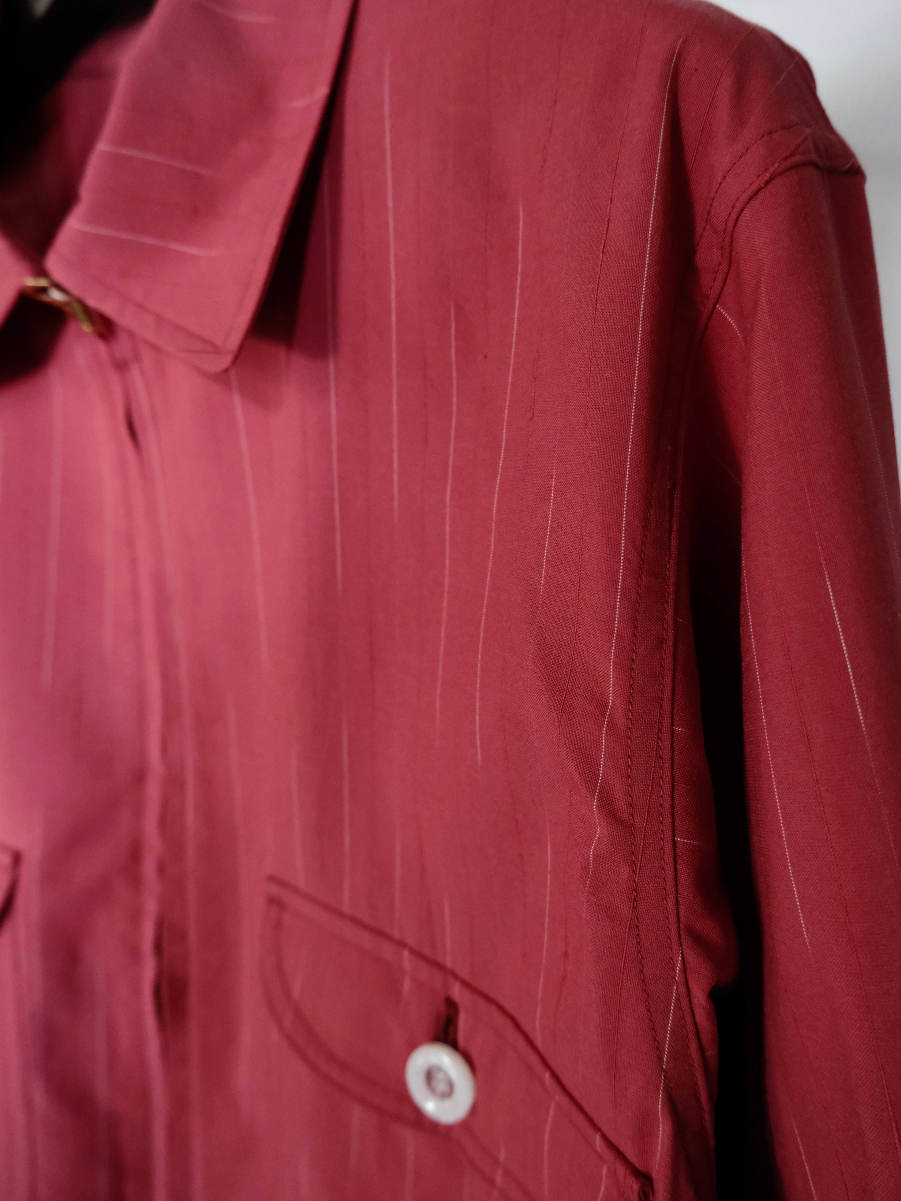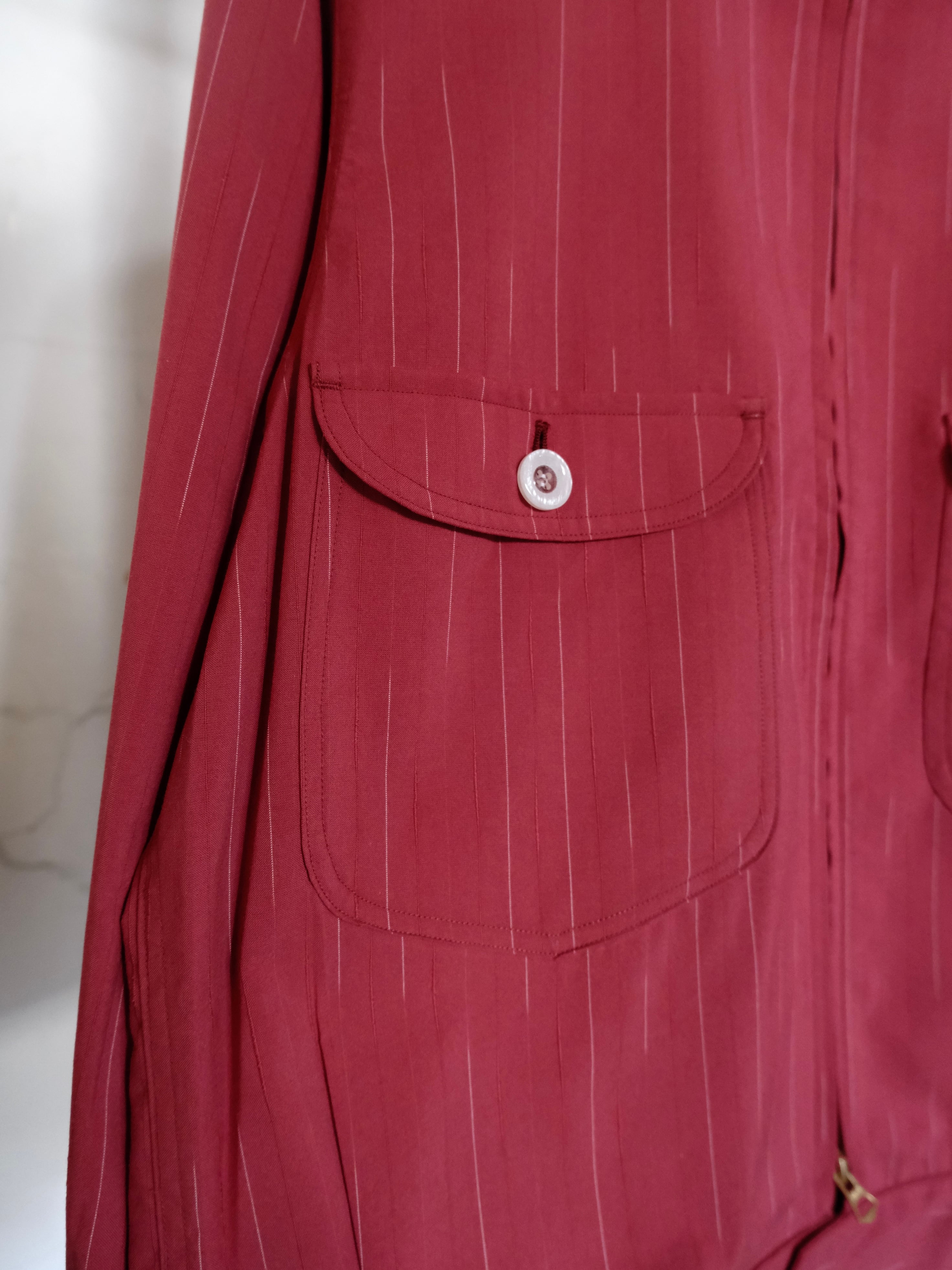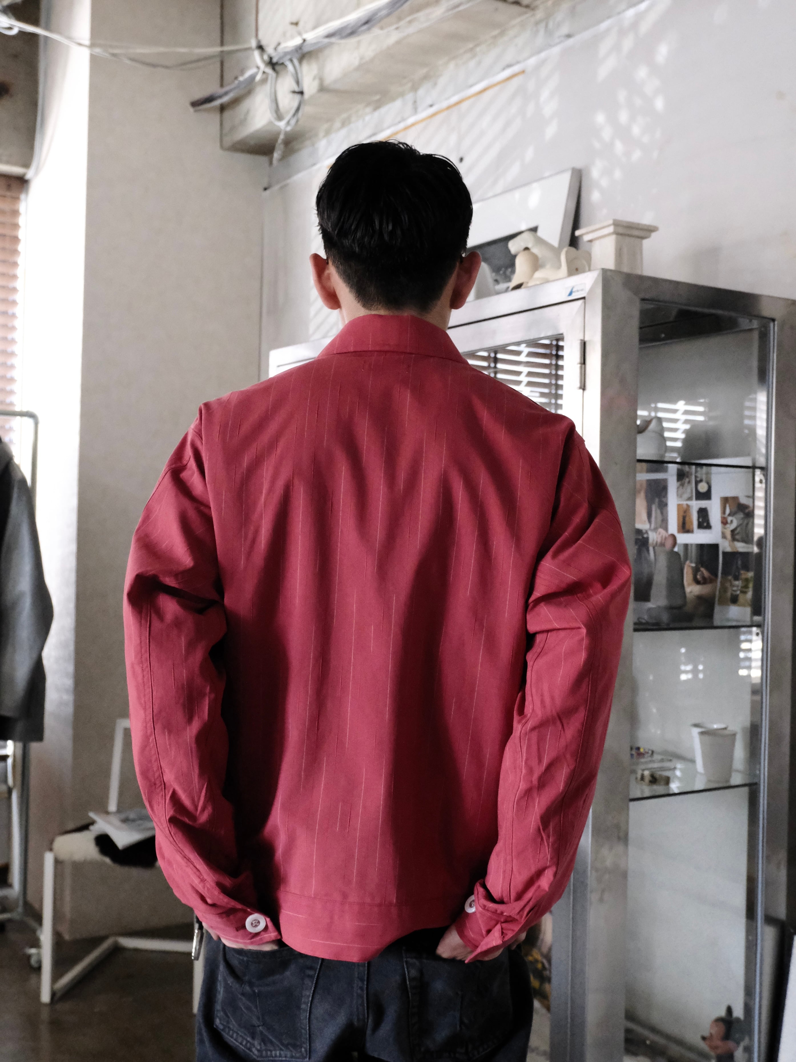 糸の染め分けと形状の異なる糸を組み合わせることでストライプが見え隠れする遊び心を持ったオリジナルのカスリのムラ糸をストライプ生地で仕立てた、シャツ感覚でライトに羽織れるシャツアウターです。