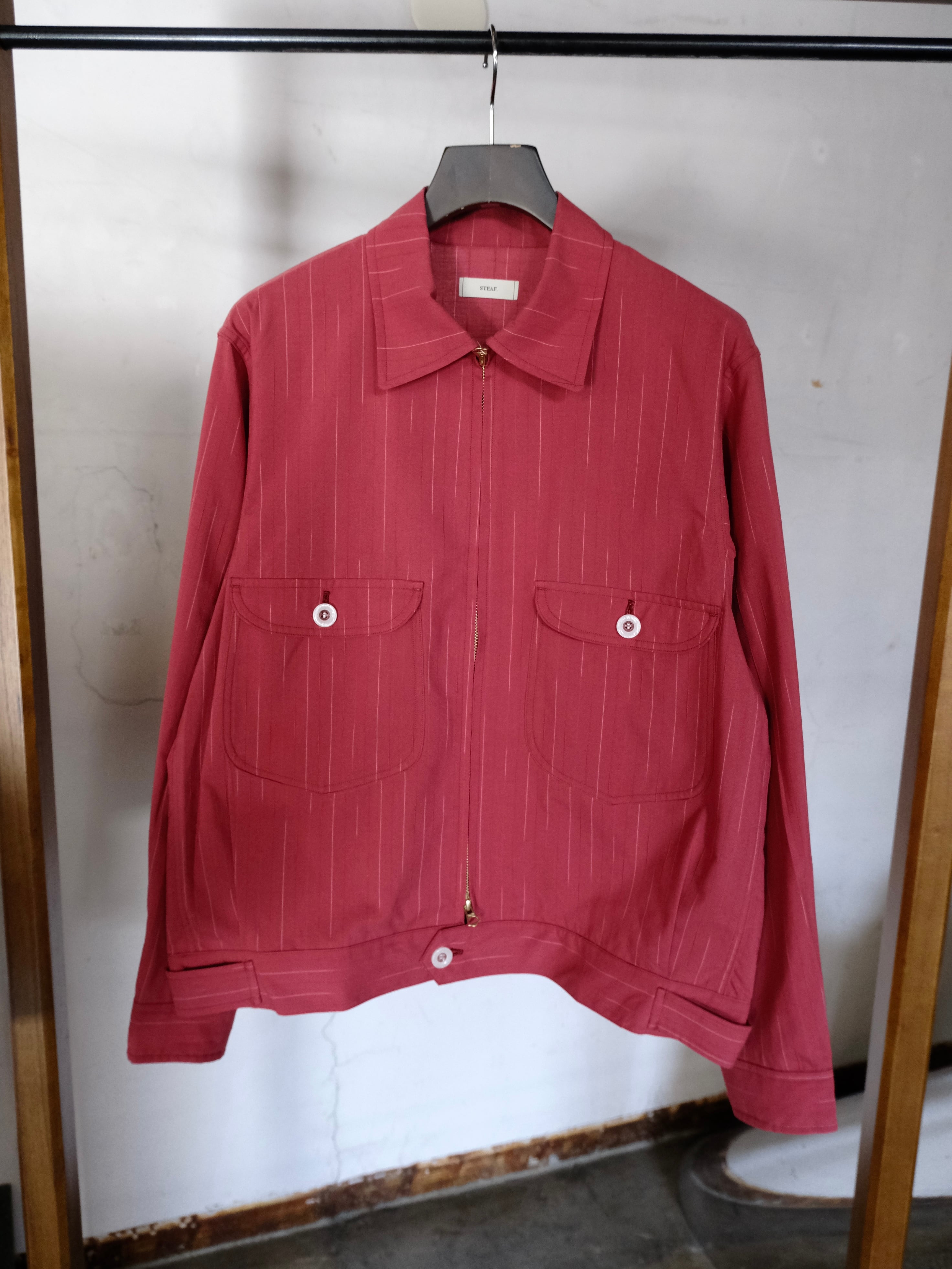 50'sをイメージさせる形ながらも人体に沿うような立体的にパターンをひき、STEAFのオリジナリティが溢れる着心地。
