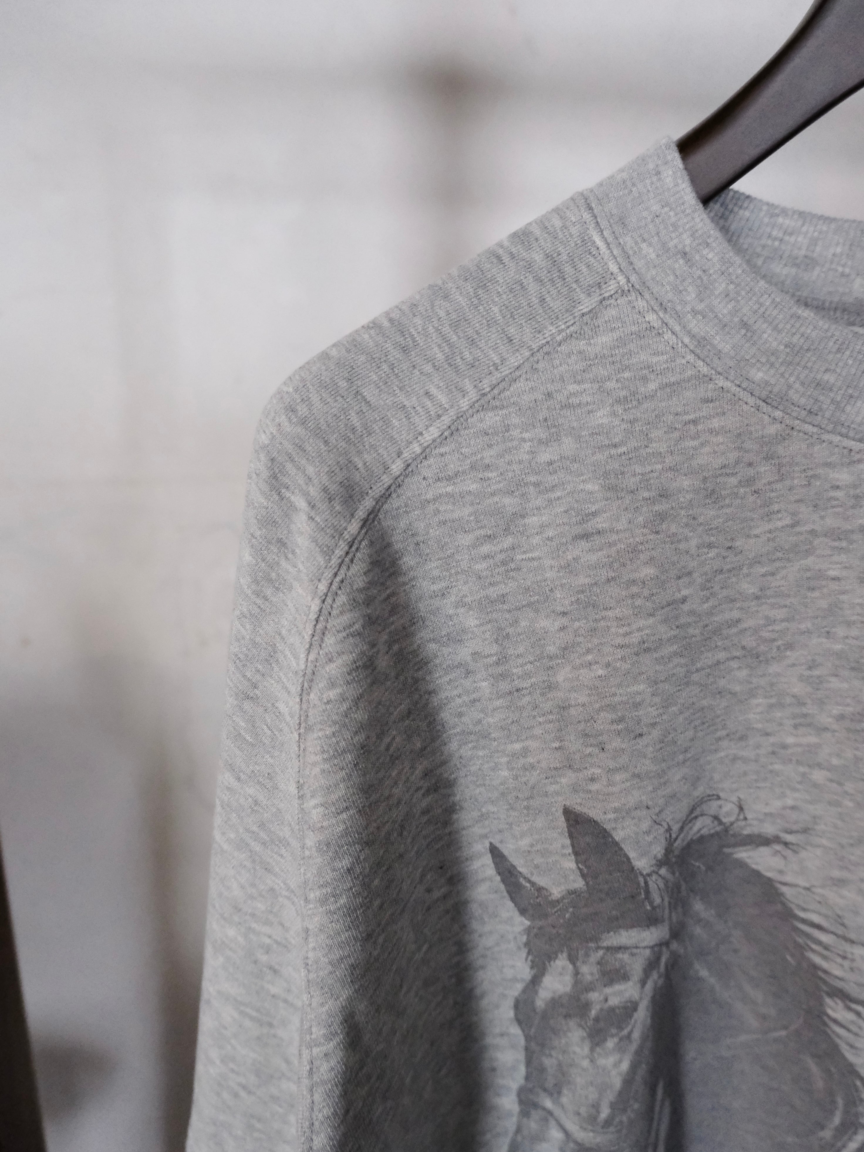 種の剪定から、綿花栽培、糸の生産までを全ての工程をオーガニックにこだわった肌理が細かく肌触りの良いオーガニックコットンで仕立てたクルーネックのプリントスウェットです。