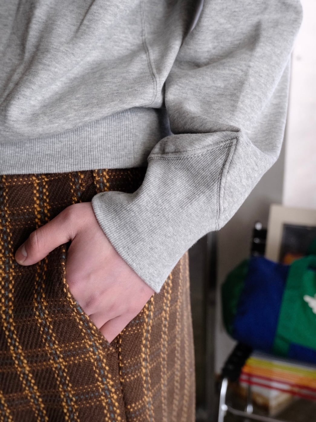 STEAFらしい腕の動きがより自由になるようになったフリーダムスリーブのラグラン切り替えと袖口のリブの切り替えラインが特徴的です。